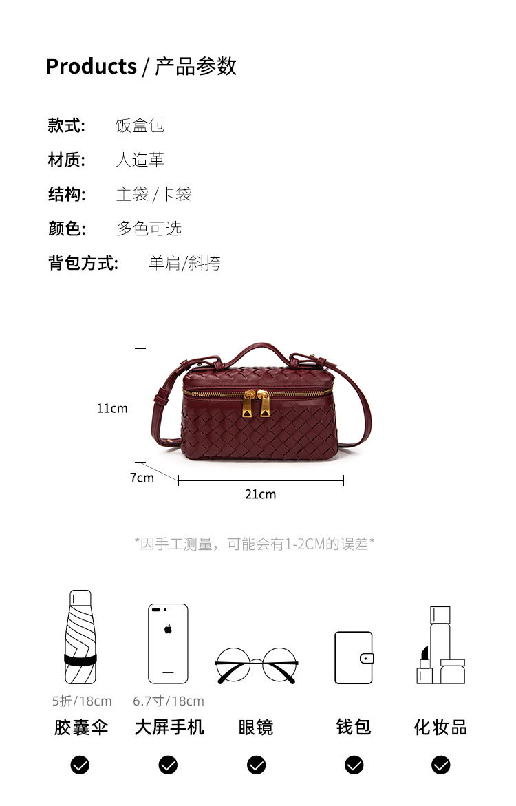 짠 상자 가방 B 홈 어깨 휴대용 크로스 바디 도시락 가방 패션 화장품 가방 작은 샤넬 스타일 고급 작은 광장 가방스토어 가기