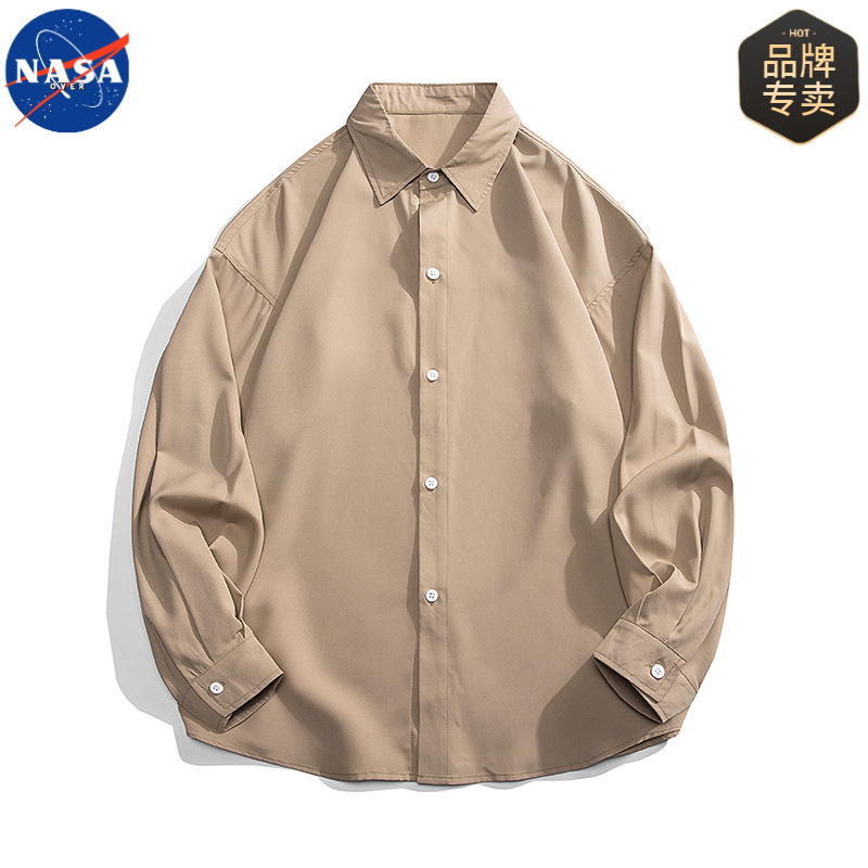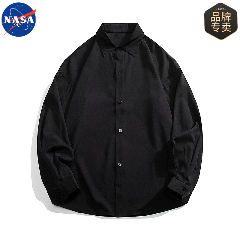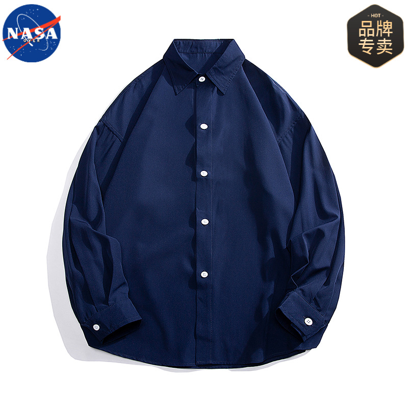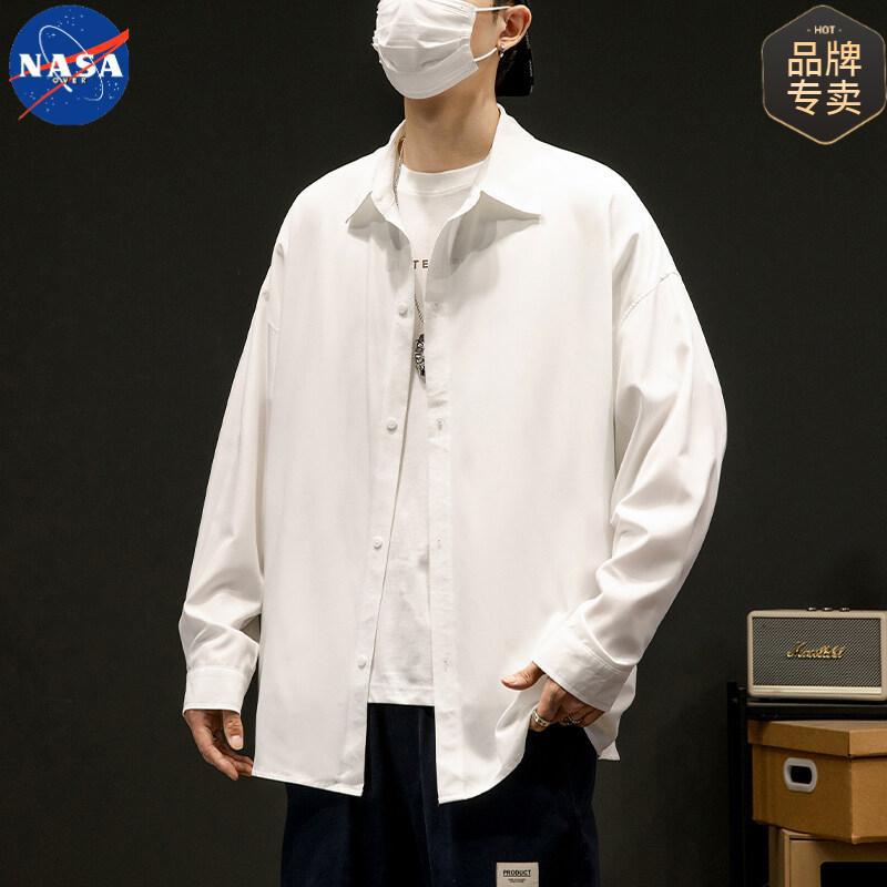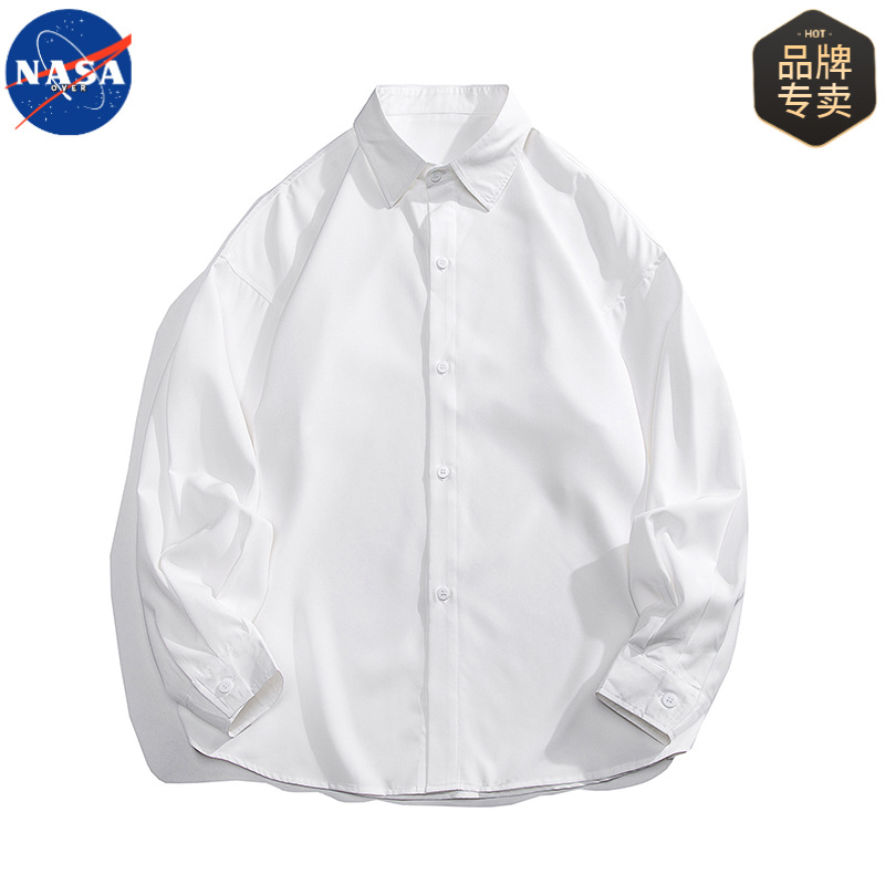 NASA 브랜드 화이트 셔츠 남성용 단색 옷깃 캐주얼 느슨한 봄과 가을 새 쇼핑객 핸섬 긴 소매 셔츠 재킷스토어 가기