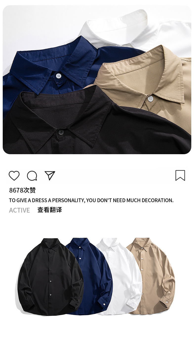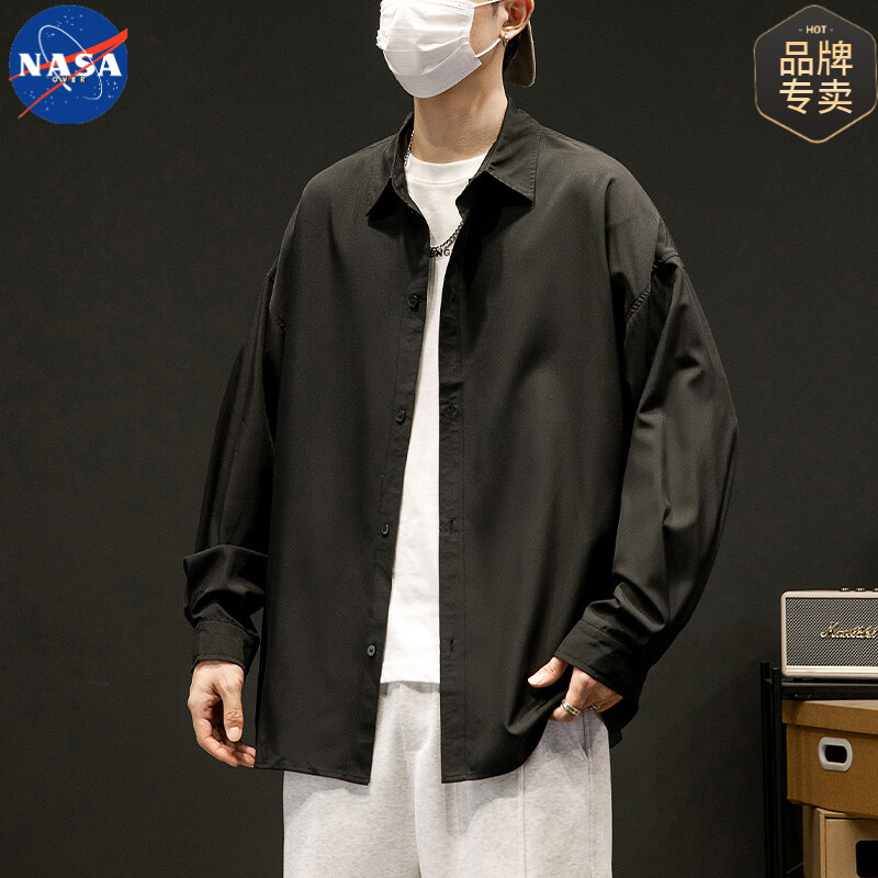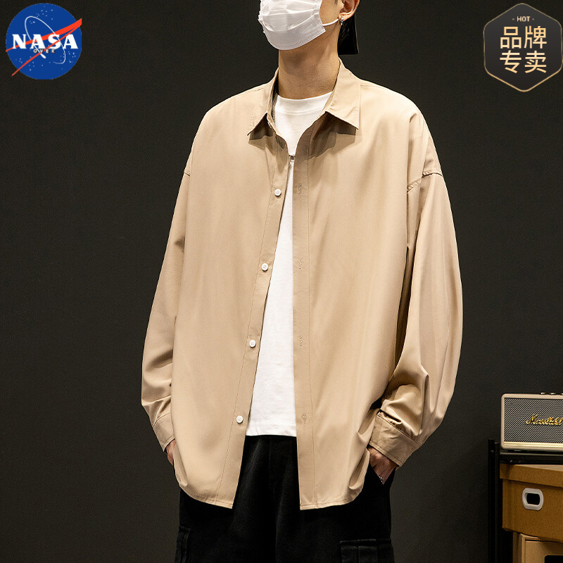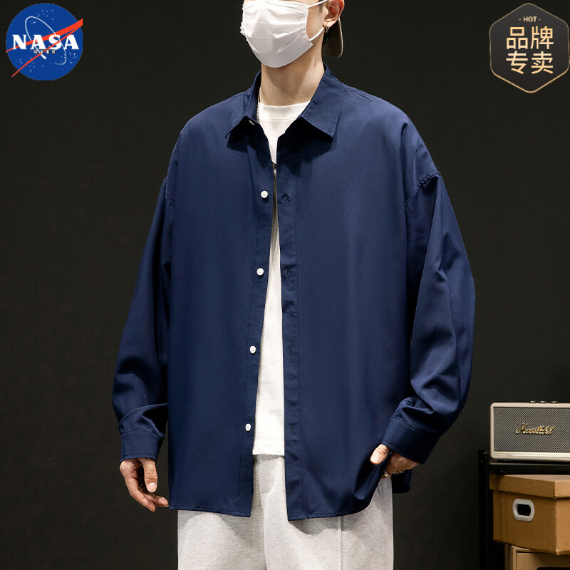 NASA 브랜드 화이트 셔츠 남성용 단색 옷깃 캐주얼 느슨한 봄과 가을 새 쇼핑객 핸섬 긴 소매 셔츠 재킷스토어 가기