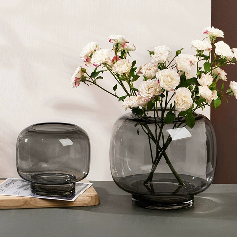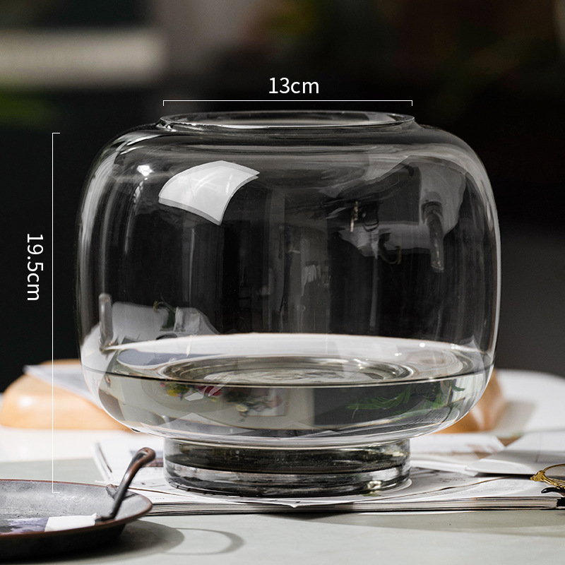 간단한 라운드 큰 배 유리 꽃병 스타일 창조적 인 수경 꽃 장치 거실 꽃 장식 장식 공예