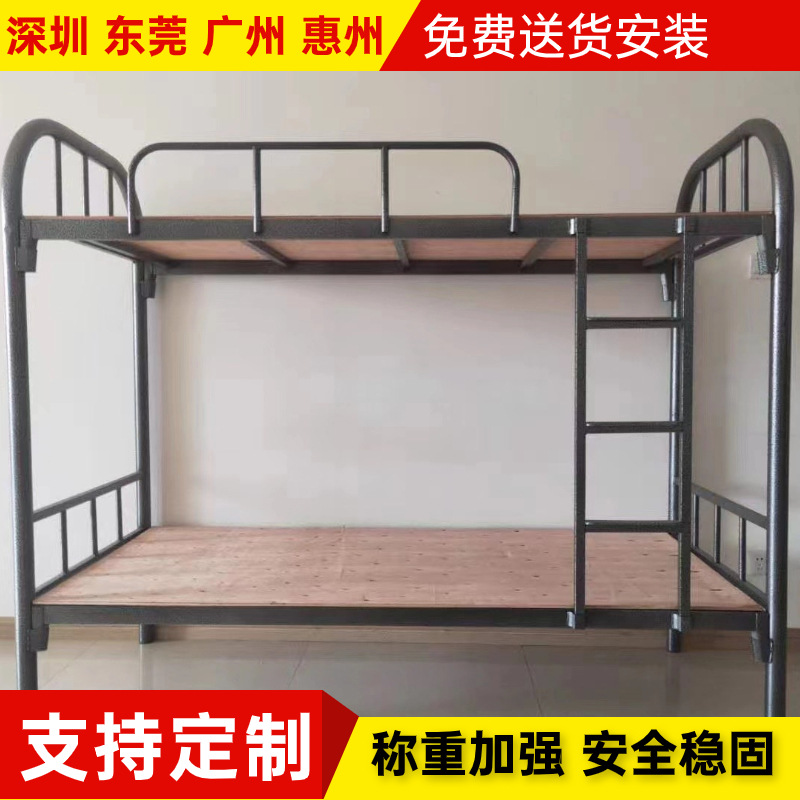 블랙 50 라운드 튜브 상부 및 하부 이층 철제 침대는 두꺼운 더블 레이어 쉽게 맞는 학생 침대 사이트 직원 내구성이 높고 낮은 선반 침대스토어 가기