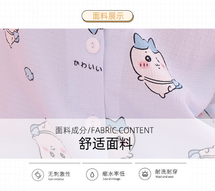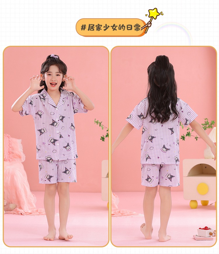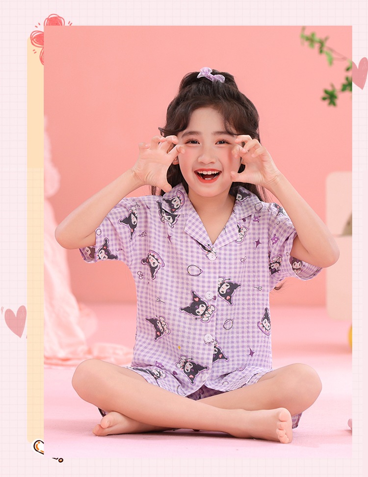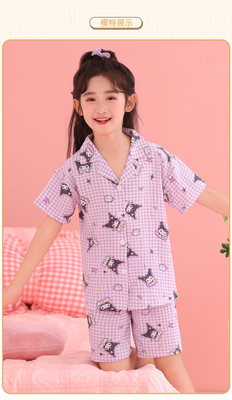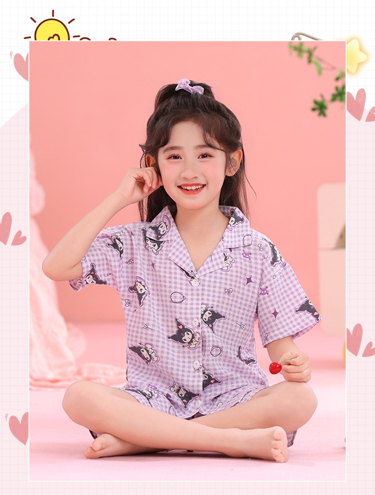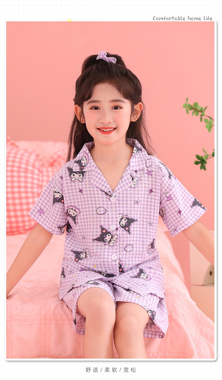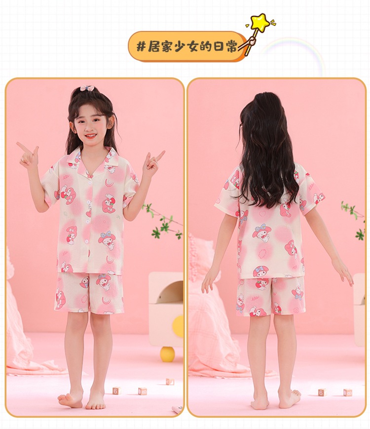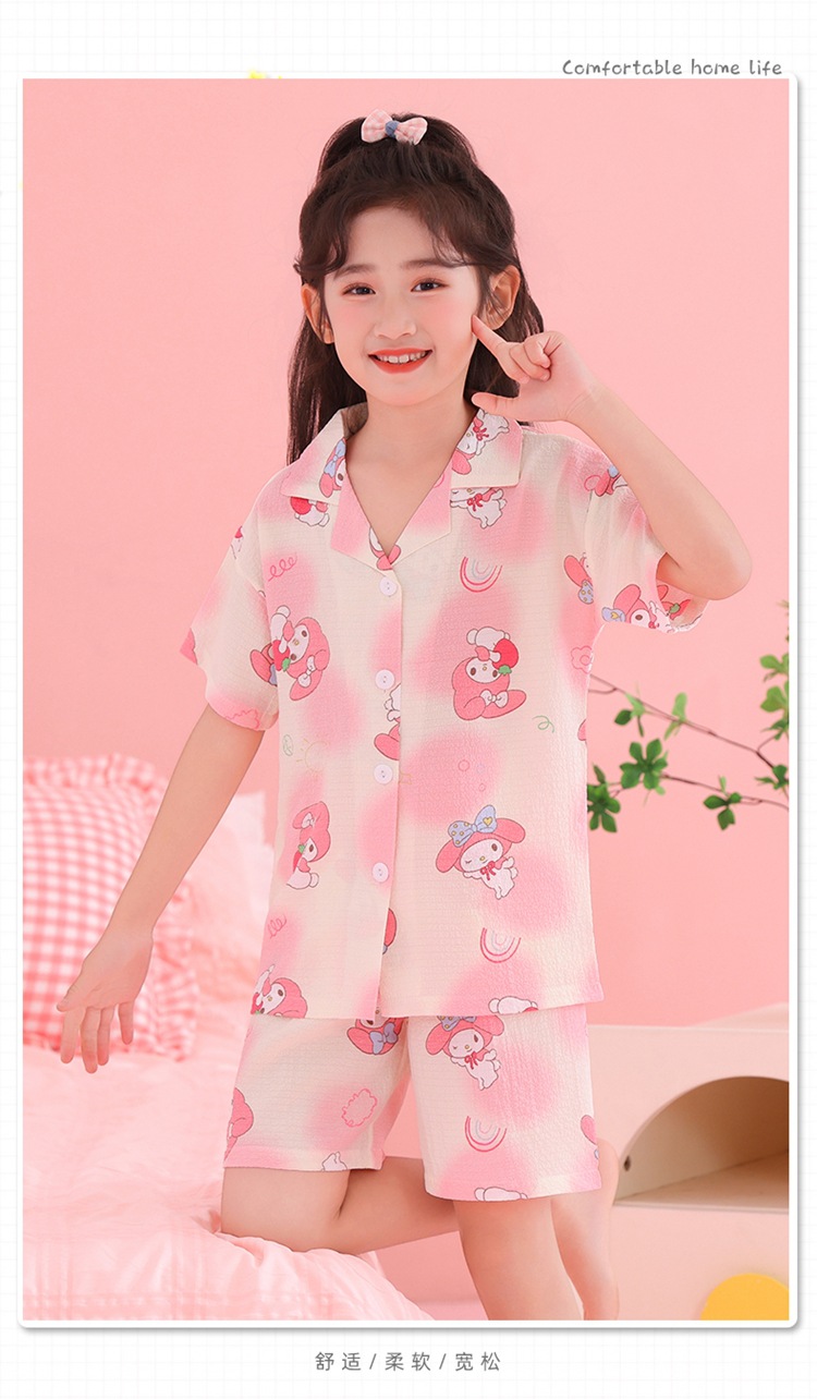 어린이 잠옷 옷깃 카디건 버블 코튼 소녀 만화 여름 반팔 반바지 중소형 및 대형 어린이 홈 의류 세트스토어 가기