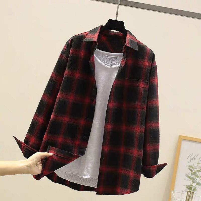 • 큰 격자 무늬 빨간색 긴 셔츠