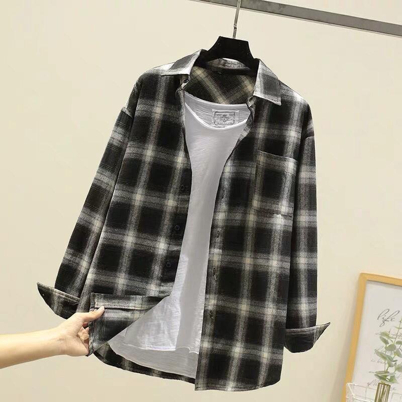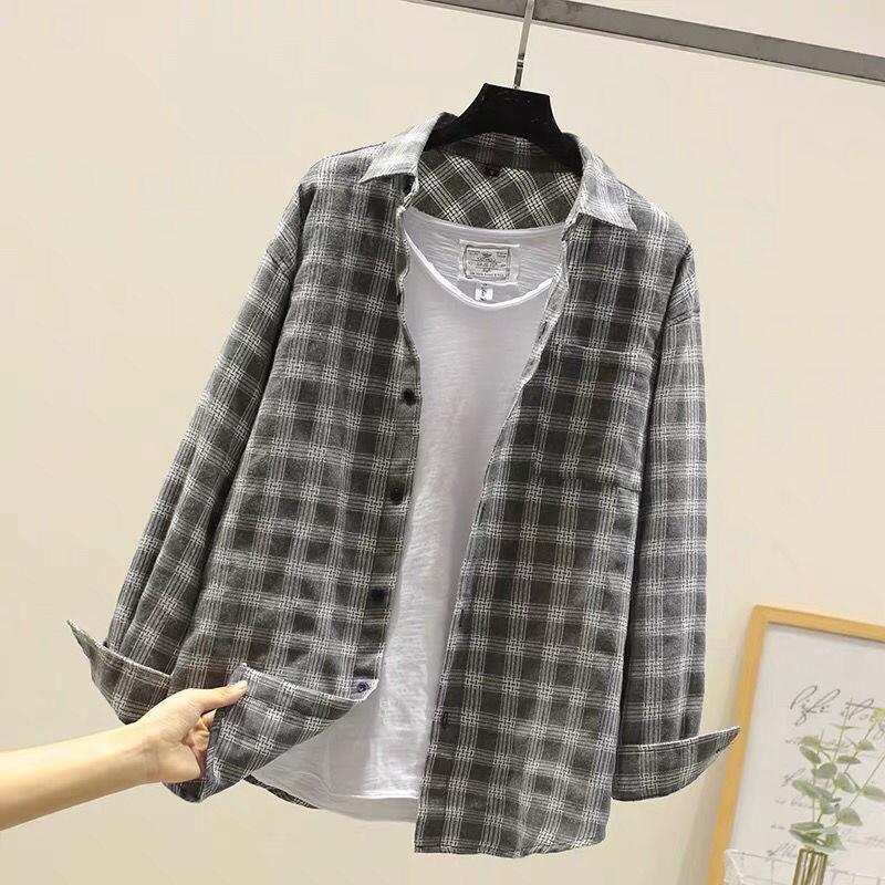 남성용 체크무늬 긴팔 셔츠, 루즈한 봄, 가을 트렌디한 한국식 셔츠, 남성용 건설현장 작업복스토어 가기