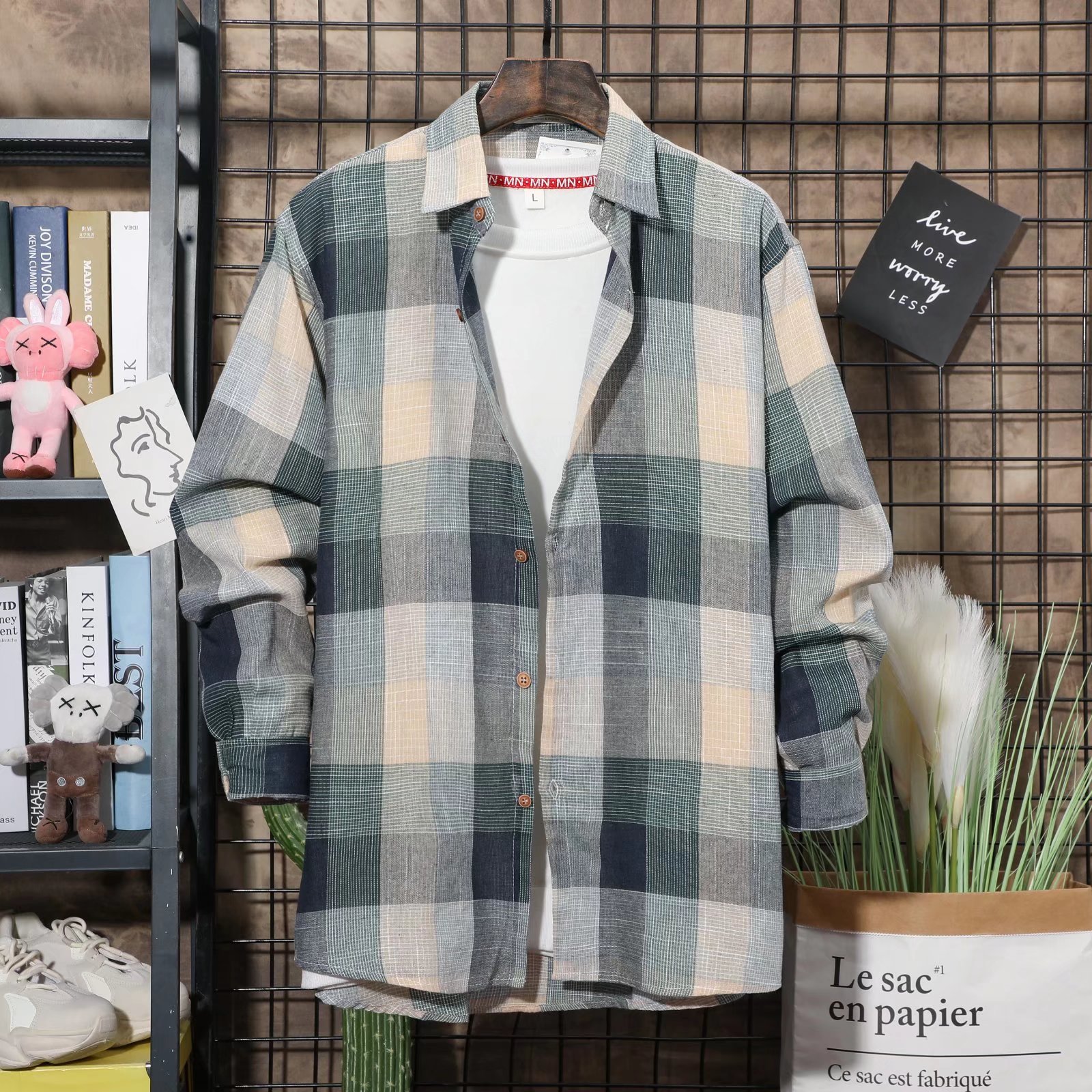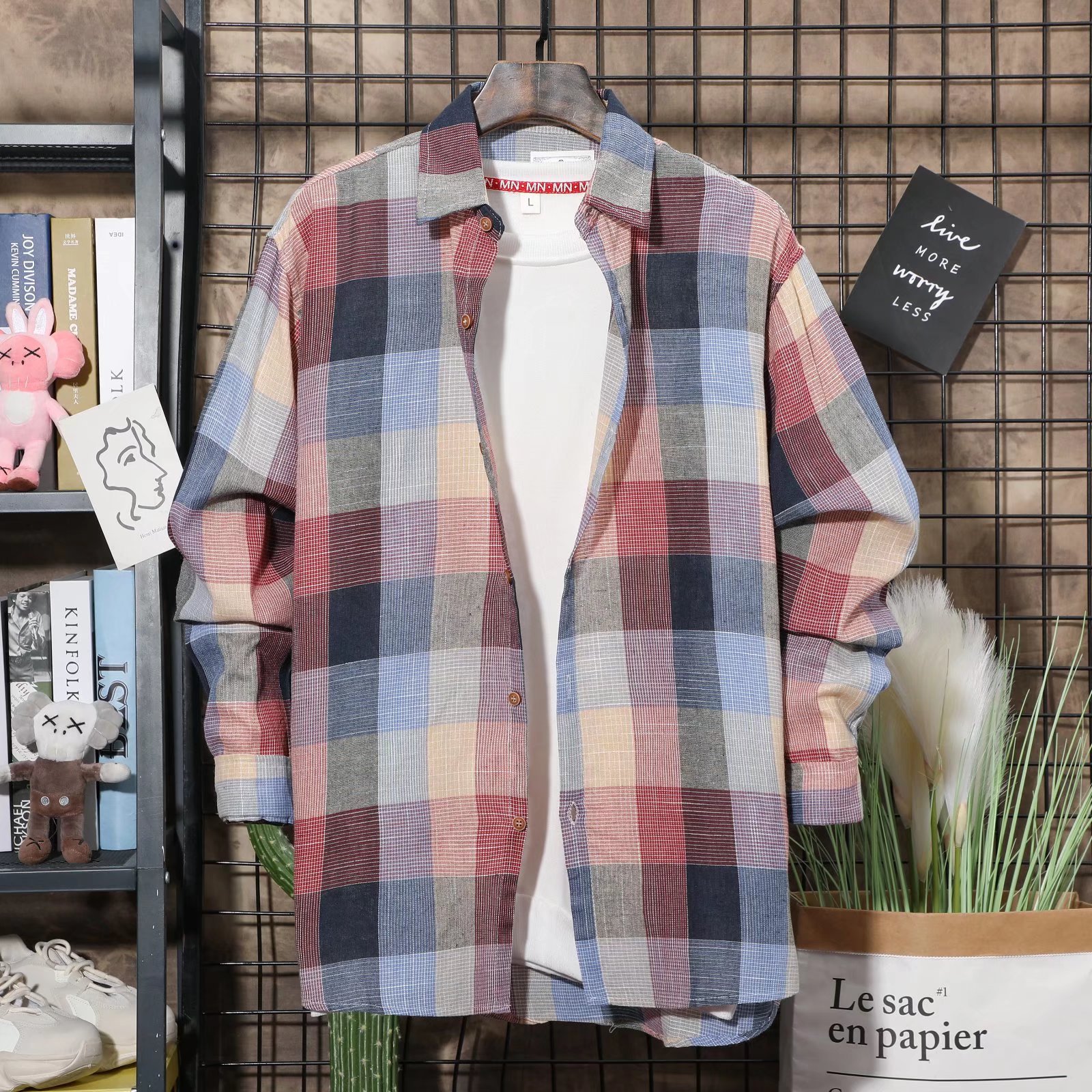 남성용 체크무늬 긴팔 셔츠, 루즈한 봄, 가을 트렌디한 한국식 셔츠, 남성용 건설현장 작업복