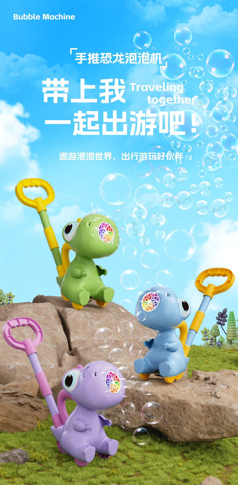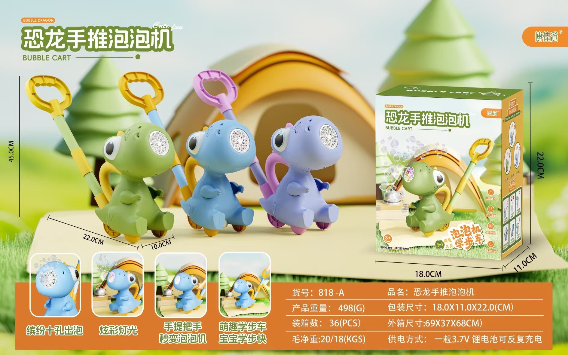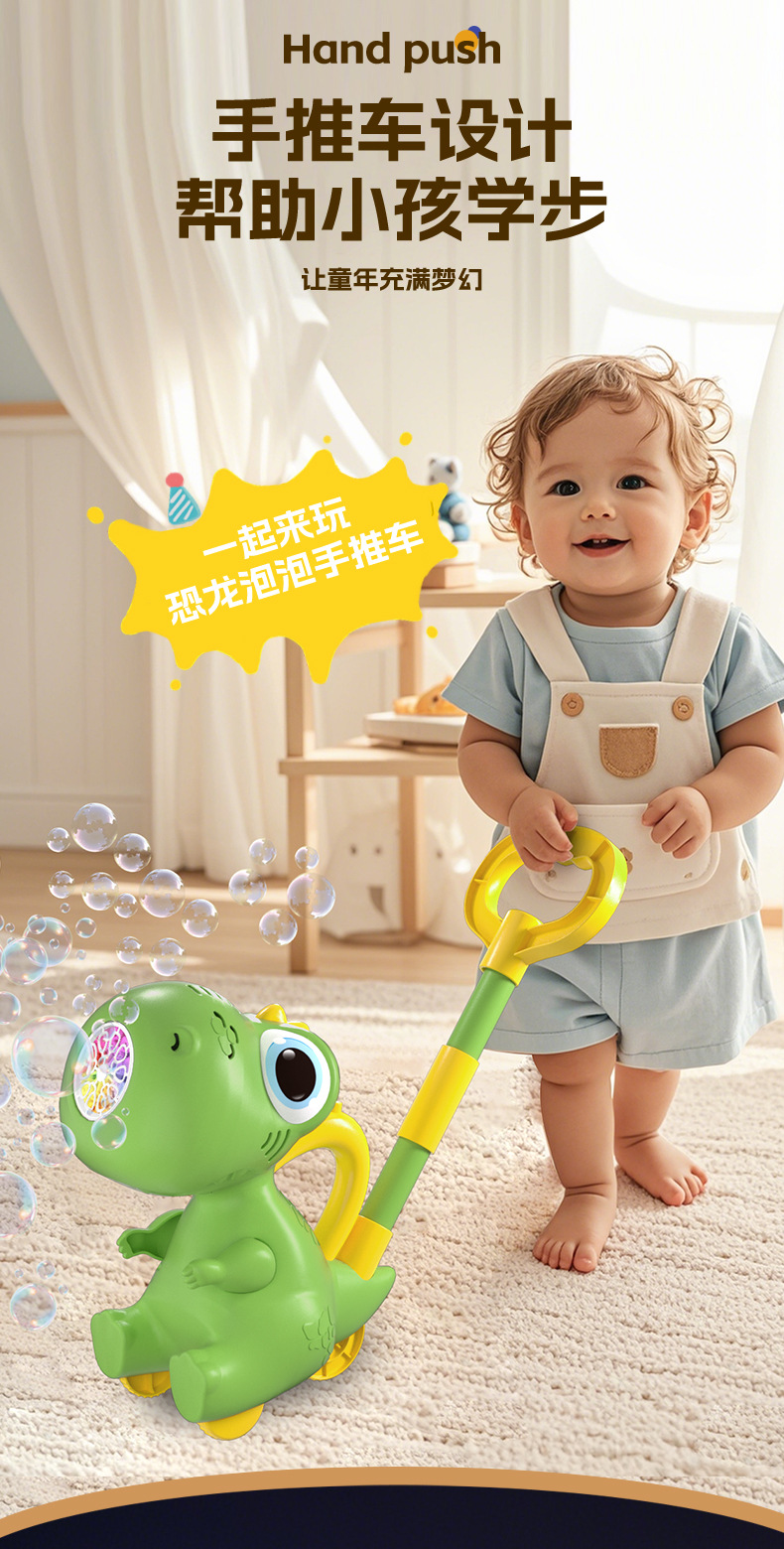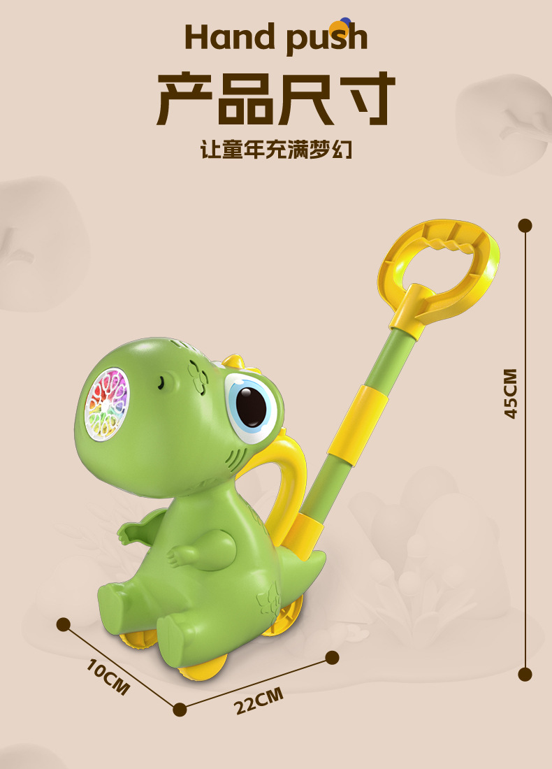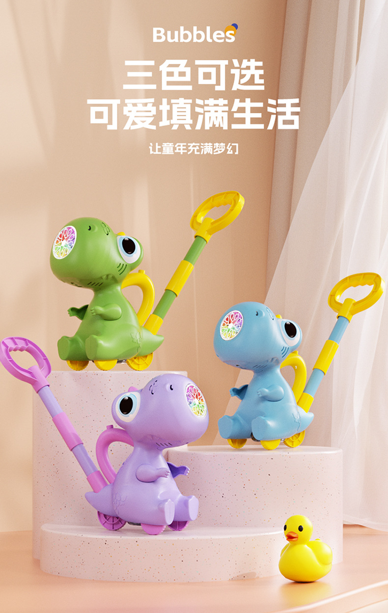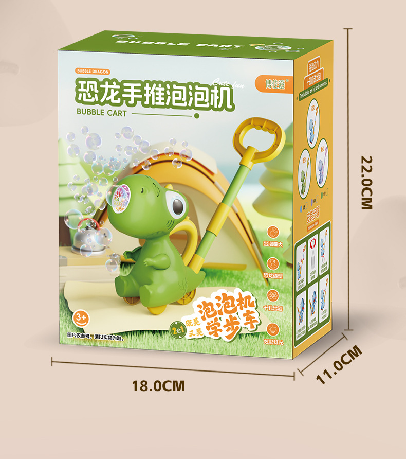 새로운 푸시 워커 공룡 거품 기계 어린이 만화 야외 푸시 전기 빛 거품 장난감 도매스토어 가기