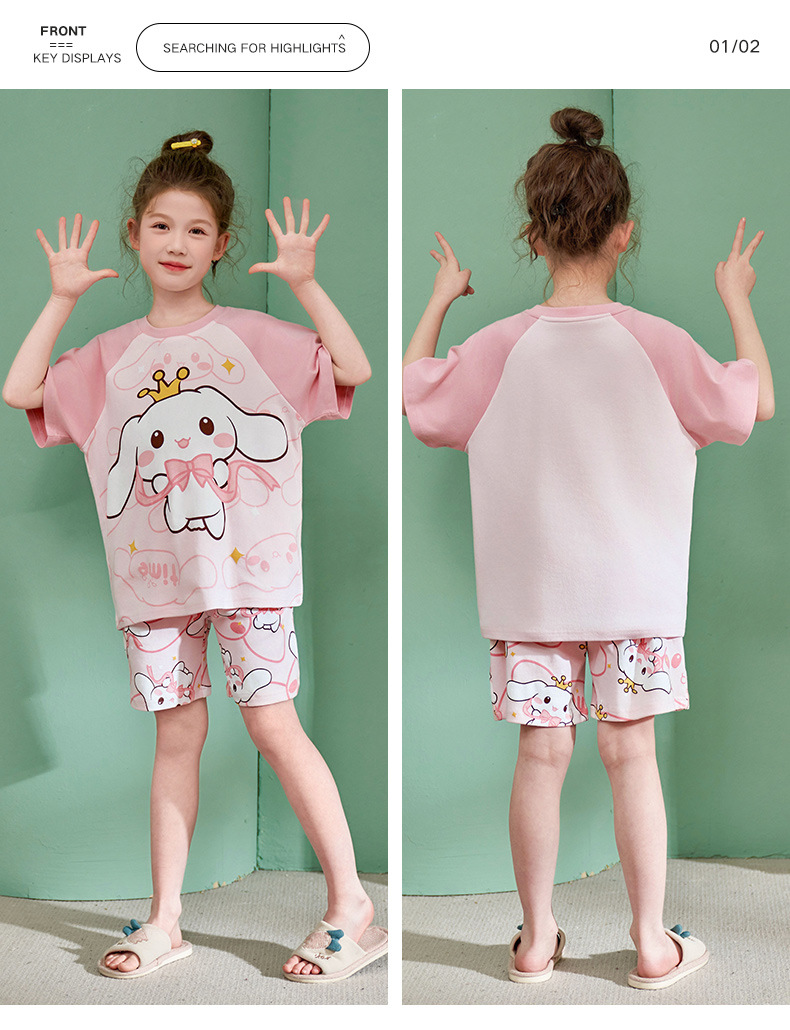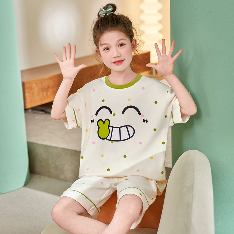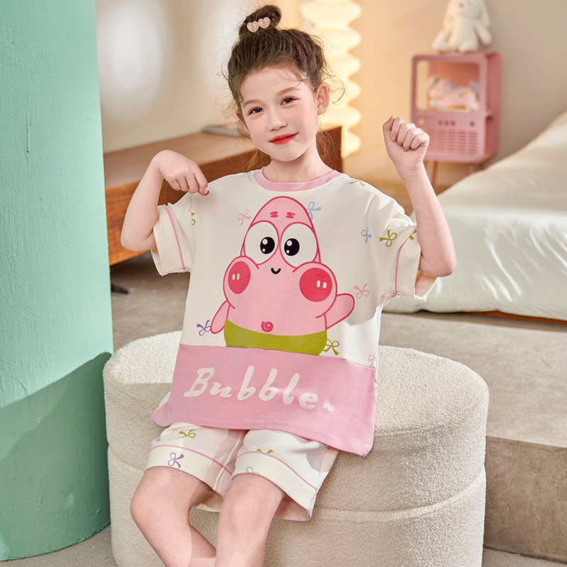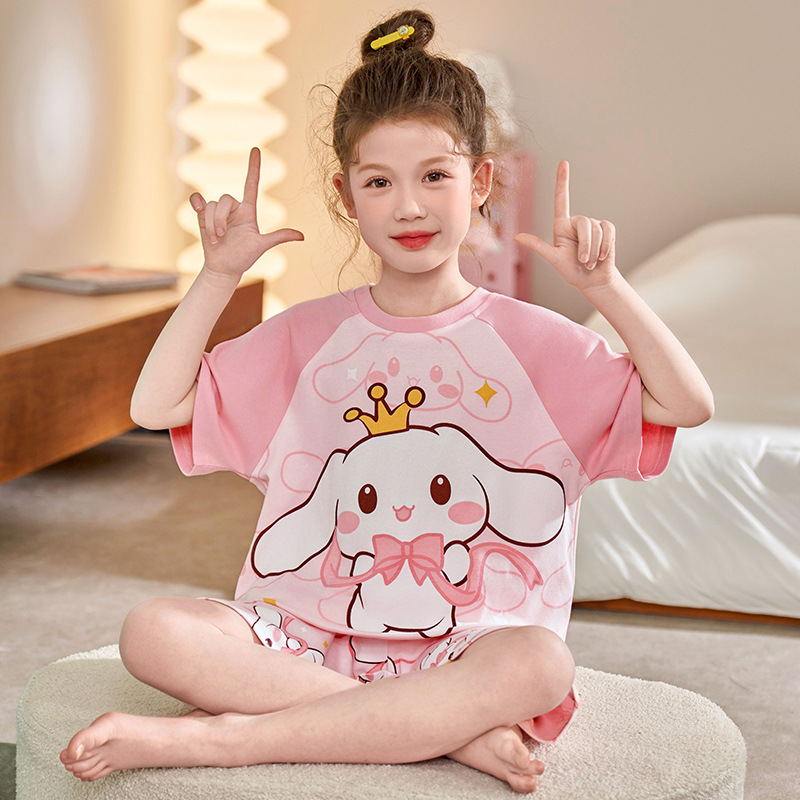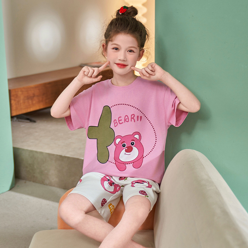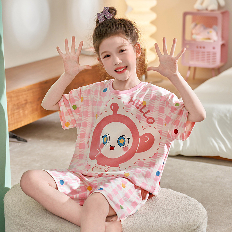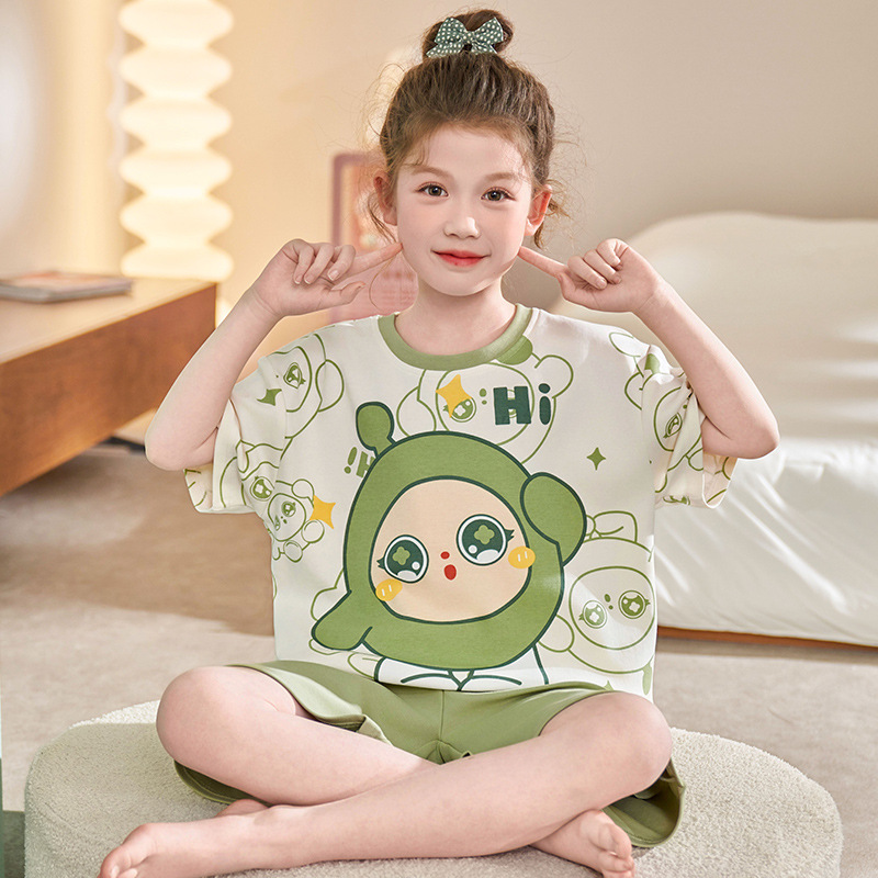 소녀 잠옷 순면 어린이 여름 반팔 얇은 소녀 만화 귀여운 아기 중 큰 어린이 여름 홈 옷
