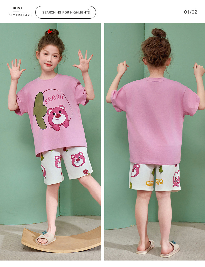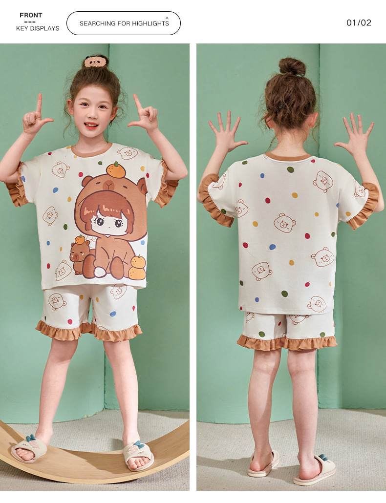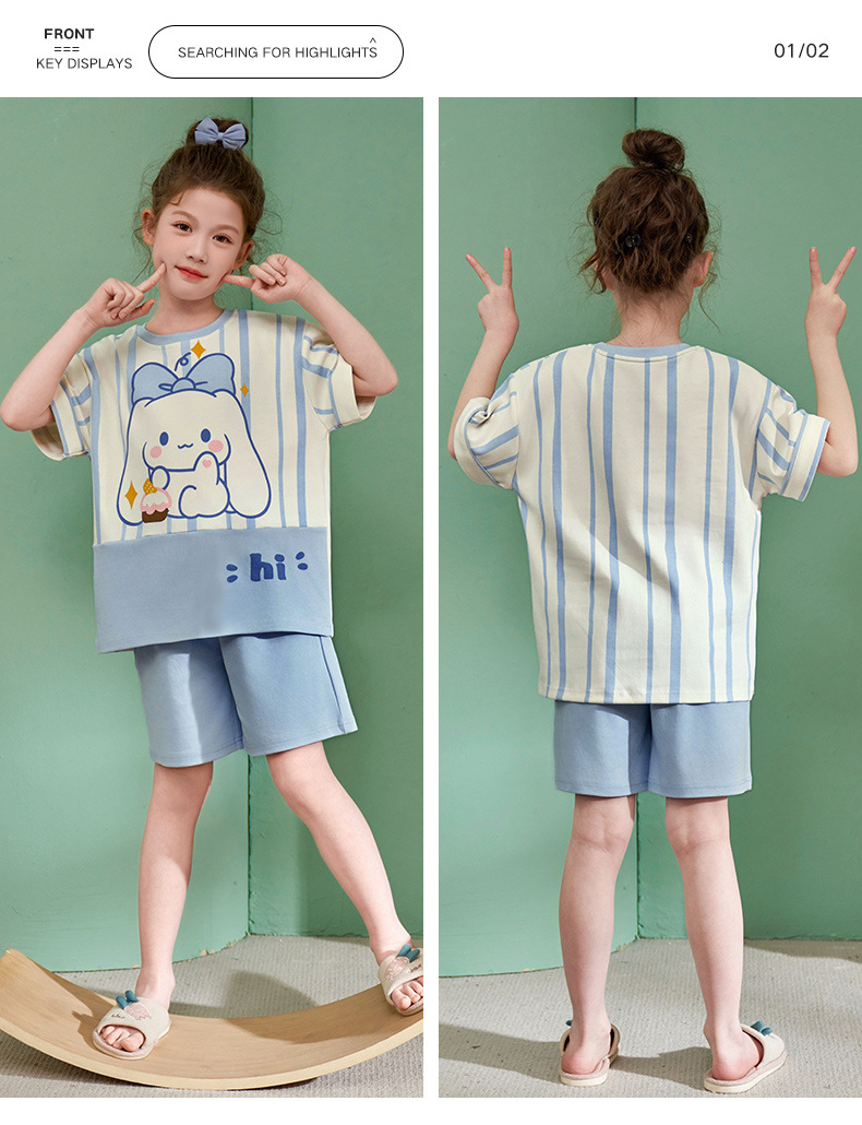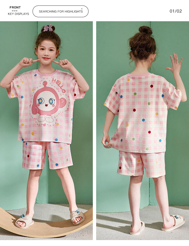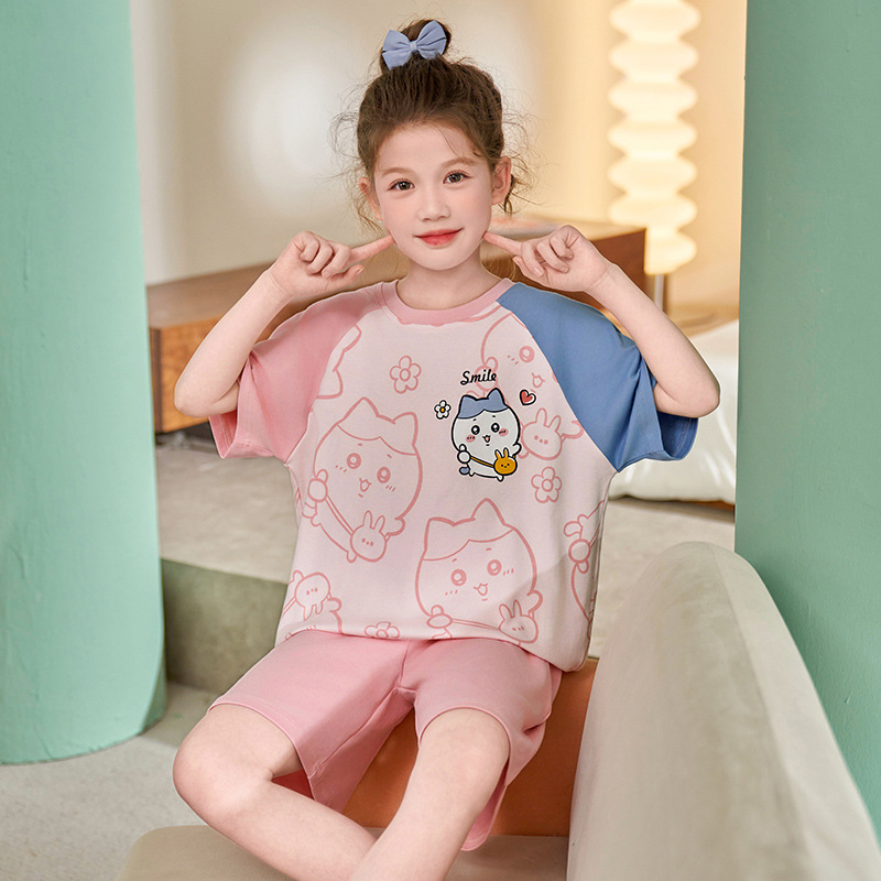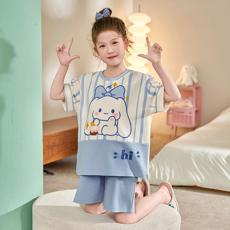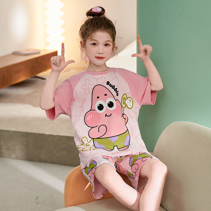 소녀 잠옷 순면 어린이 여름 반팔 얇은 소녀 만화 귀여운 아기 중 큰 어린이 여름 홈 옷