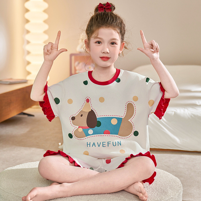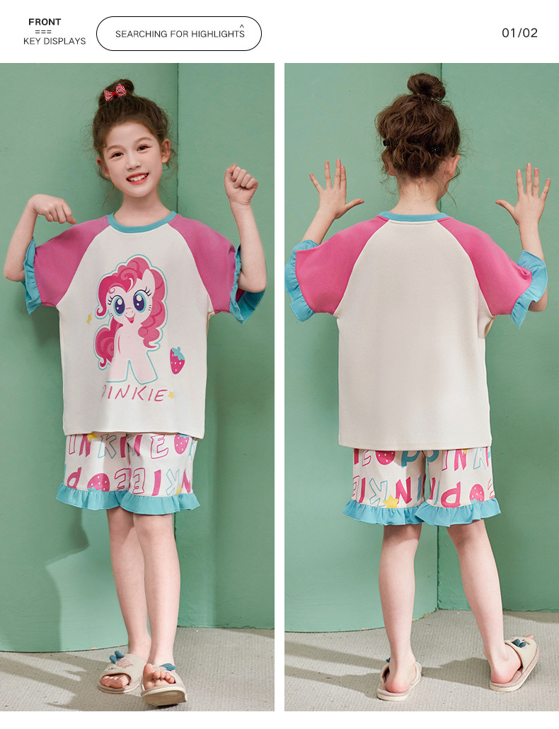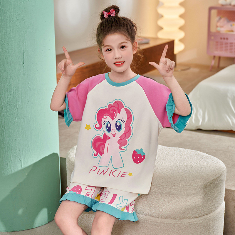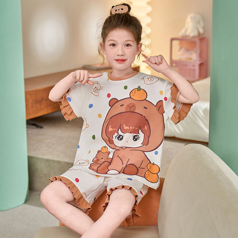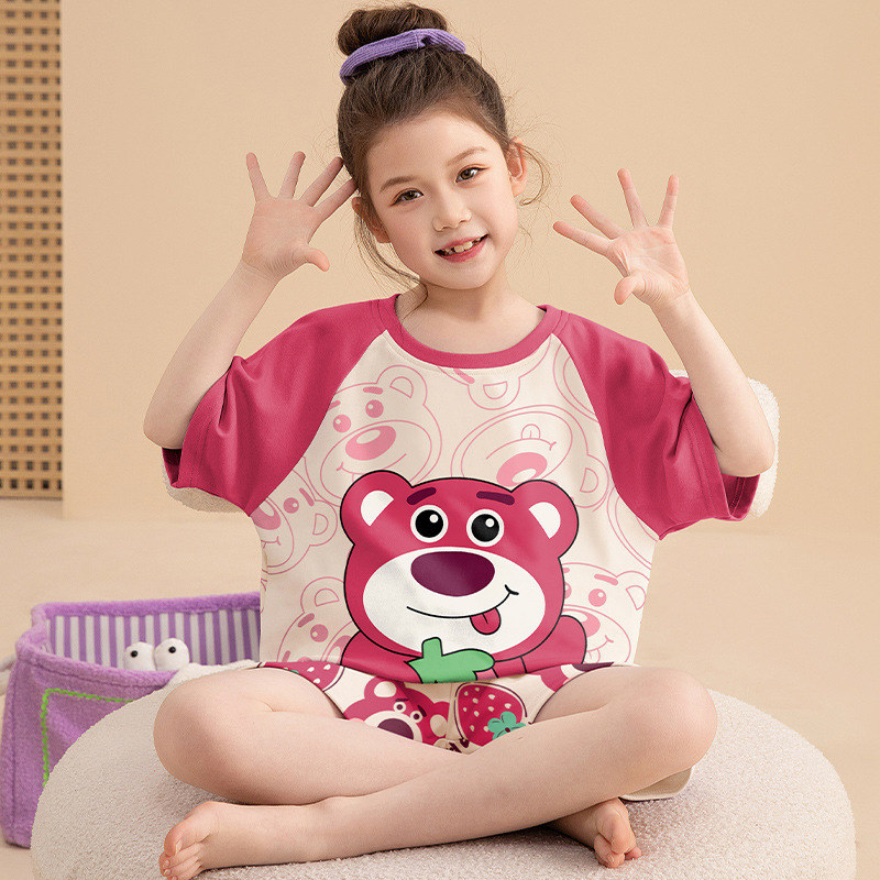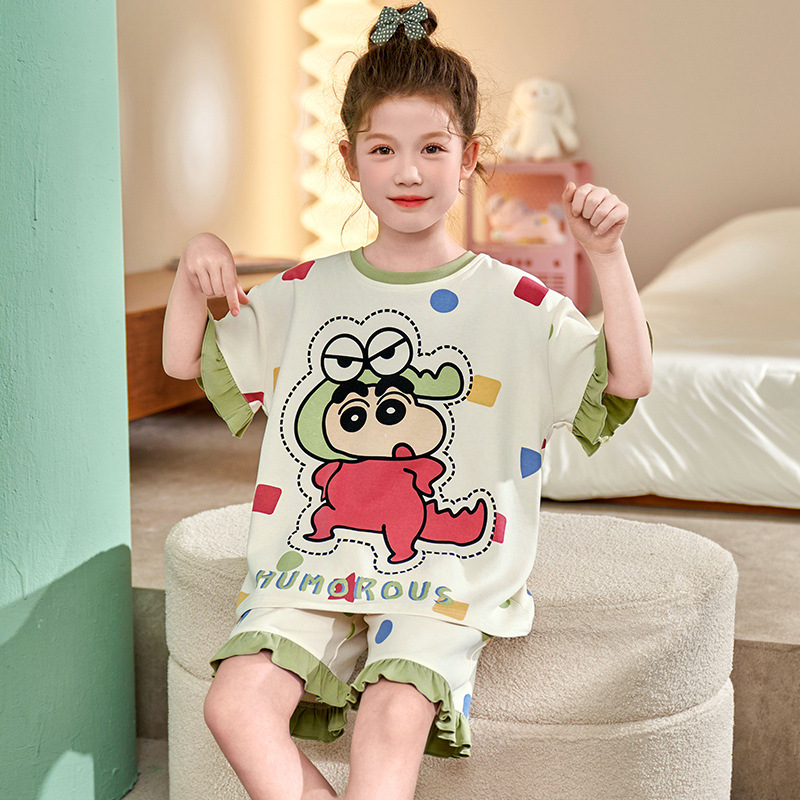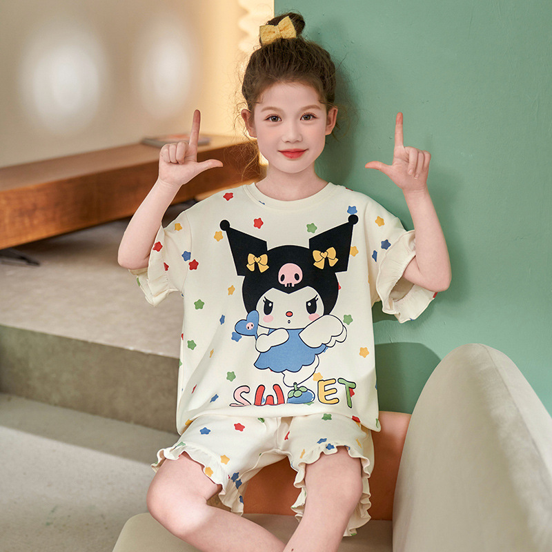 소녀 잠옷 순면 어린이 여름 반팔 얇은 소녀 만화 귀여운 아기 중 큰 어린이 여름 홈 옷