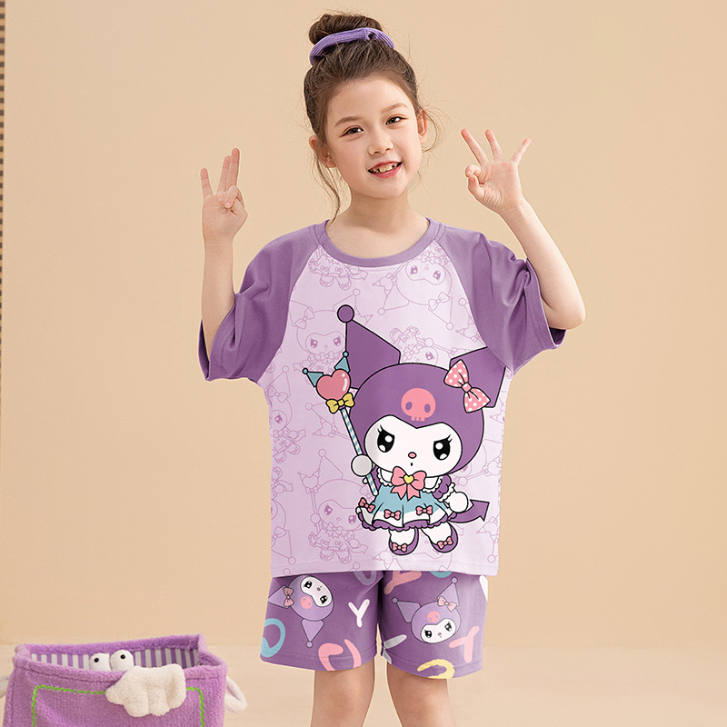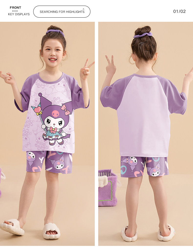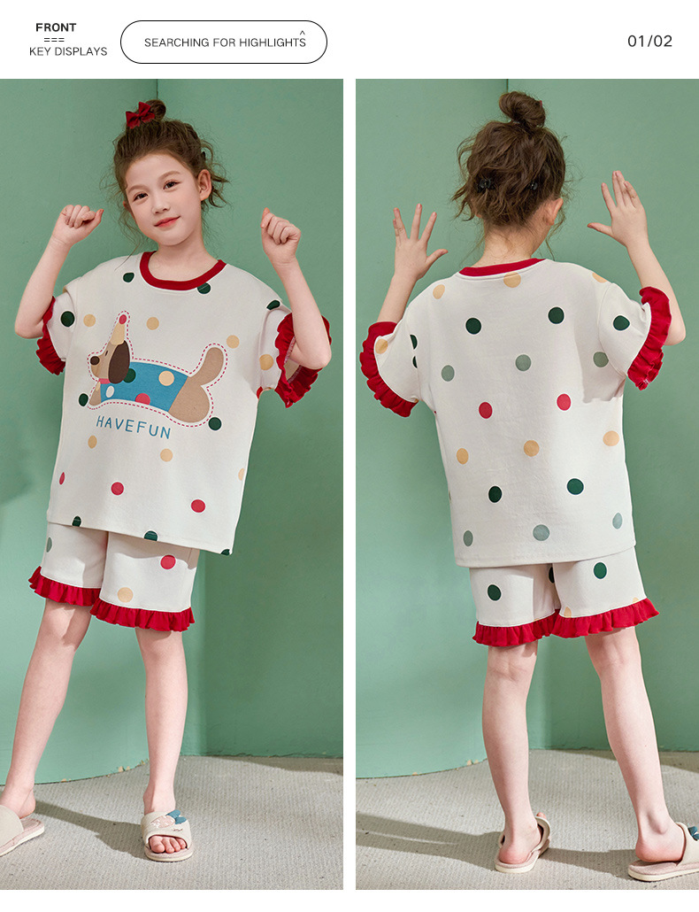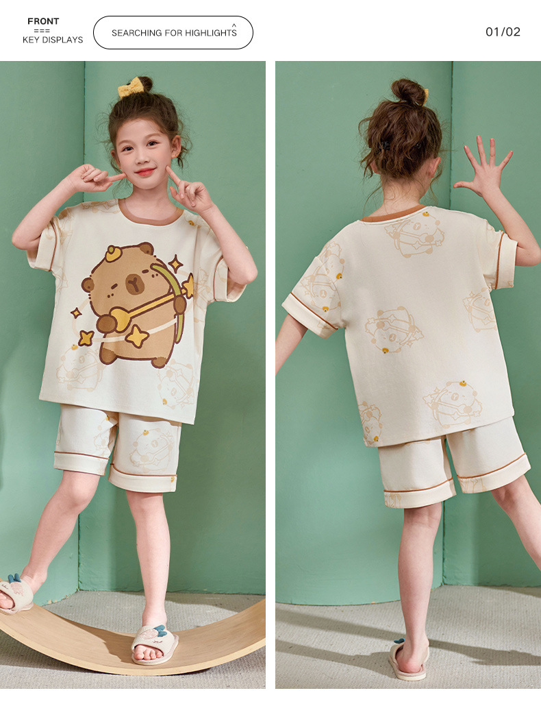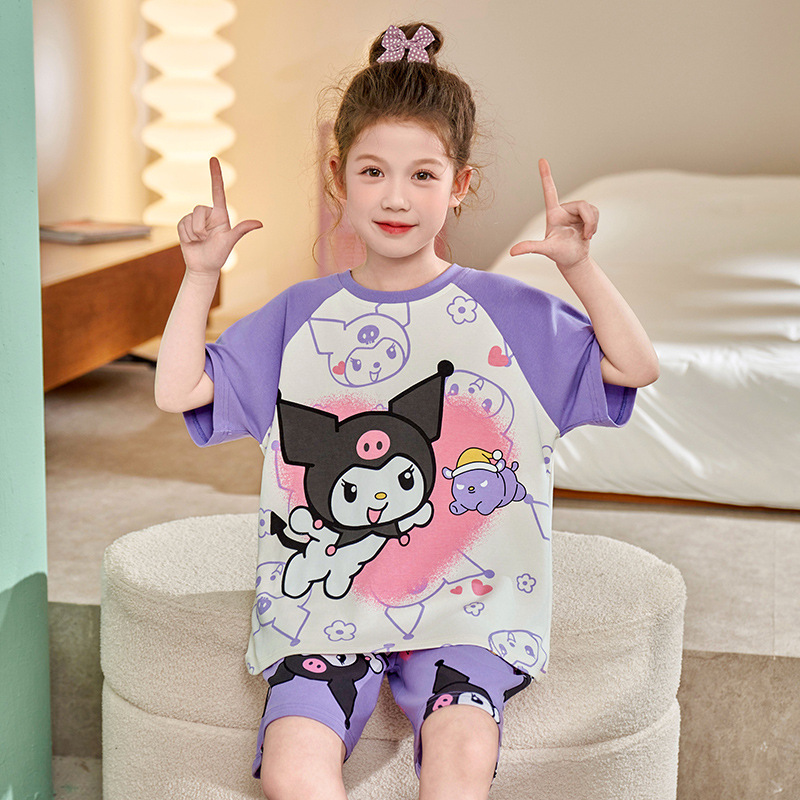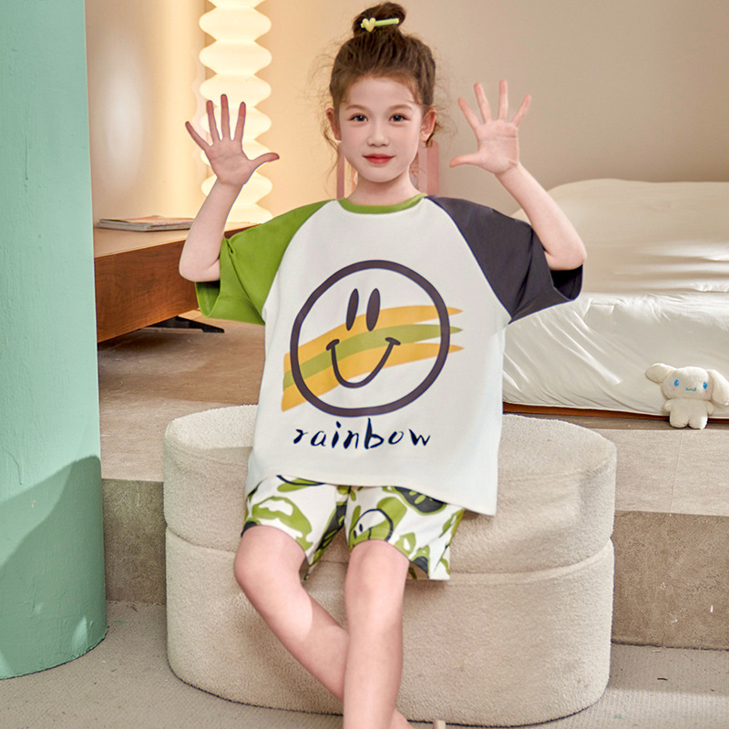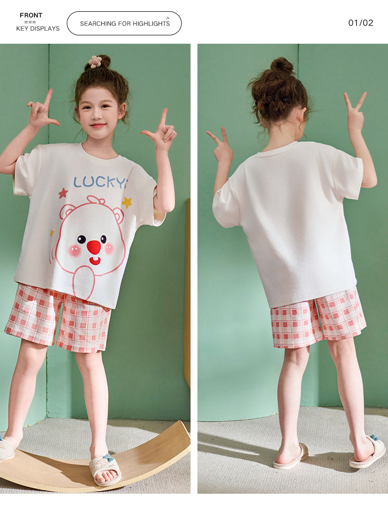 소녀 잠옷 순면 어린이 여름 반팔 얇은 소녀 만화 귀여운 아기 중 큰 어린이 여름 홈 옷