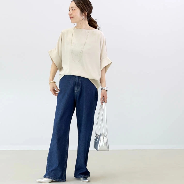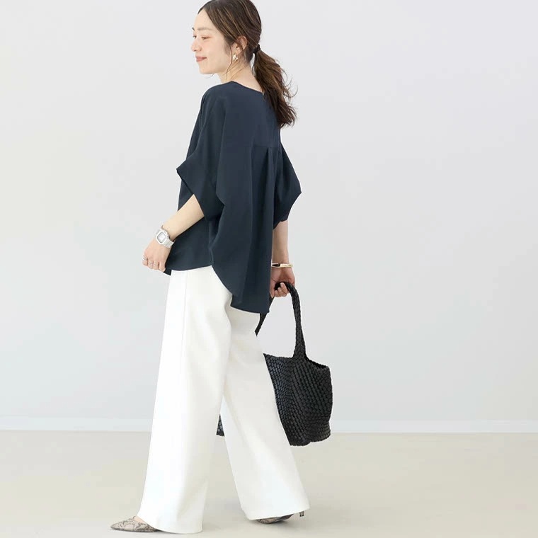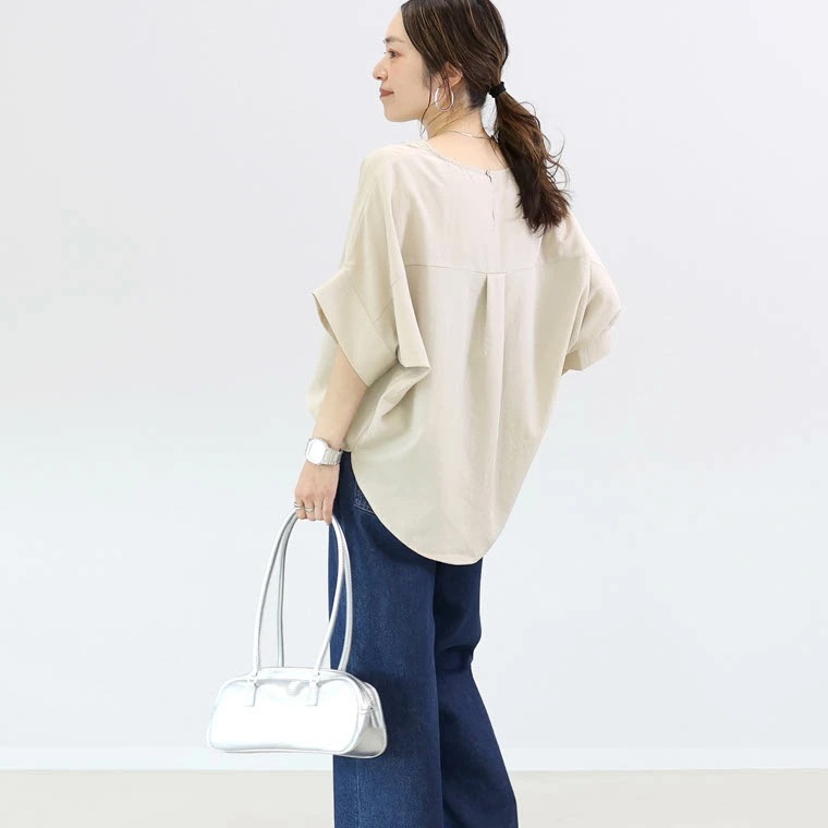 국경 간 일본과 한국의 새로운 2025 여름 여성 복고풍 게으른 스타일 패션 배트 슬리브 5부 소매 셔츠 여성상의스토어 가기