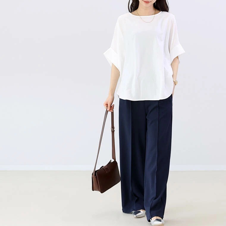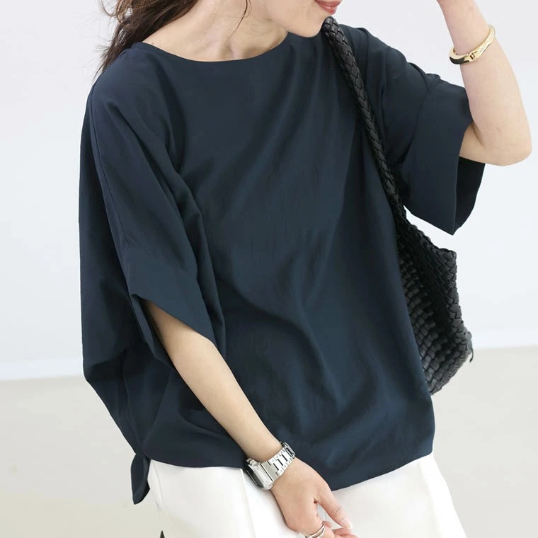 국경 간 일본과 한국의 새로운 2025 여름 여성 복고풍 게으른 스타일 패션 배트 슬리브 5부 소매 셔츠 여성상의