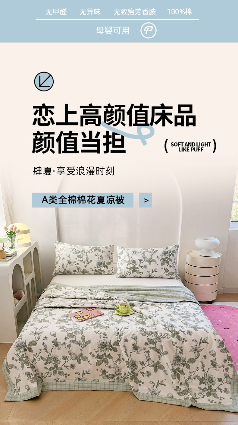 클래스 A 산모 및 유아 등급 100% 면 여름 이불 여름 신장 면 순면 세탁기로 세탁 가능한 여름 이불 에어컨 이불스토어 가기