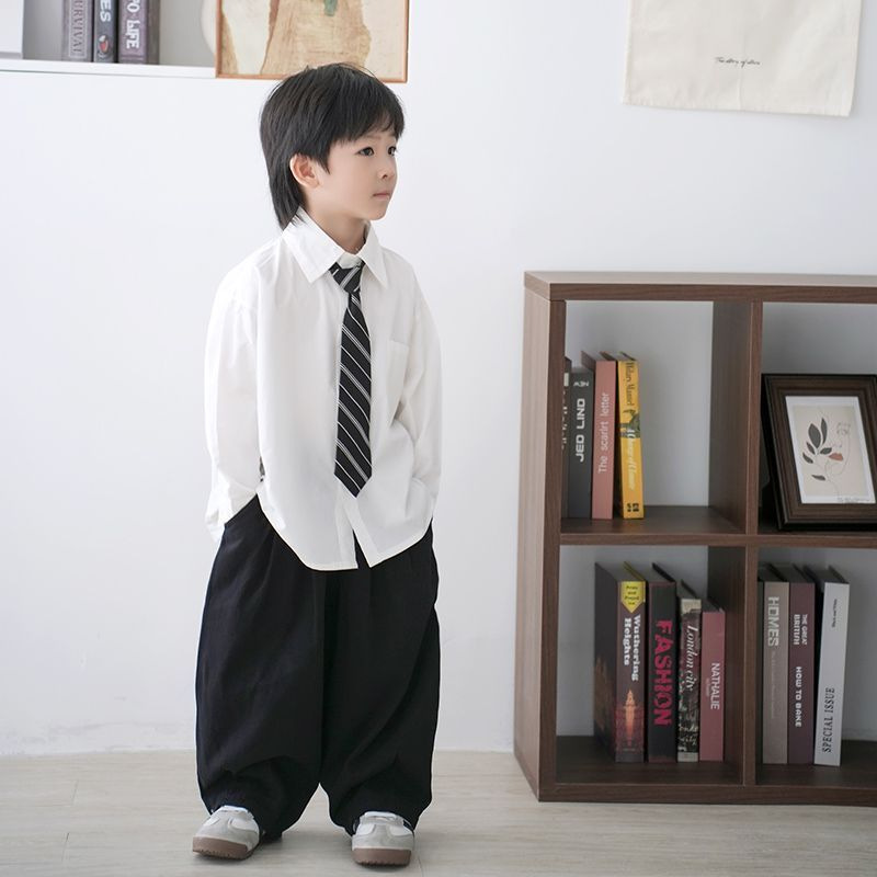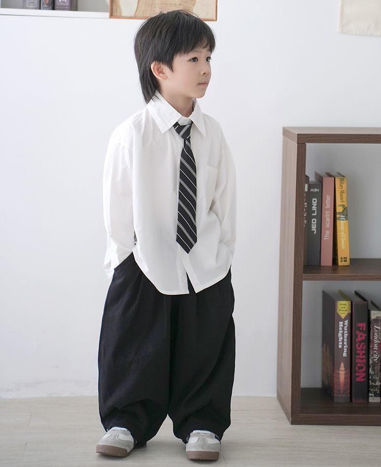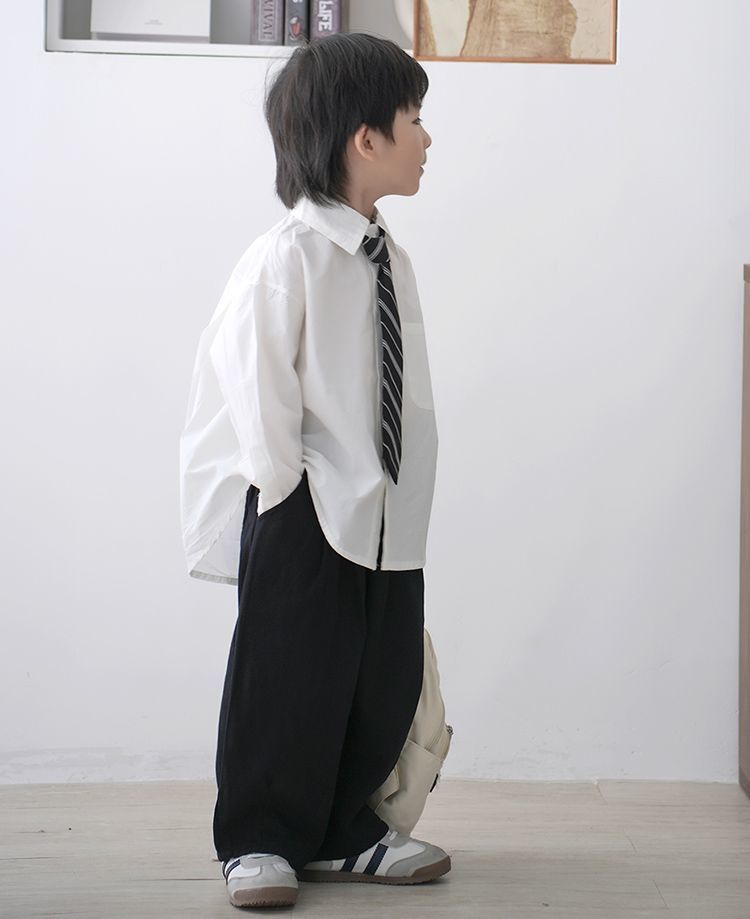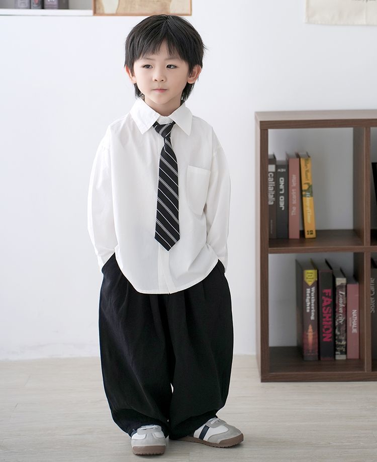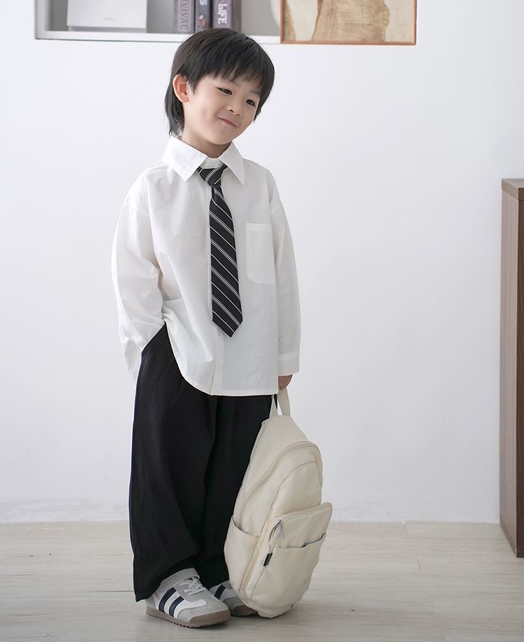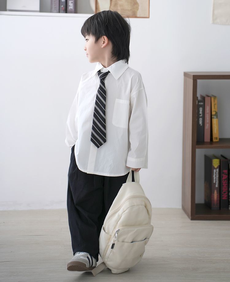 • 포켓 스타일의 화이트 긴소매 + 트윌 타이