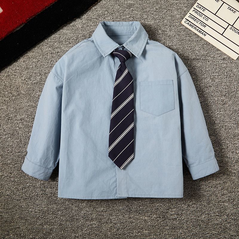 • 포켓 스타일 블루 긴소매 + 트윌 타이