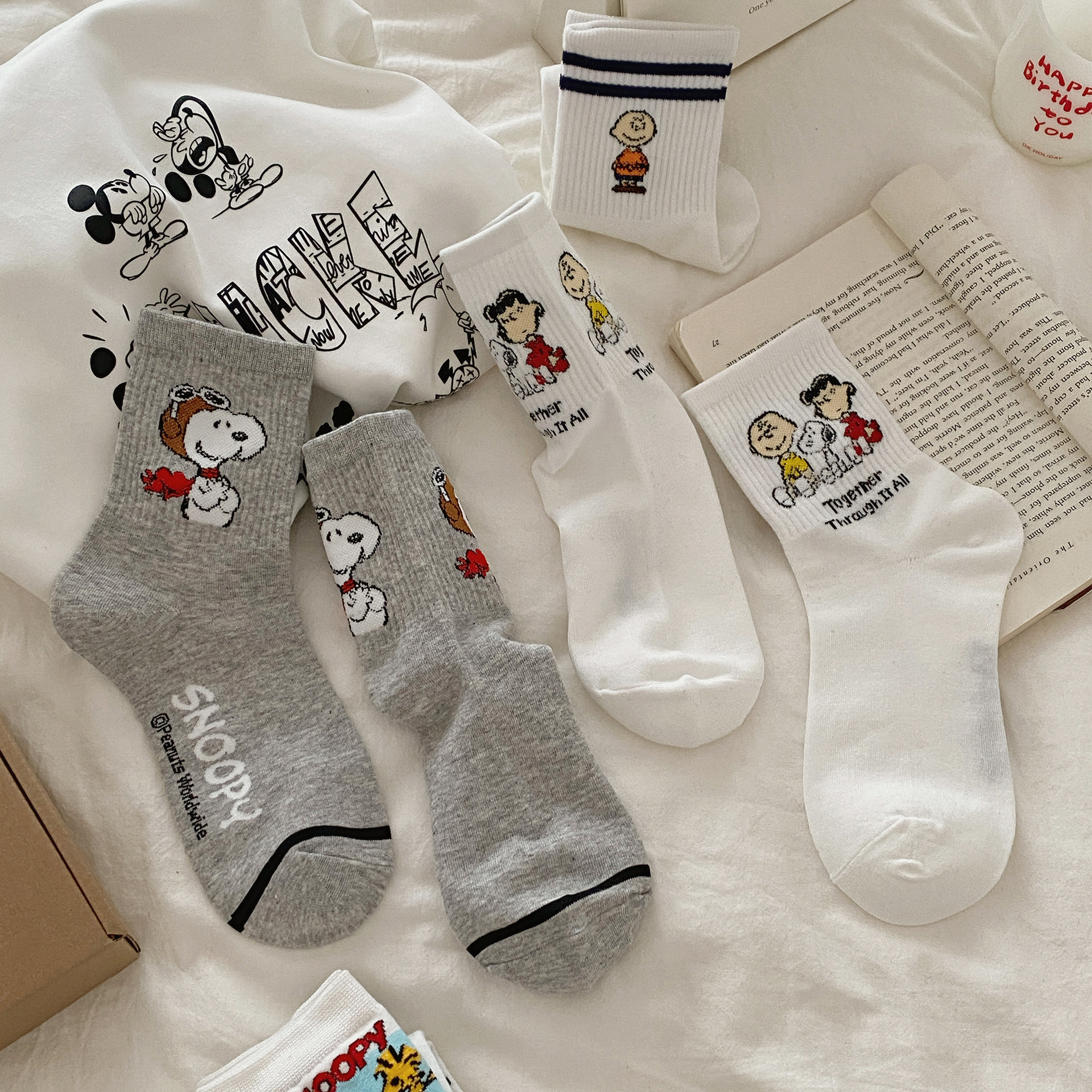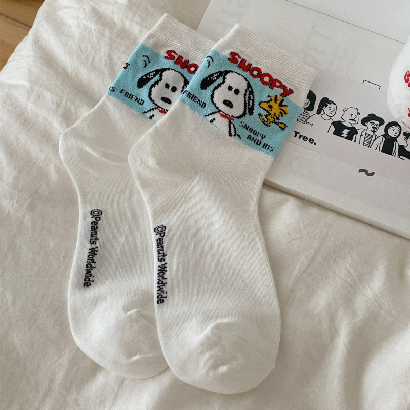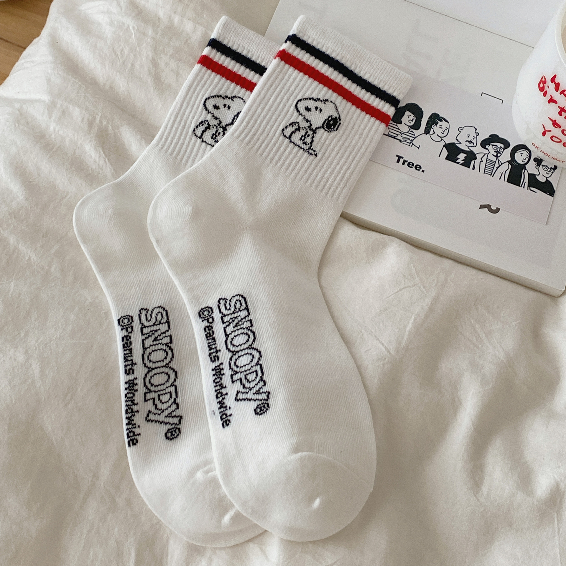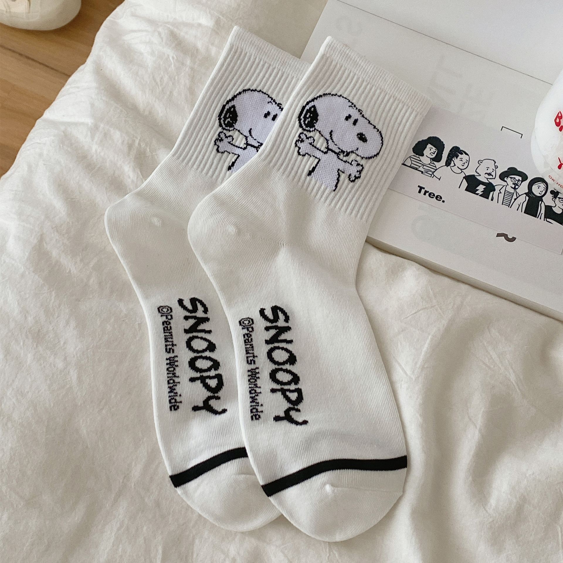 미드 양말 어린이 일본 만화 스누피 귀여운 강아지 양말 학술 스타일 애니메이션 한국 스타일 Ins 유행 여성 양말