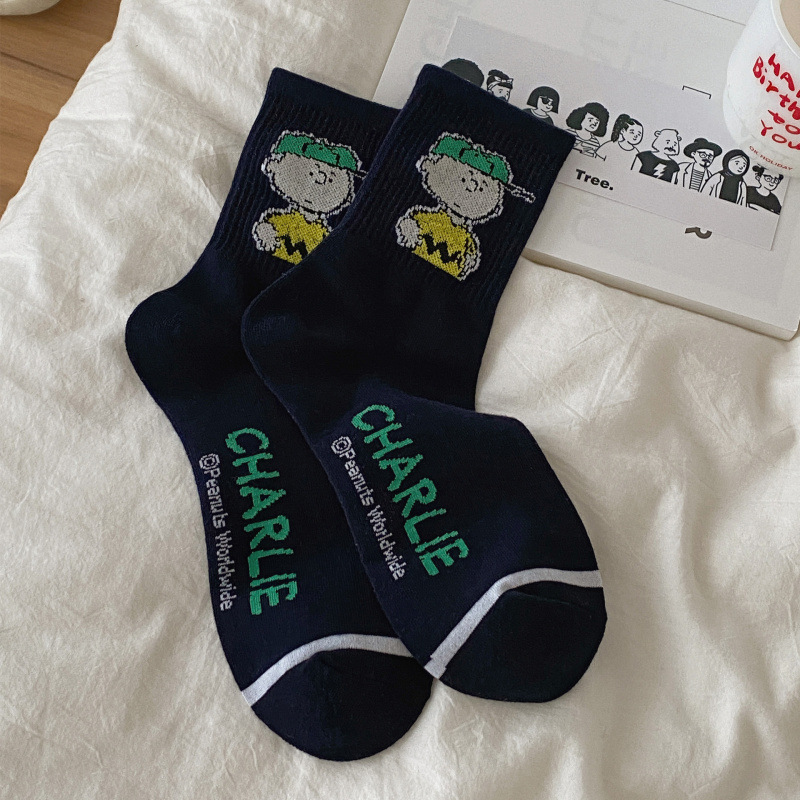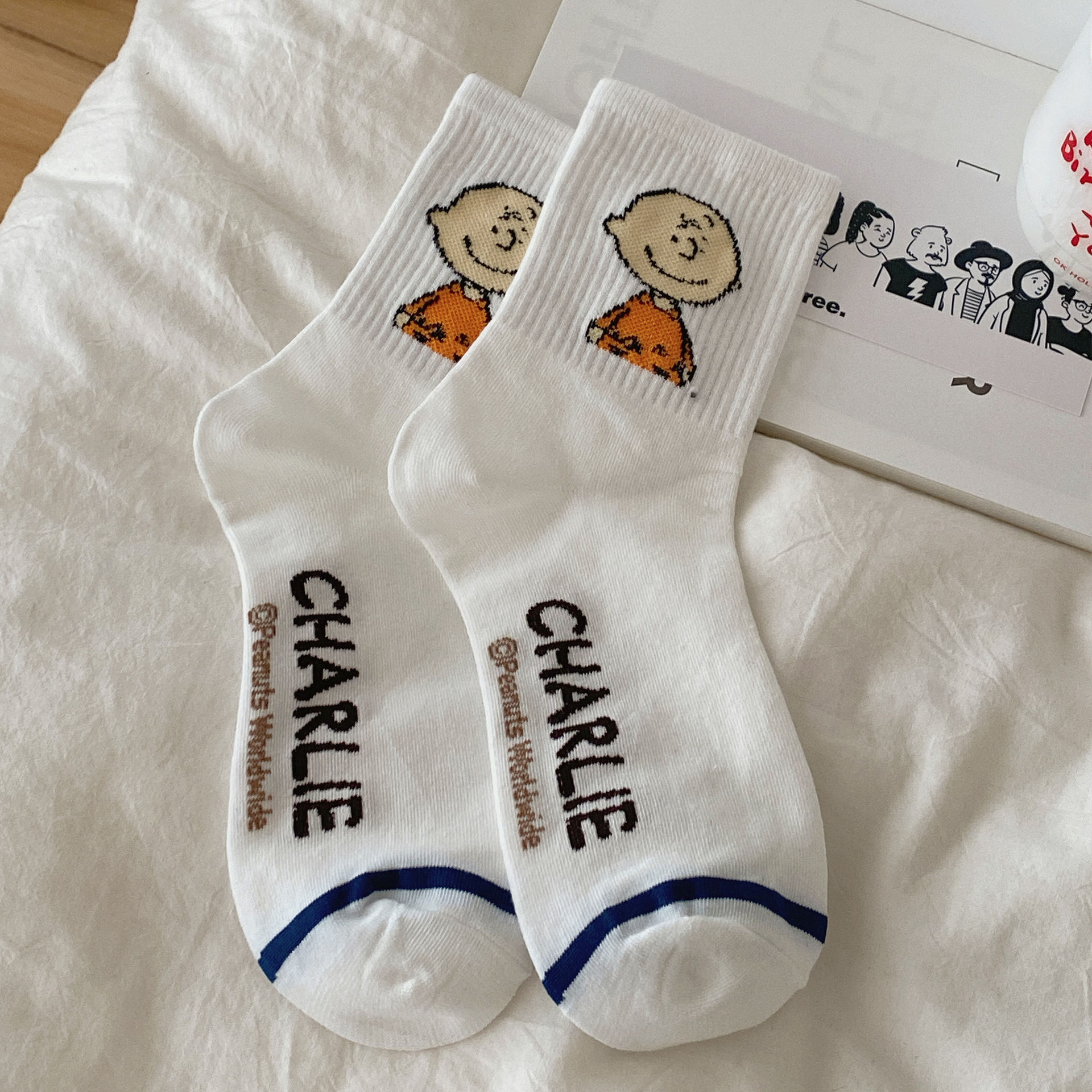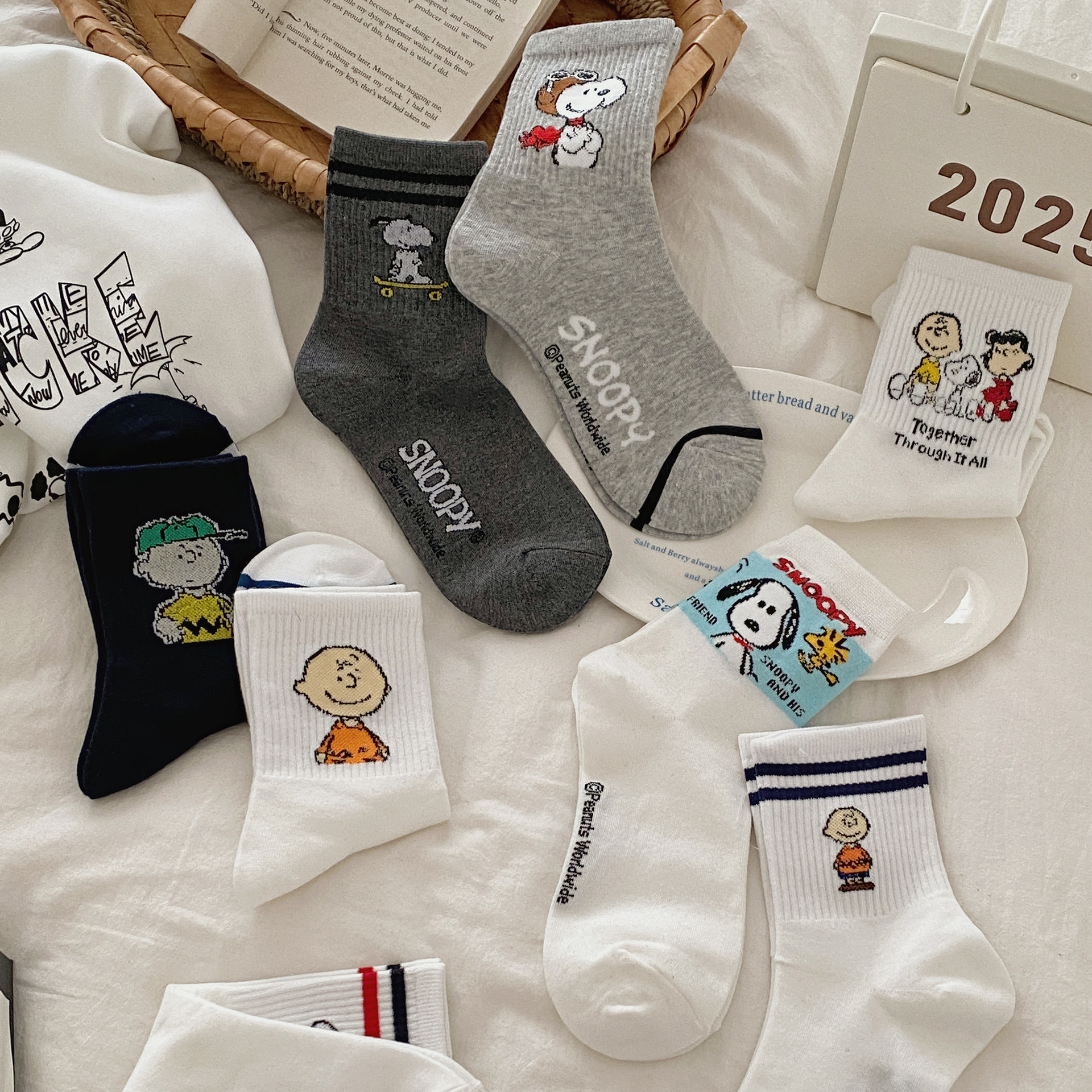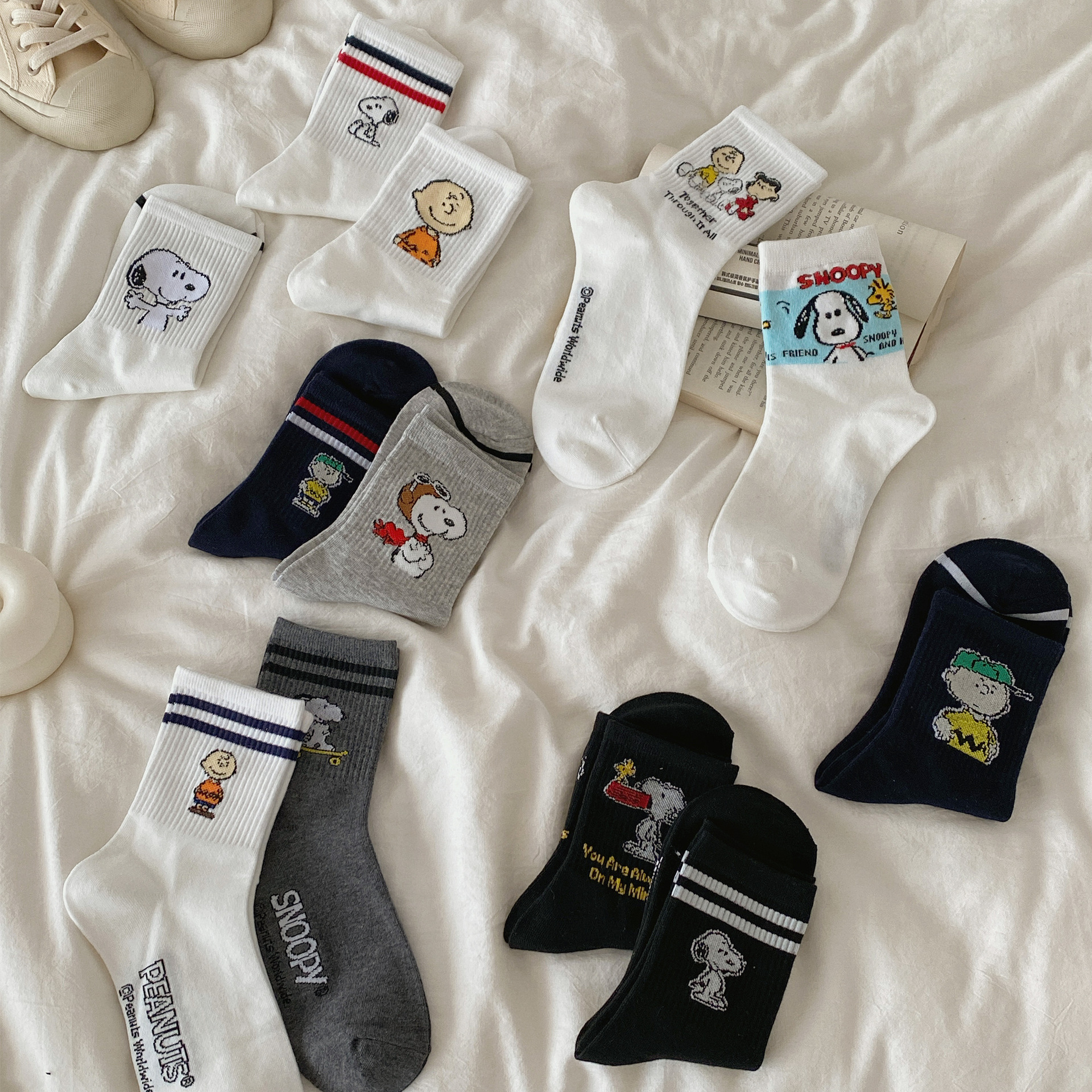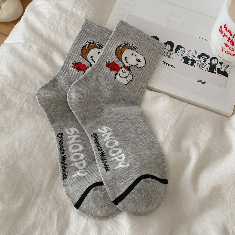 미드 양말 어린이 일본 만화 스누피 귀여운 강아지 양말 학술 스타일 애니메이션 한국 스타일 Ins 유행 여성 양말