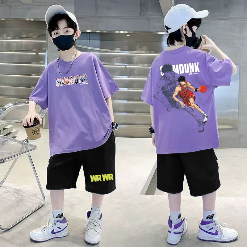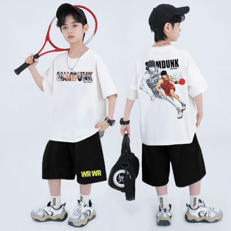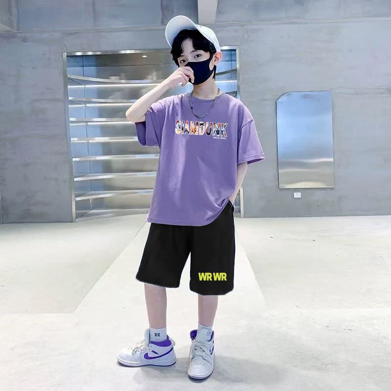 순면 반팔 반바지 소년 세트 스포츠 농구 소년 여름 빅 키즈 느슨한 유행 멋진 Faggot 잘 생긴 아이들스토어 가기