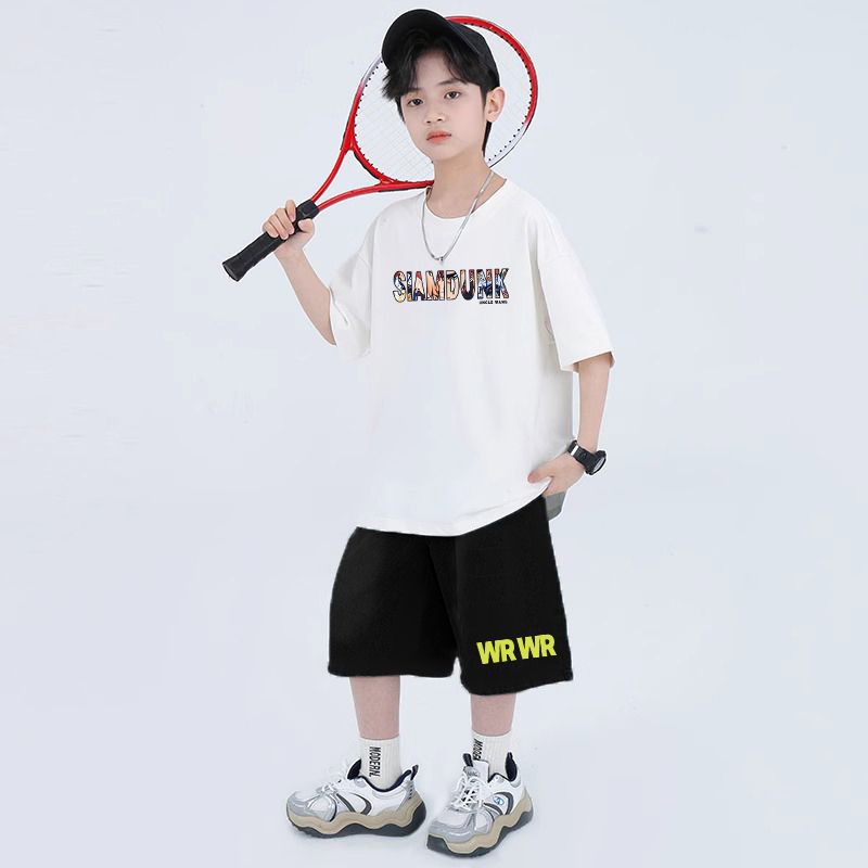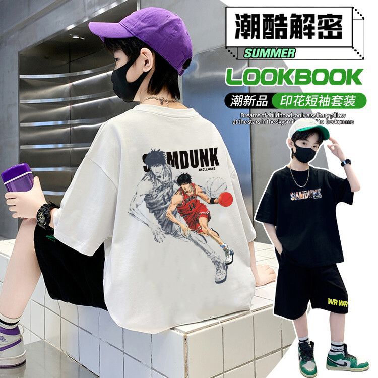 순면 반팔 반바지 소년 세트 스포츠 농구 소년 여름 빅 키즈 느슨한 유행 멋진 Faggot 잘 생긴 아이들