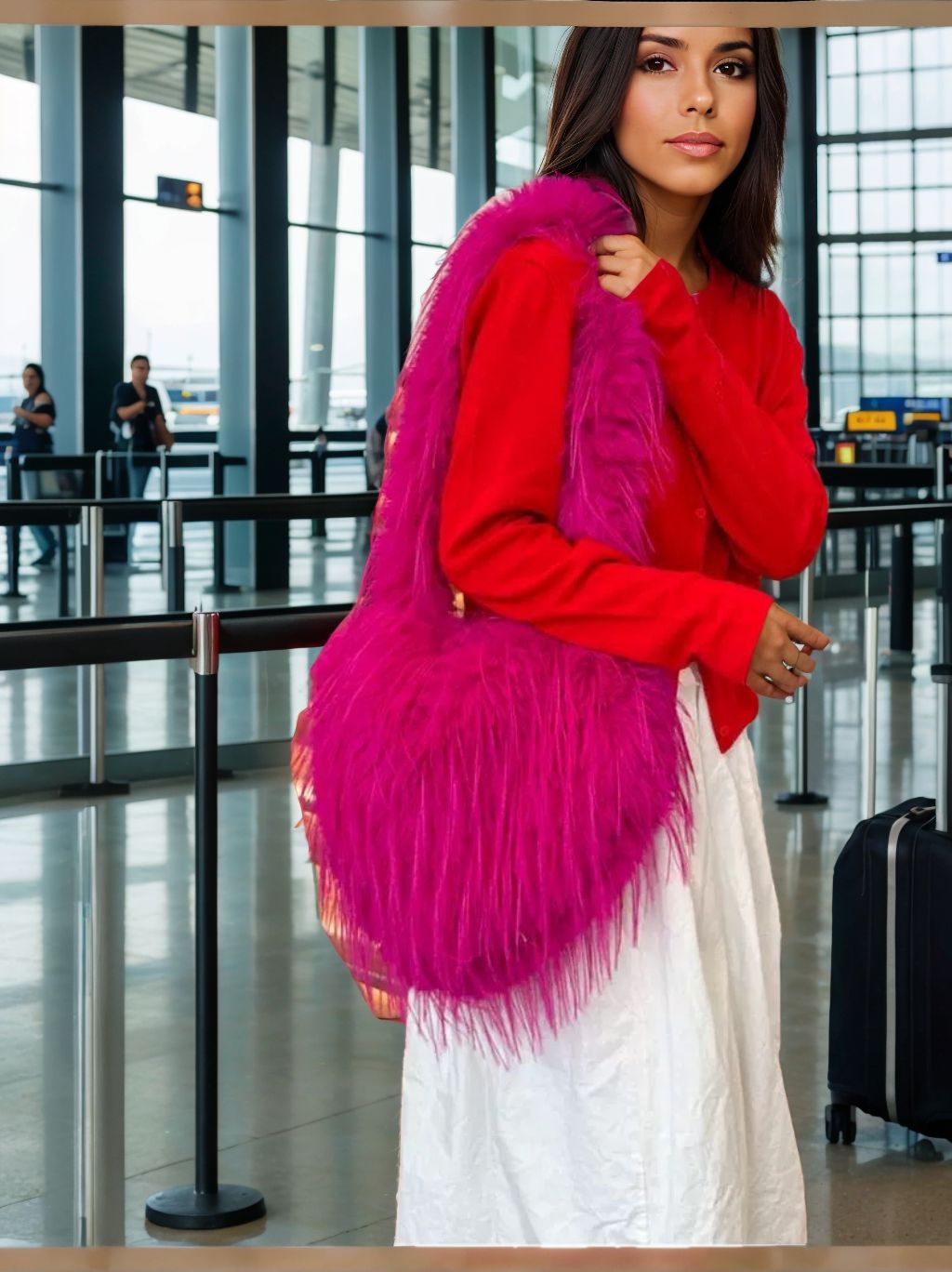 2025 독특한 유행 복숭아 심장 가방 여성 비치 울 모피 가방 하트 모양의 귀여운 크로스 바디 가방 어깨 가방 모헤어스토어 가기