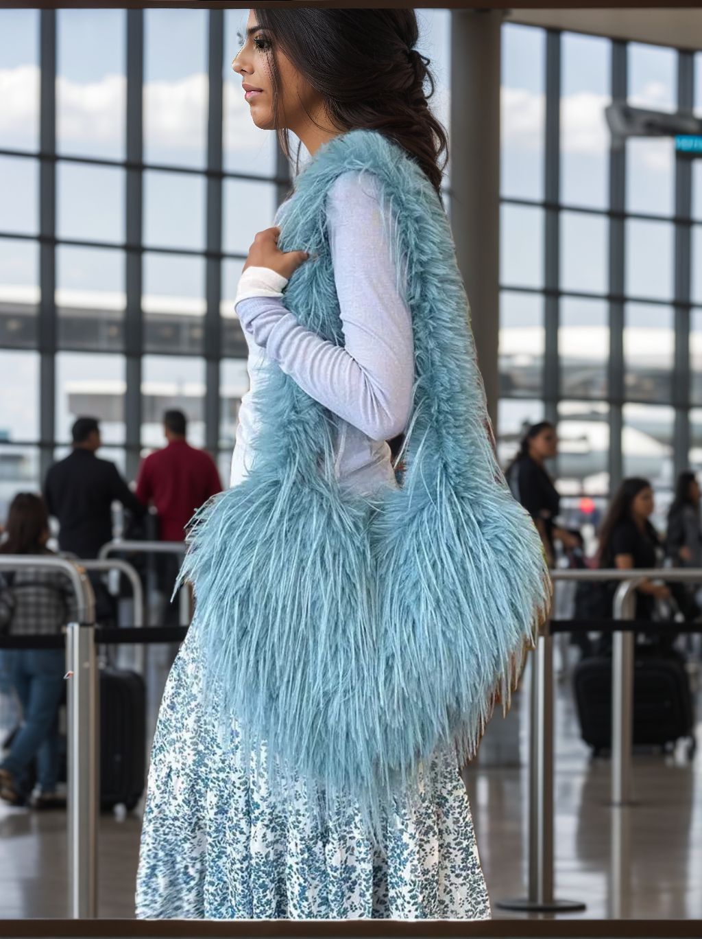 2025 독특한 유행 복숭아 심장 가방 여성 비치 울 모피 가방 하트 모양의 귀여운 크로스 바디 가방 어깨 가방 모헤어