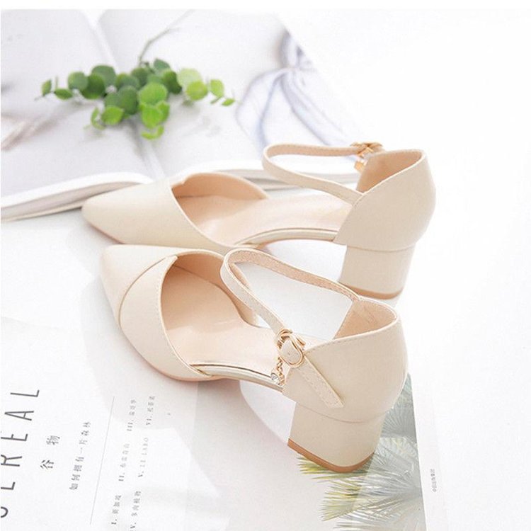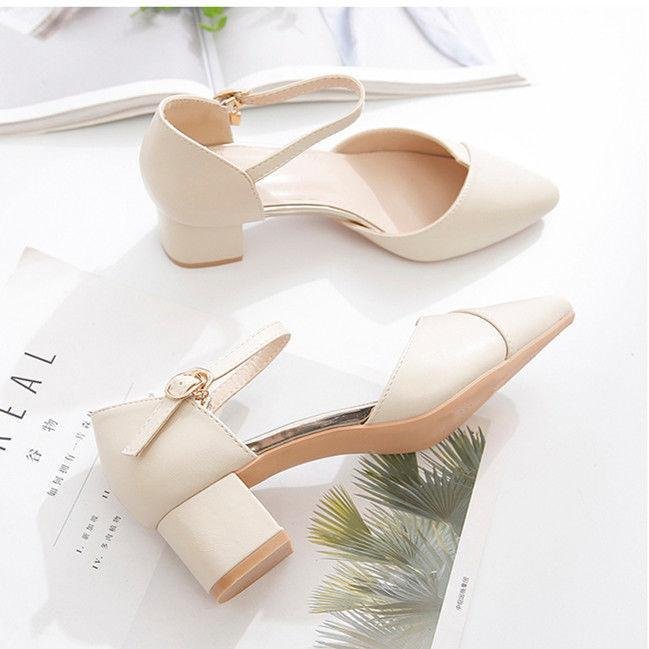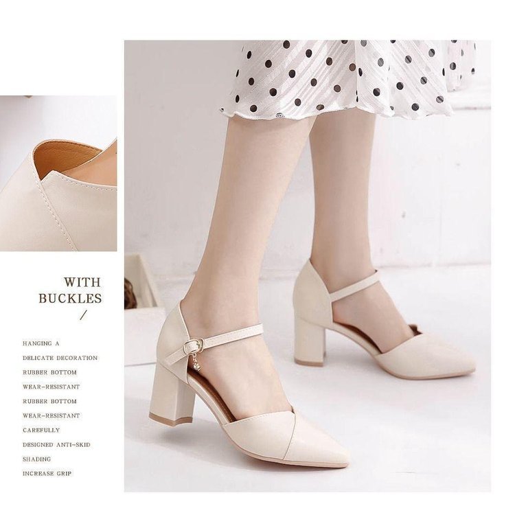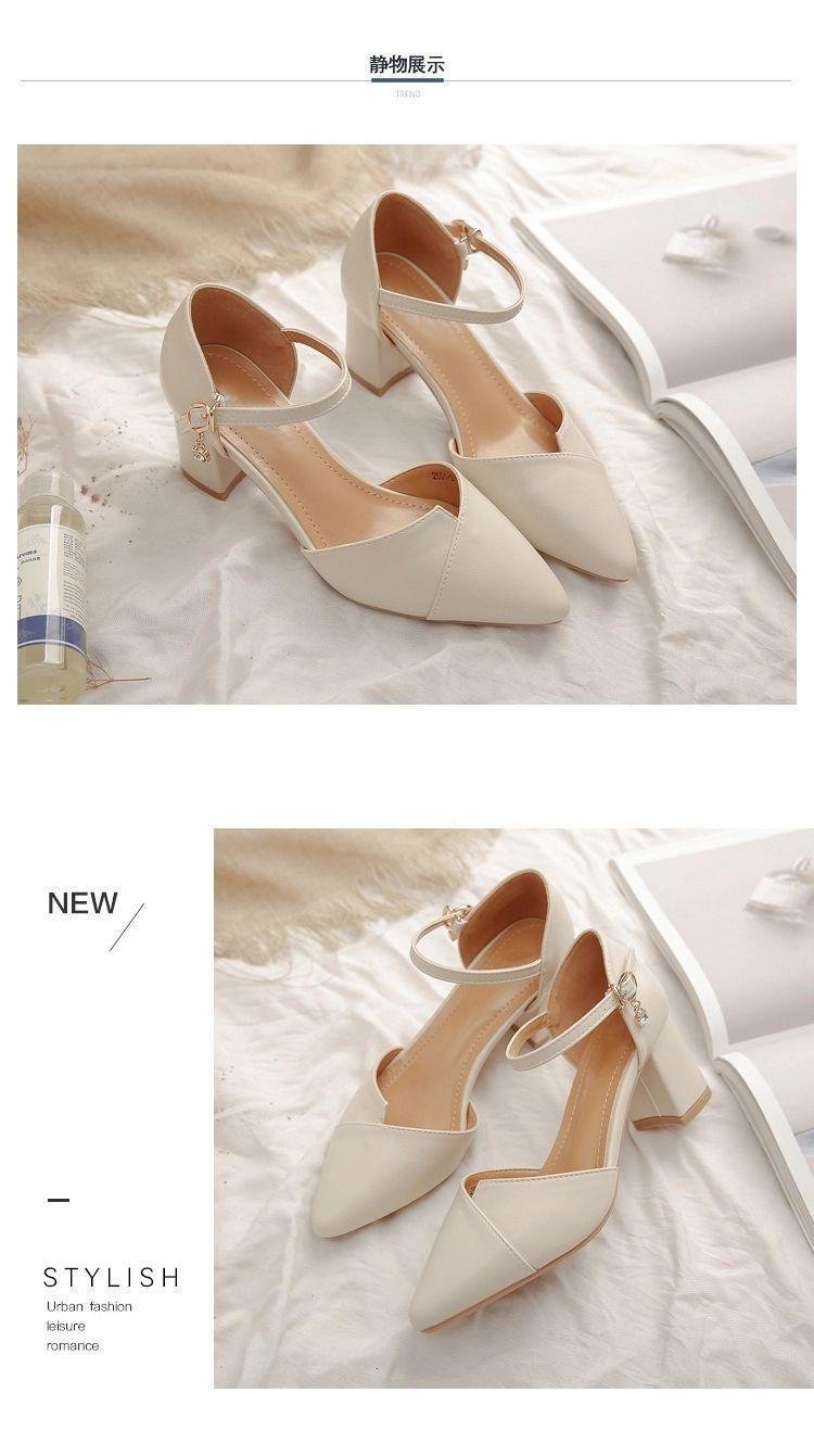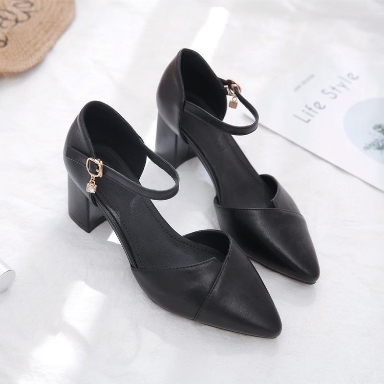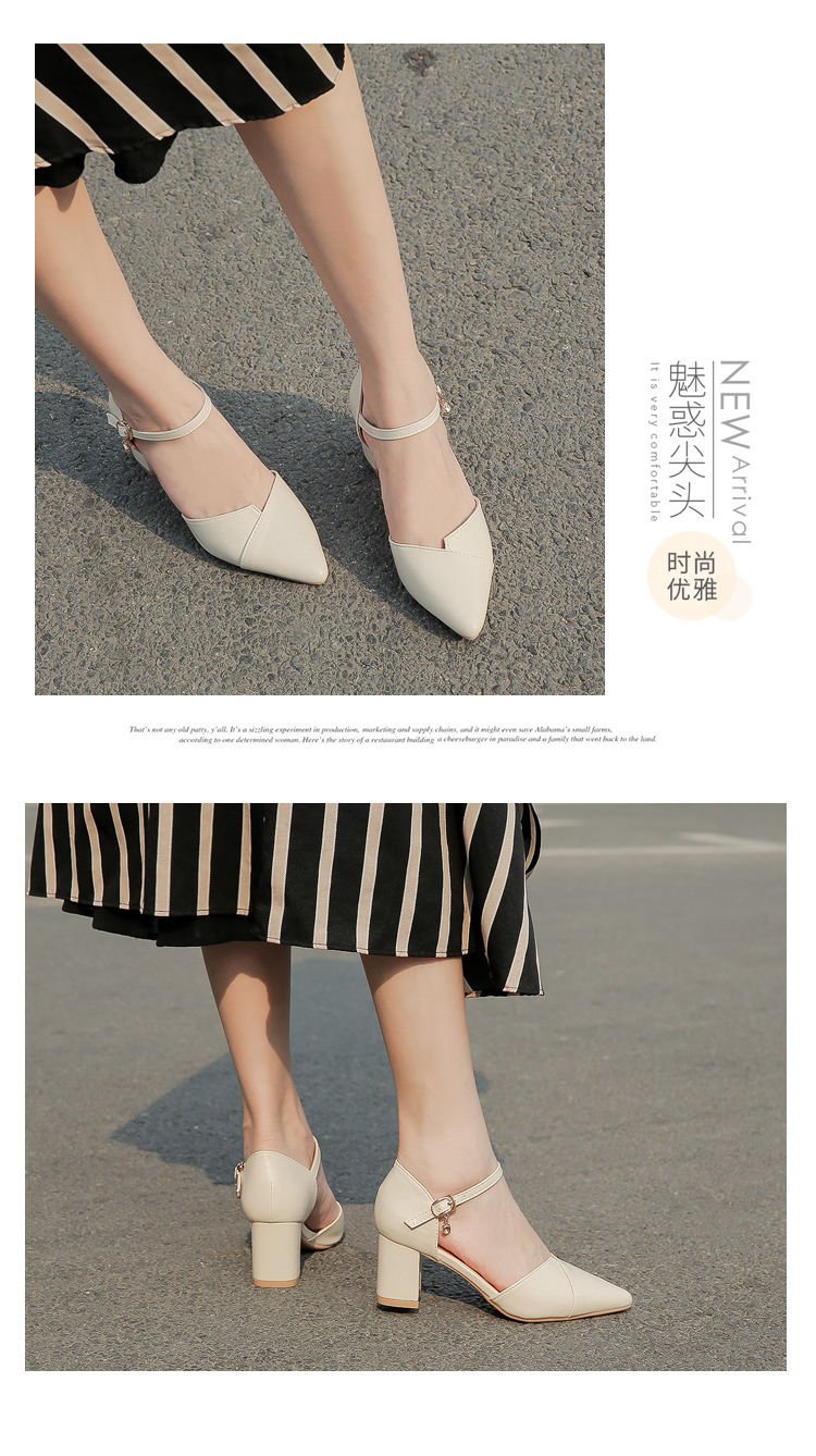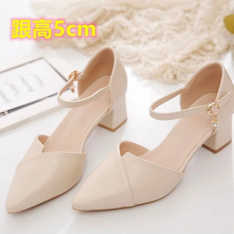 2025 새로운 스타일 여성 여름 싱글 레이어 신발 미드 힐 패셔너블 올 매치 우아한 두꺼운 뒤꿈치 하이힐 신발스토어 가기