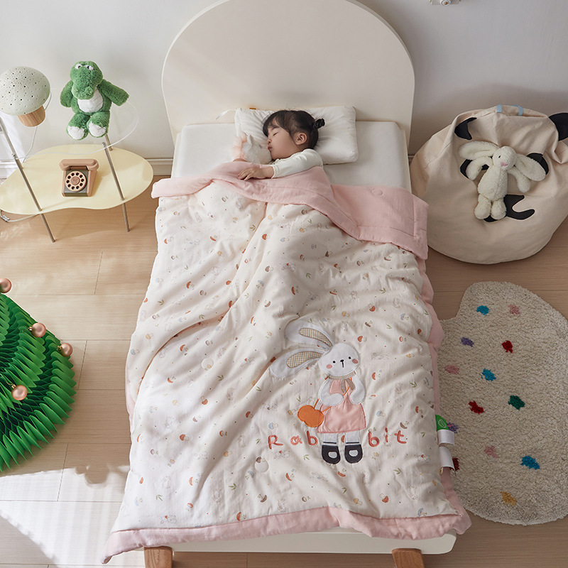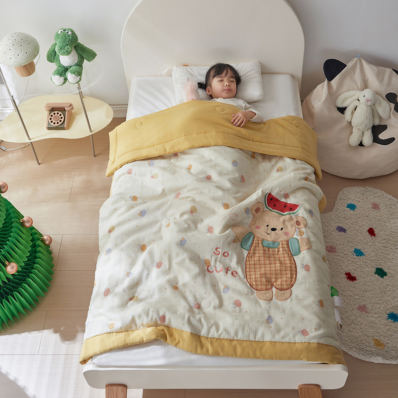 클래스 A 면 이중층 원사 여름 이불 콩 섬유 어린이 여름 이불 자수 만화 거즈 세척 에어컨 이불스토어 가기