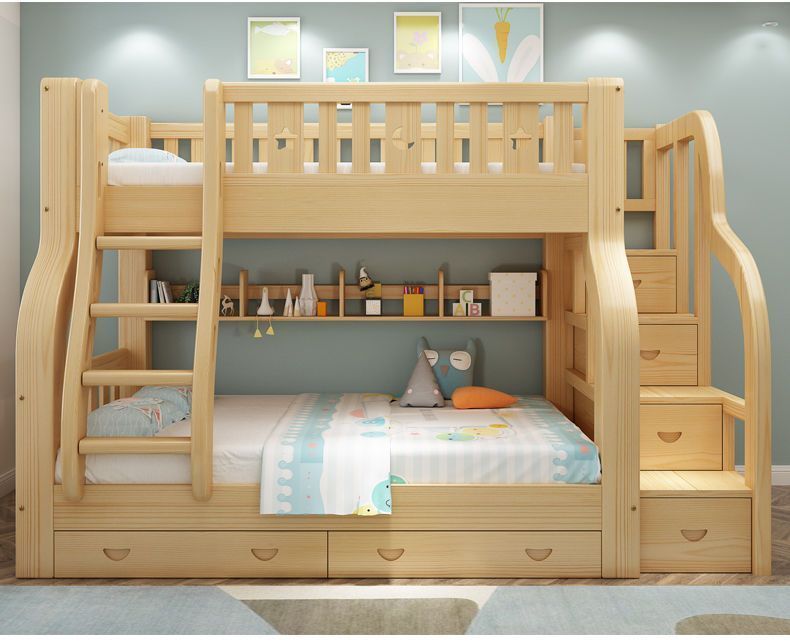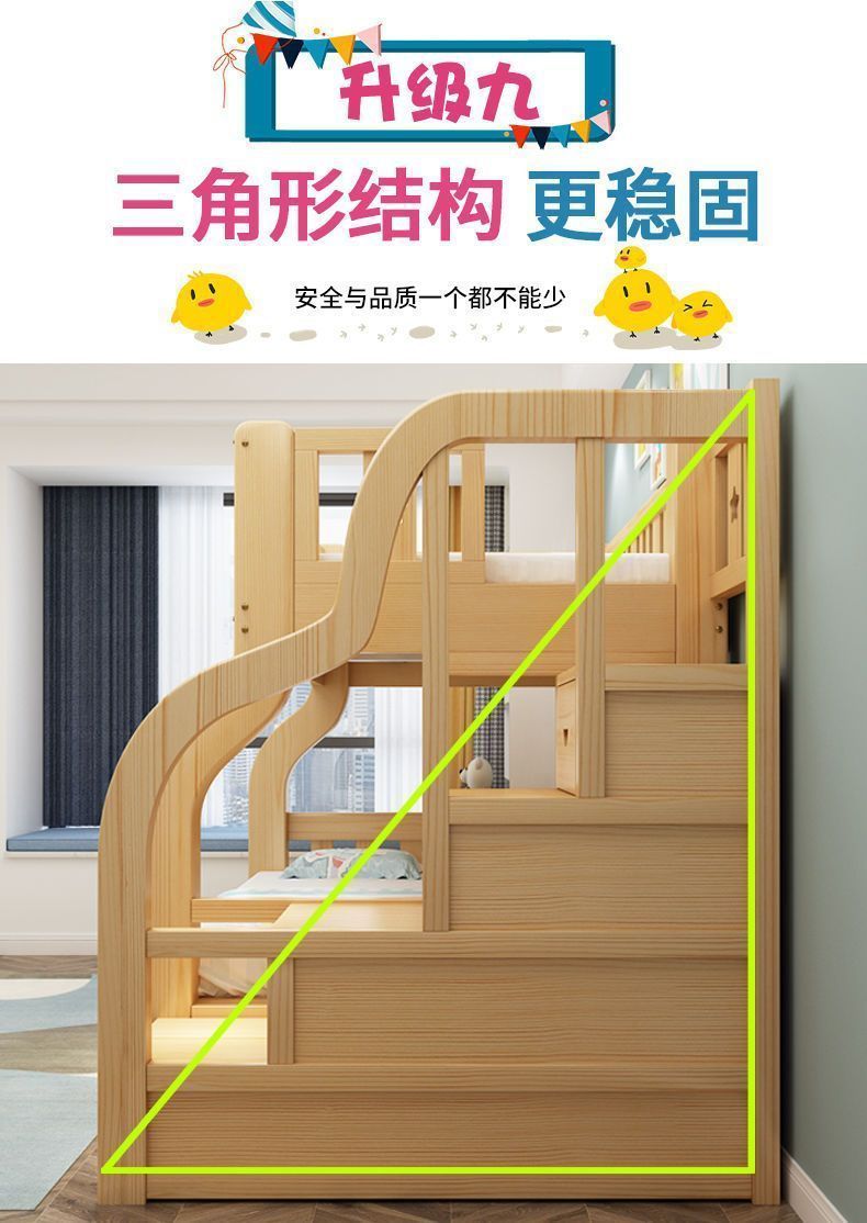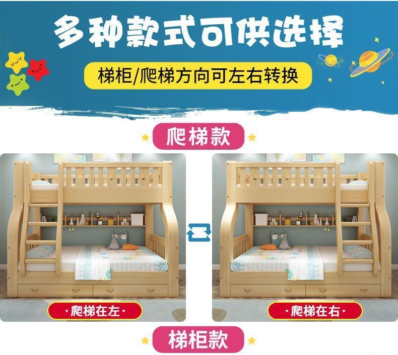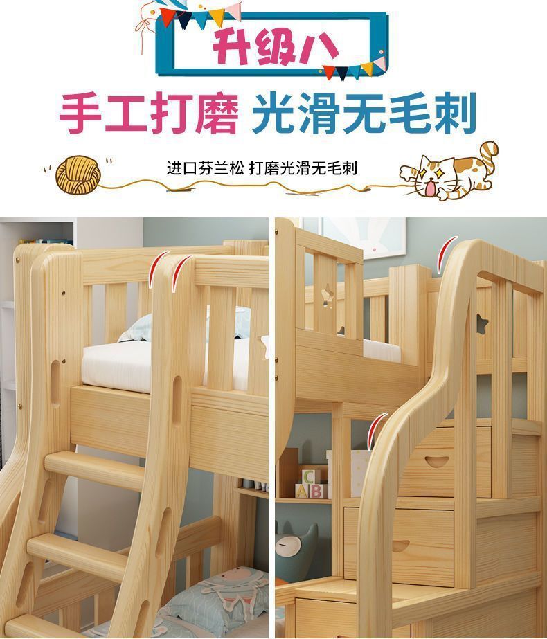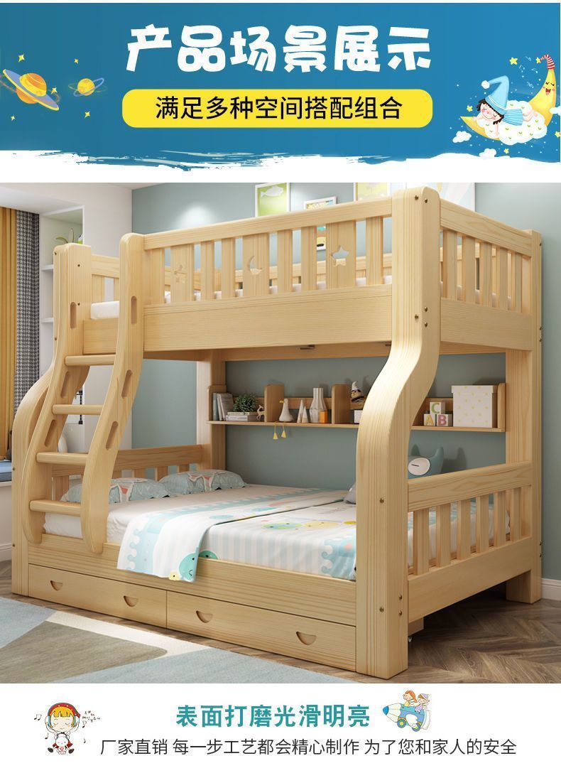 모든 단단한 나무 침대 및 이층 침대 어린이 침대 2 층 벙크 침대 성인 높은 낮은 침대 다기능 조합 어린이-어머니 침대