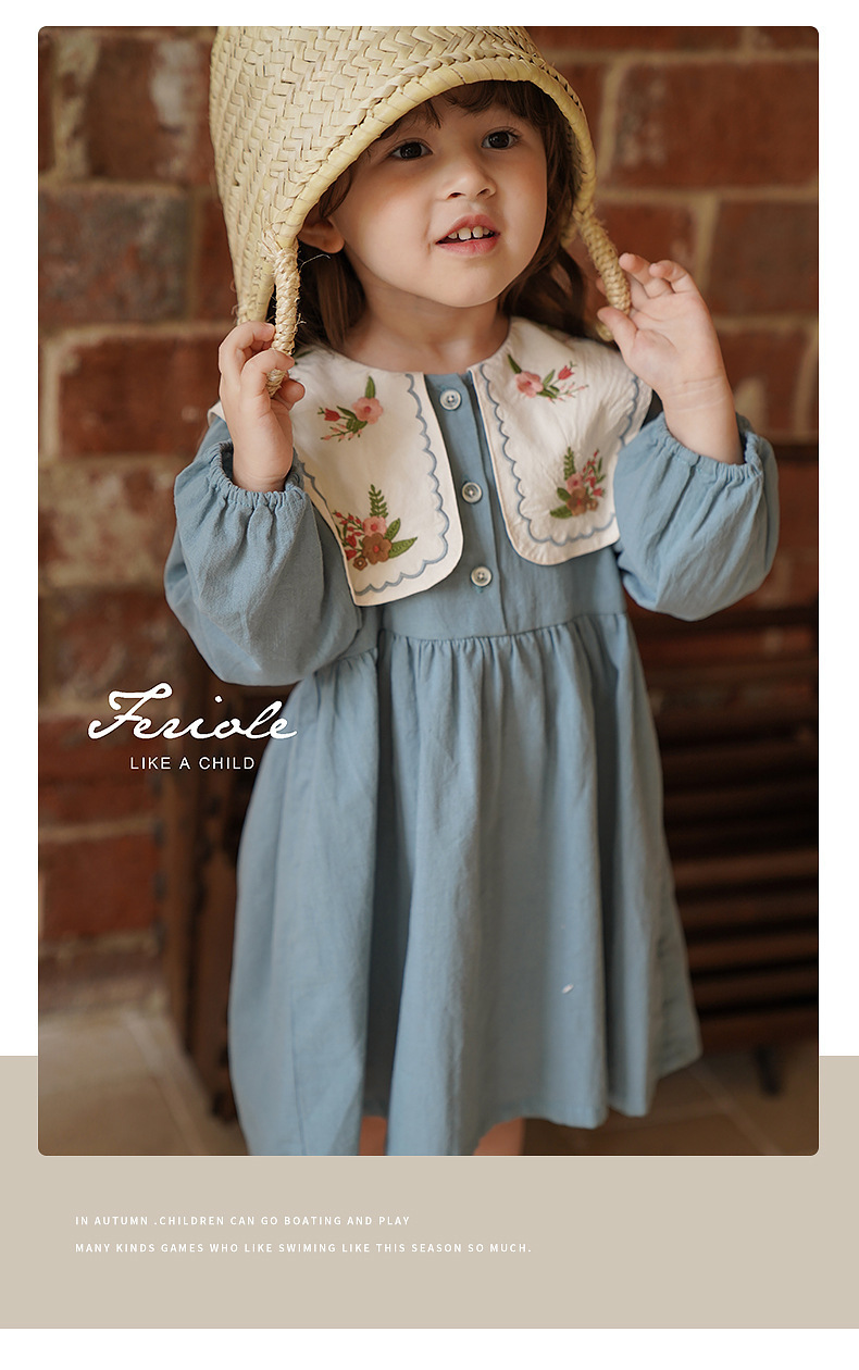 2025 봄 소녀 한국 스타일 새로운 대형 옷깃 자수 달콤한 우아한 모리 스타일 한국 스타일 원피스 33070