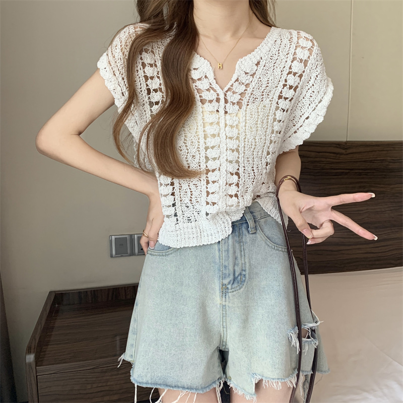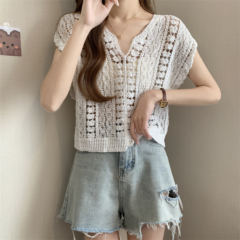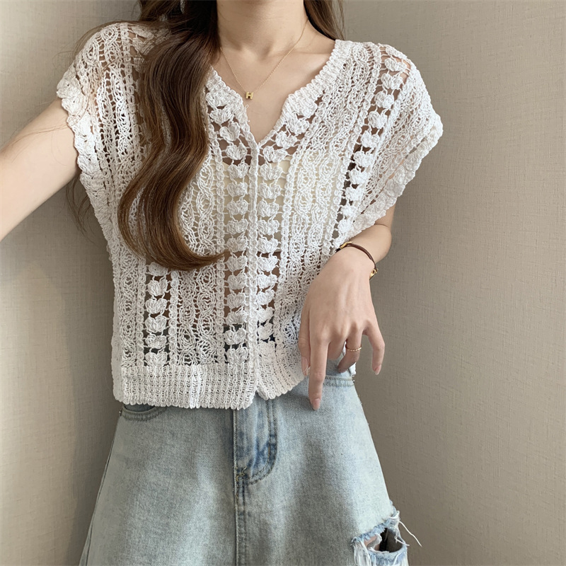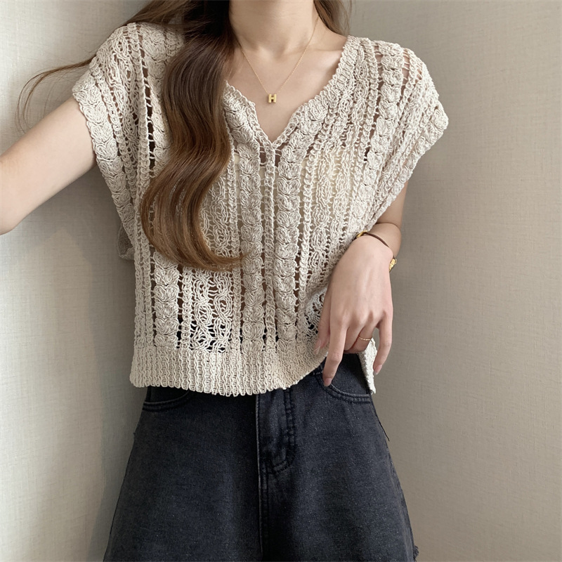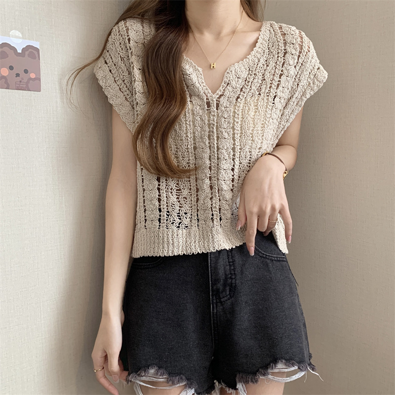 여성용 여름 신상 레트로 스타일 풀오버 후크플라워 레이스 아웃웨어 조끼 민소매 니트 탑스토어 가기