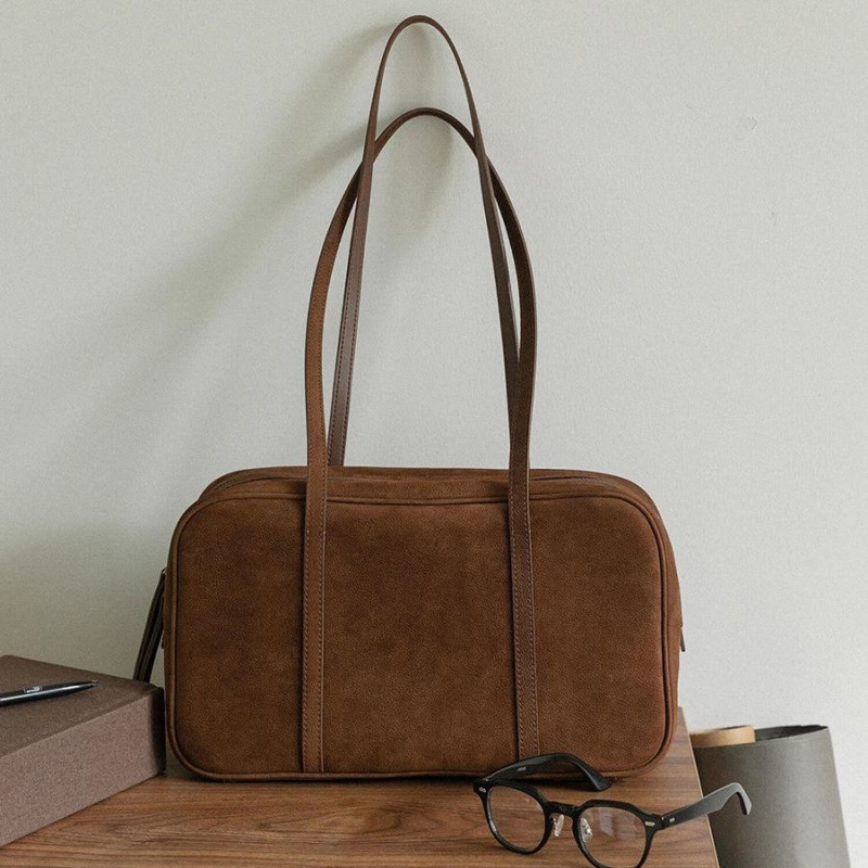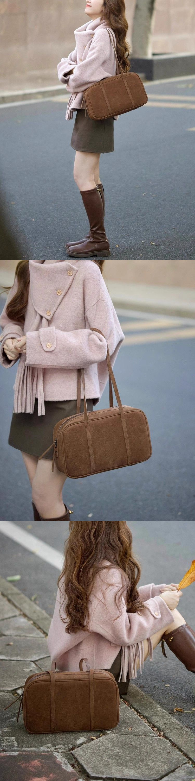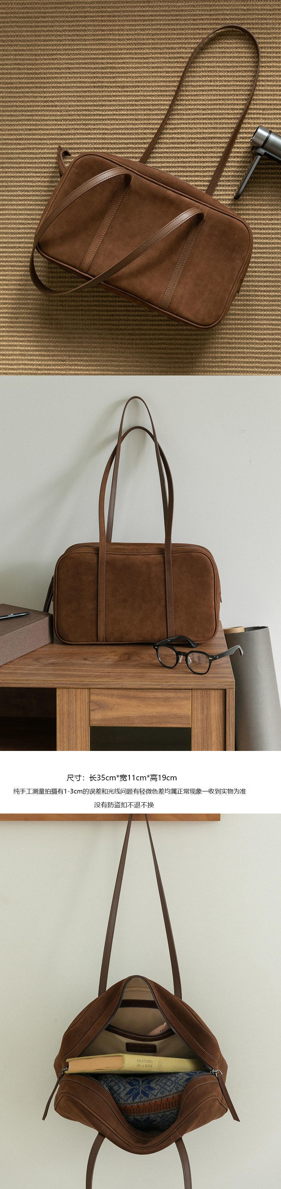 한 어깨 겨드랑이 레트로 보스턴 가방 여성의 2024 년 새로운 가을과 겨울 대용량 통근 휴대용 볼링 가방스토어 가기