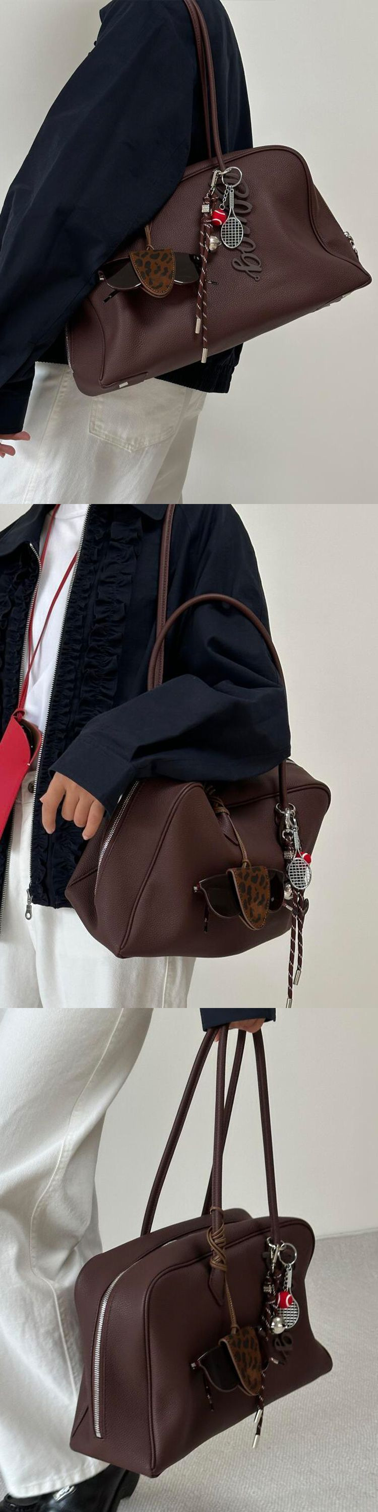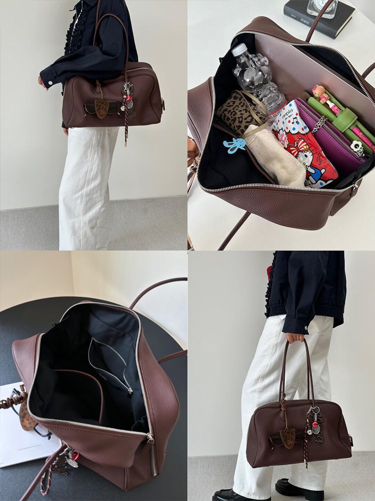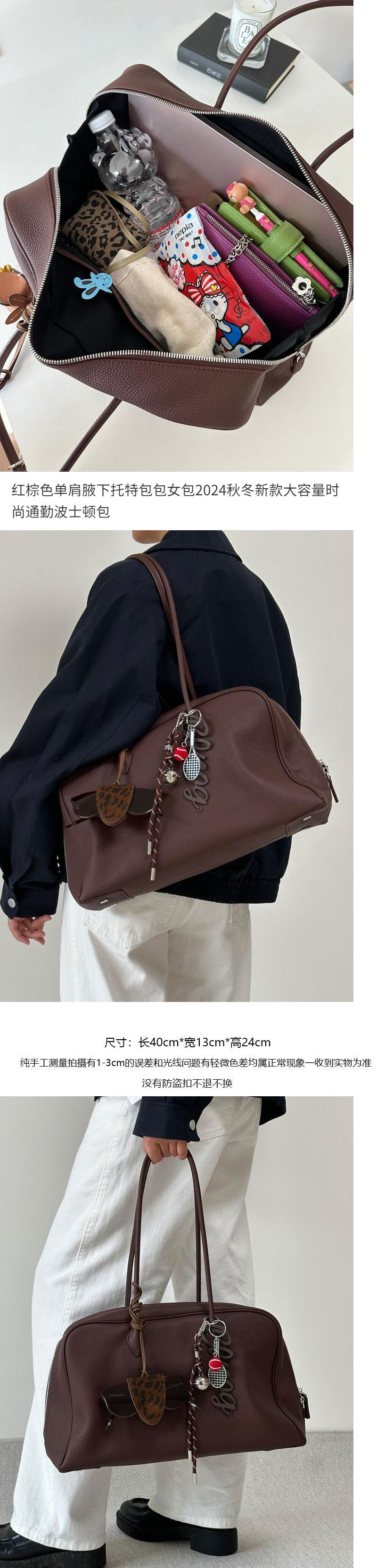 레드 다크 브라운 어깨 언더 암 토트 백 여성 가방 2025 가을과 겨울 새로운 대용량 패션 통근 보스턴 가방스토어 가기