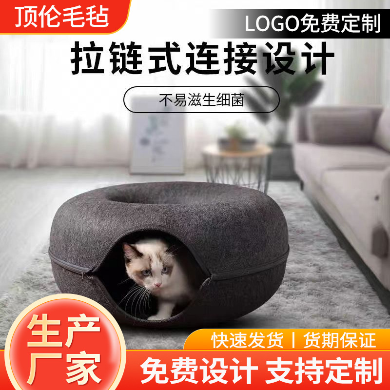 맞춤형 펠트 고양이 둥지, 도넛 구멍 터널 장난감 둥지, 고양이 둥지, 사계절 애완동물 둥지, 반밀폐형 고양이 둥지