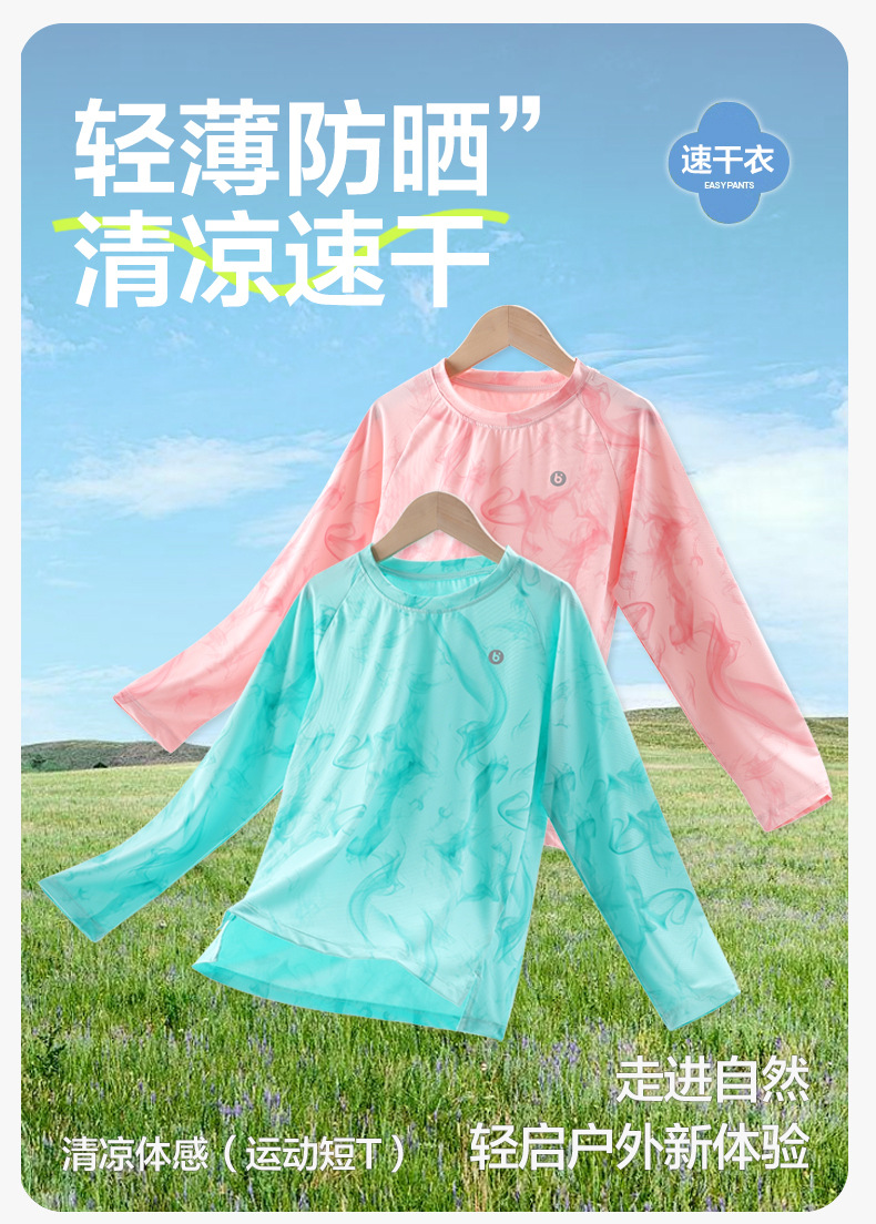 어린이용 긴팔 티셔츠 얇은 모델 2026년 신상 남아용 자외선 차단복 속건성 여아용 상의 스포츠 베이스레이어 여름용스토어 가기