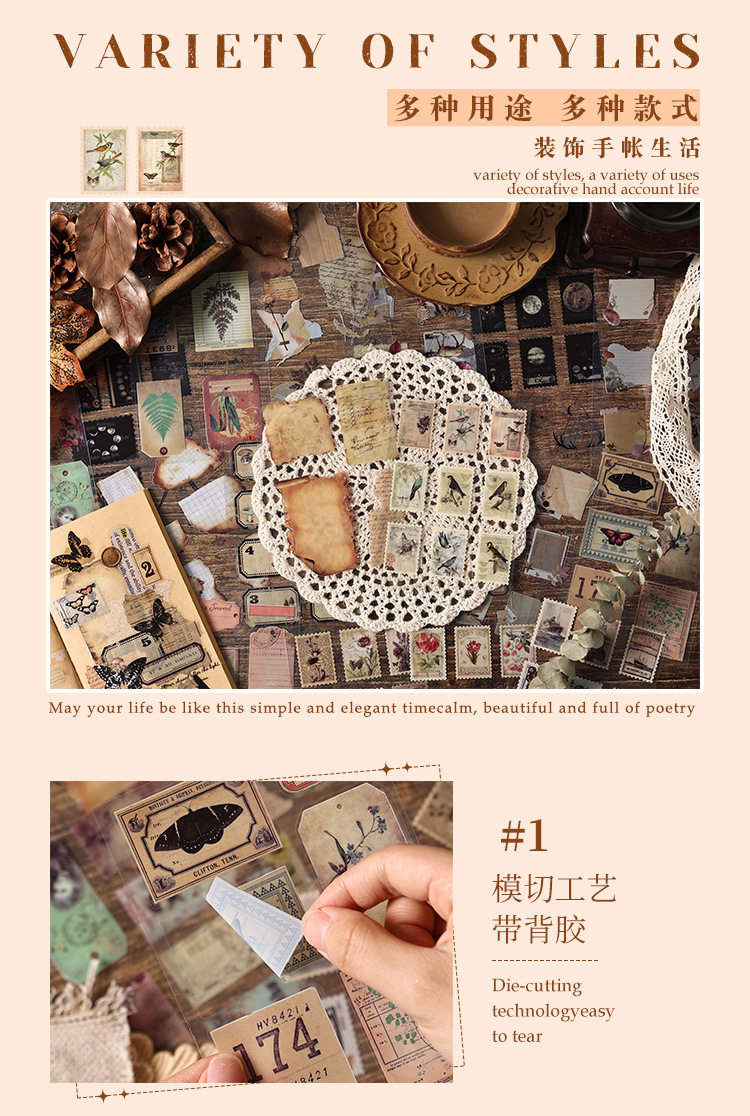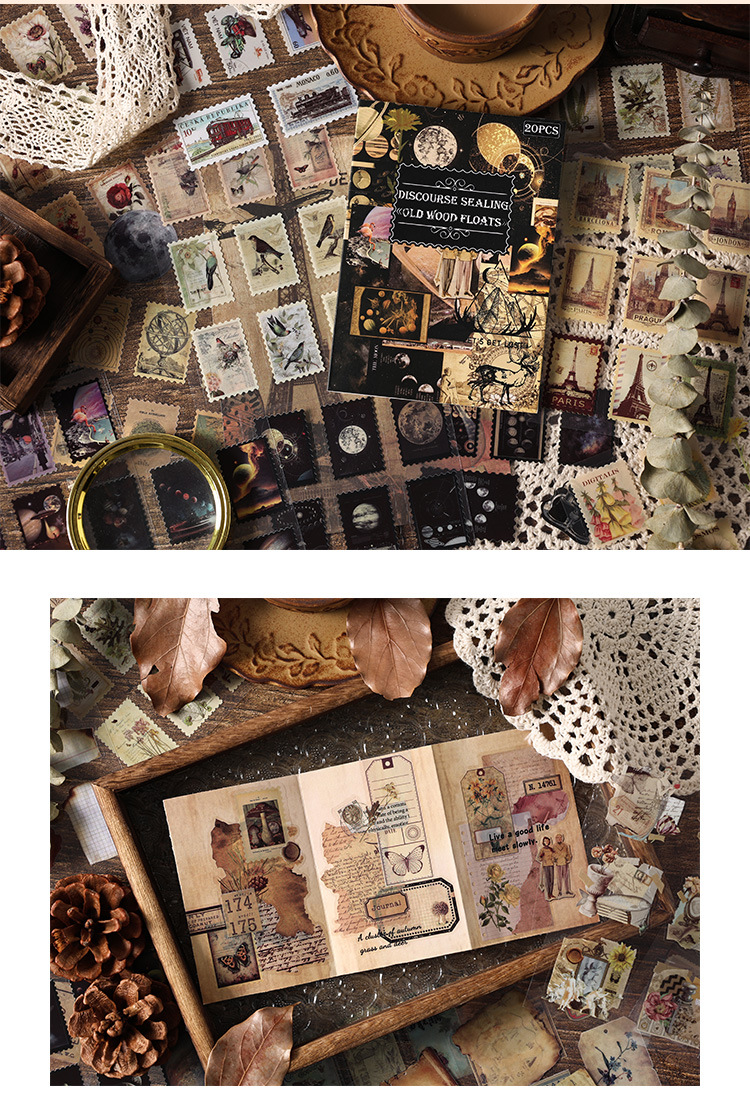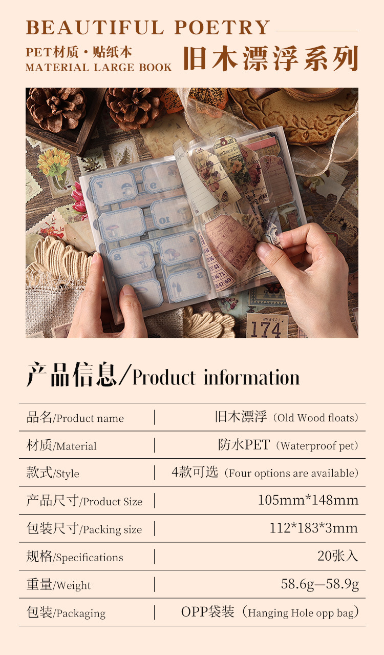Yuezhen 오래된 나무 부동 컷 필름 스티커 손 계정 스티커 책 국경 방수 애완 동물 손 계정 소재 창조적 인 스티커 책스토어 가기