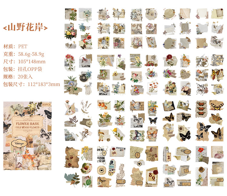 Yuezhen 오래된 나무 부동 컷 필름 스티커 손 계정 스티커 책 국경 방수 애완 동물 손 계정 소재 창조적 인 스티커 책