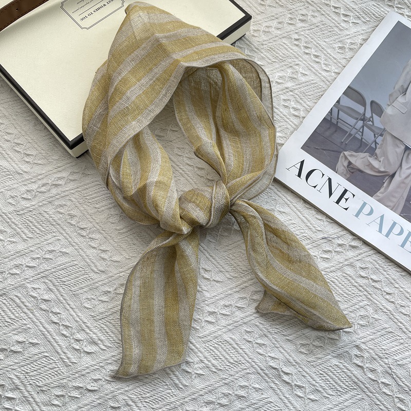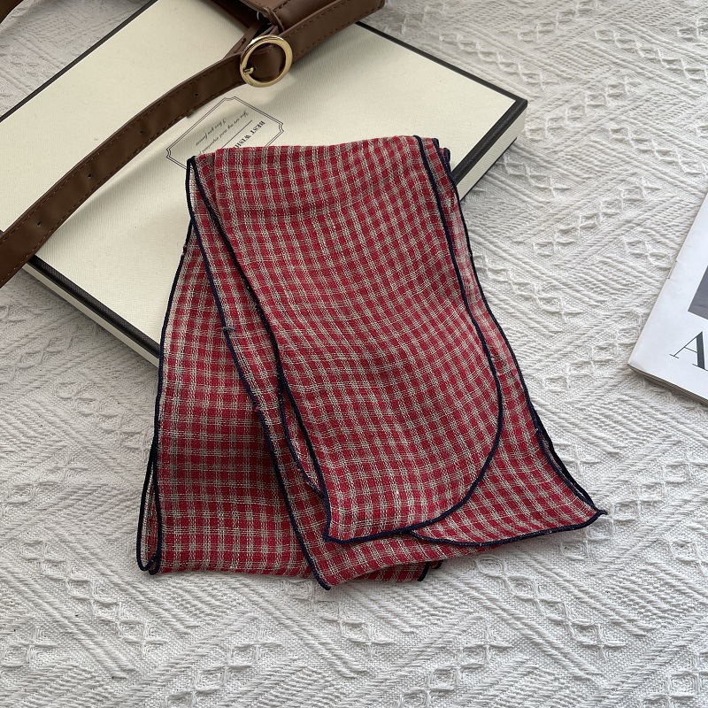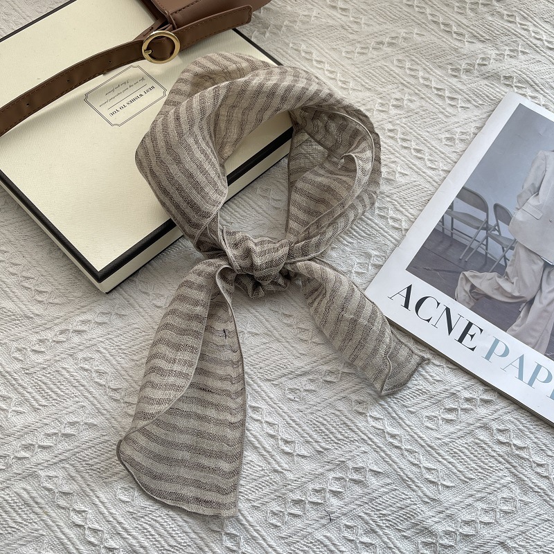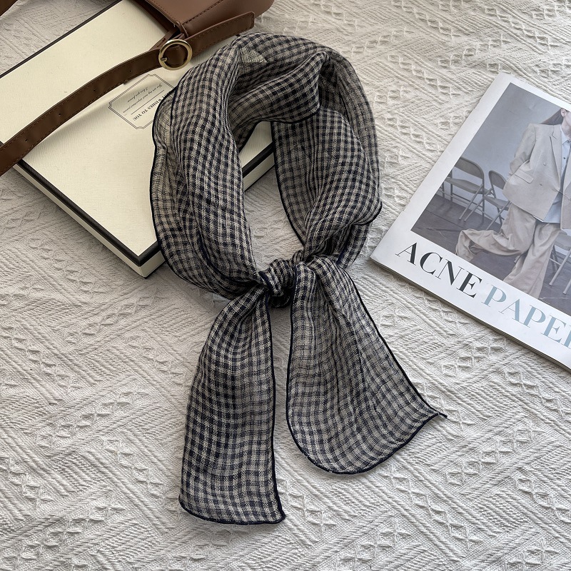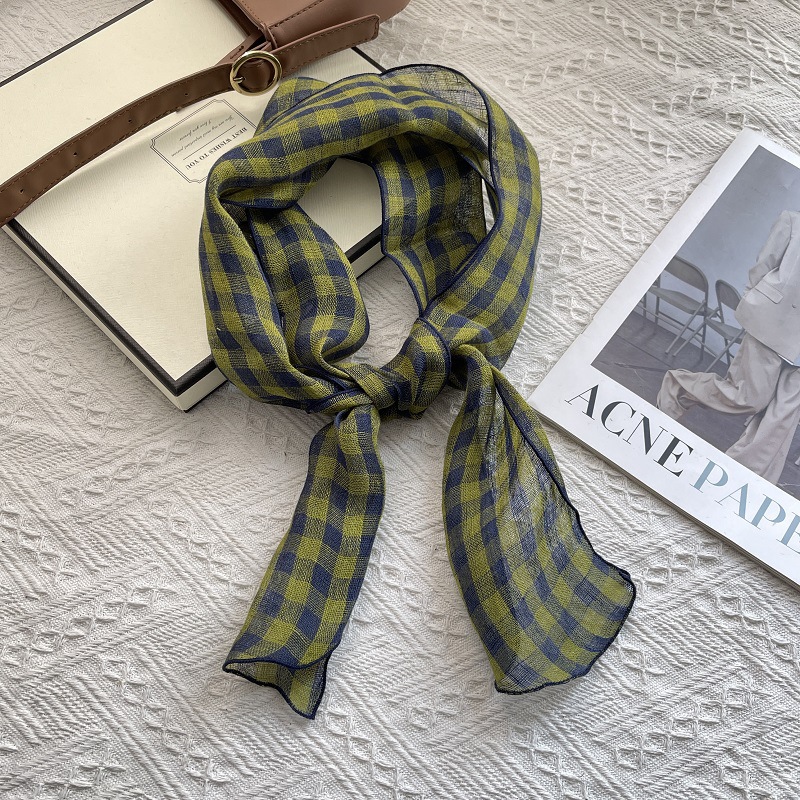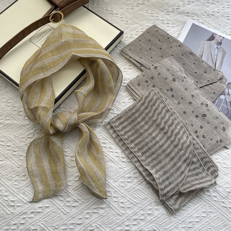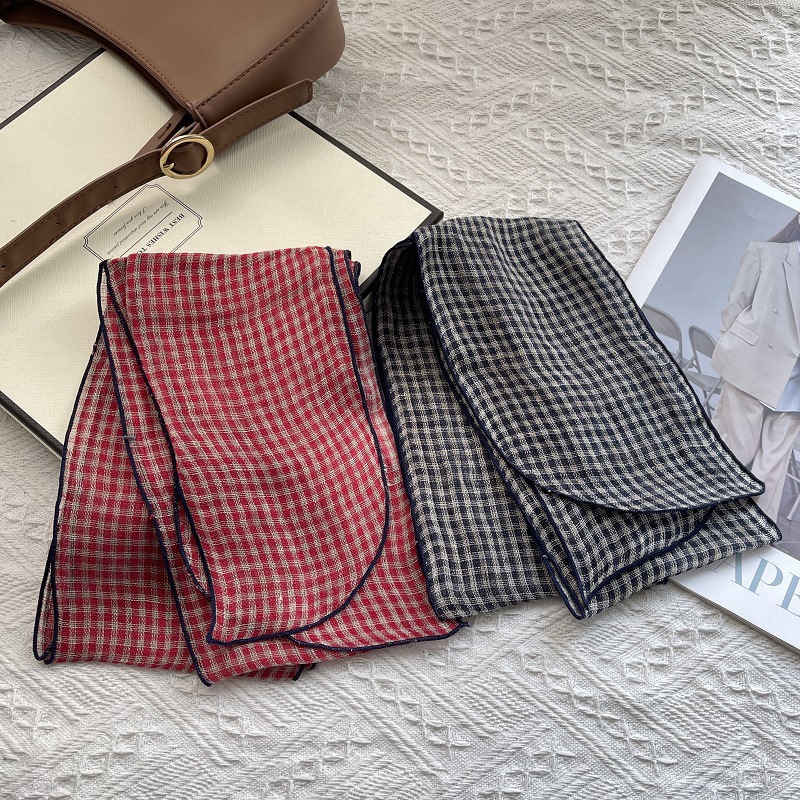 100% 순수 리넨 작은 긴 스카프 예술적 격자 무늬 게으른 캐주얼 작은 스카프 여성 여름 질감 통기성 스카프스토어 가기