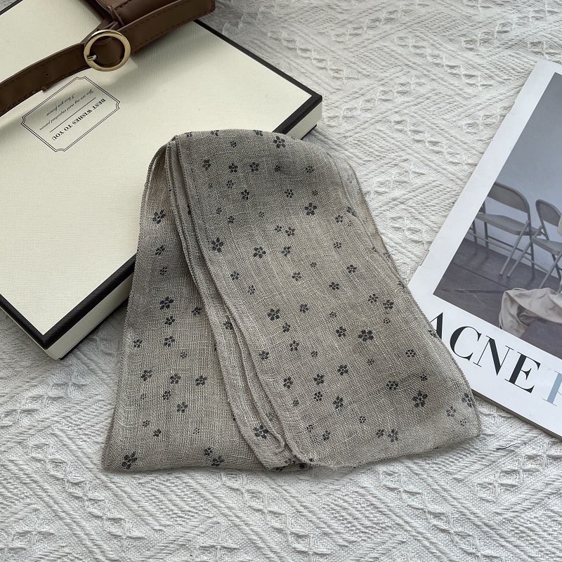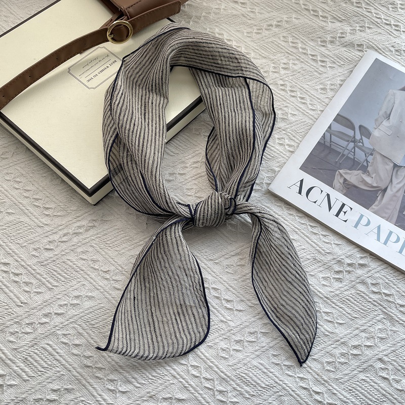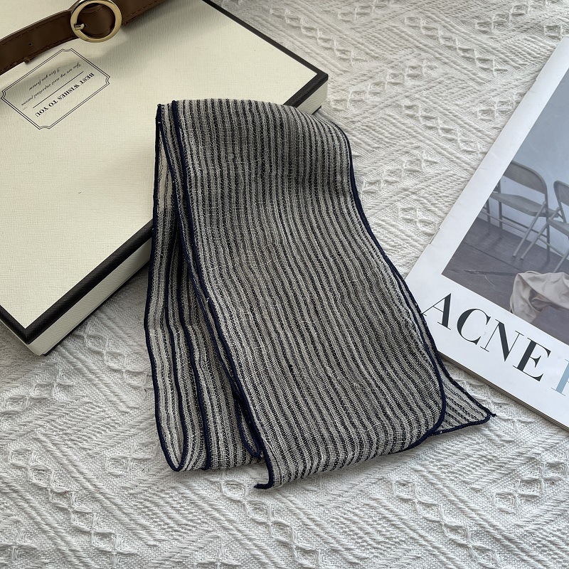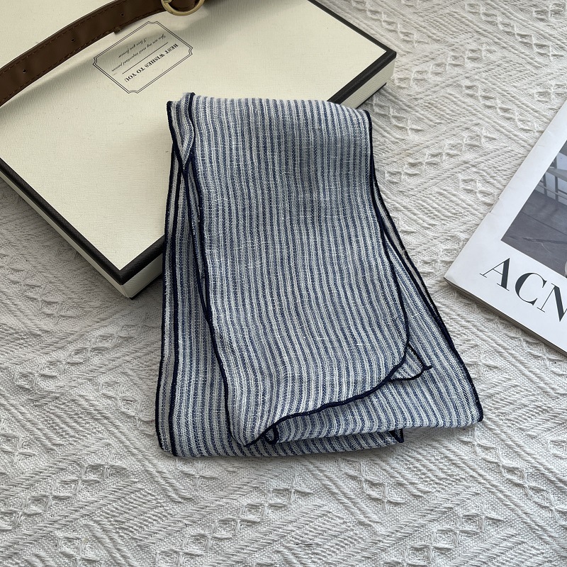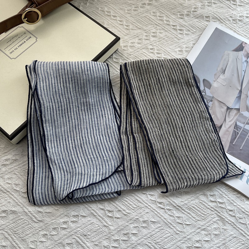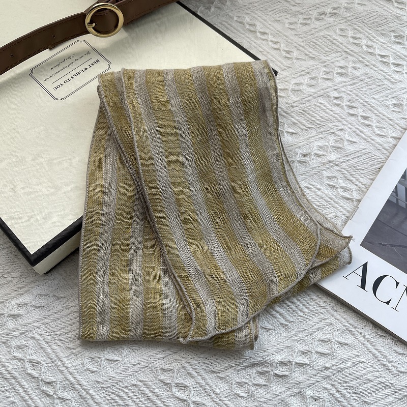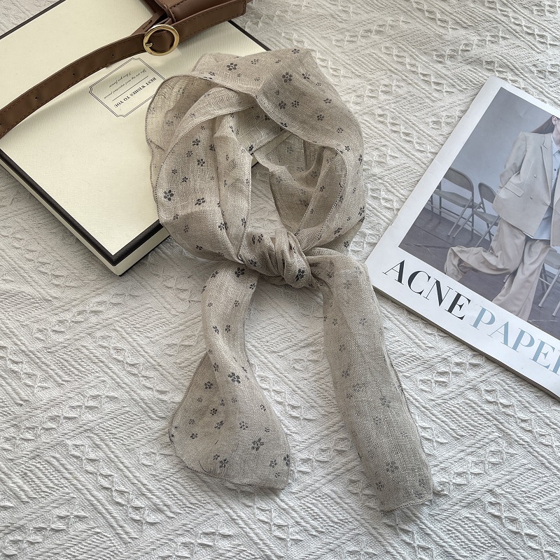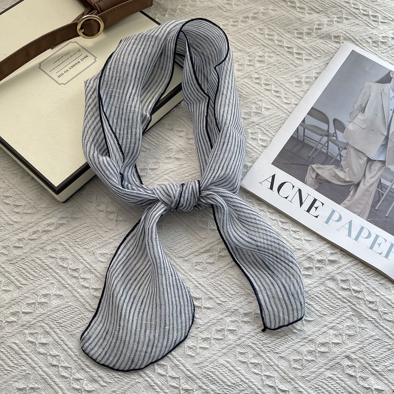 100% 순수 리넨 작은 긴 스카프 예술적 격자 무늬 게으른 캐주얼 작은 스카프 여성 여름 질감 통기성 스카프스토어 가기
