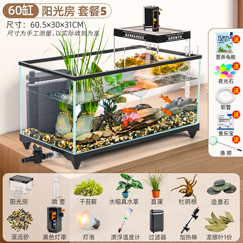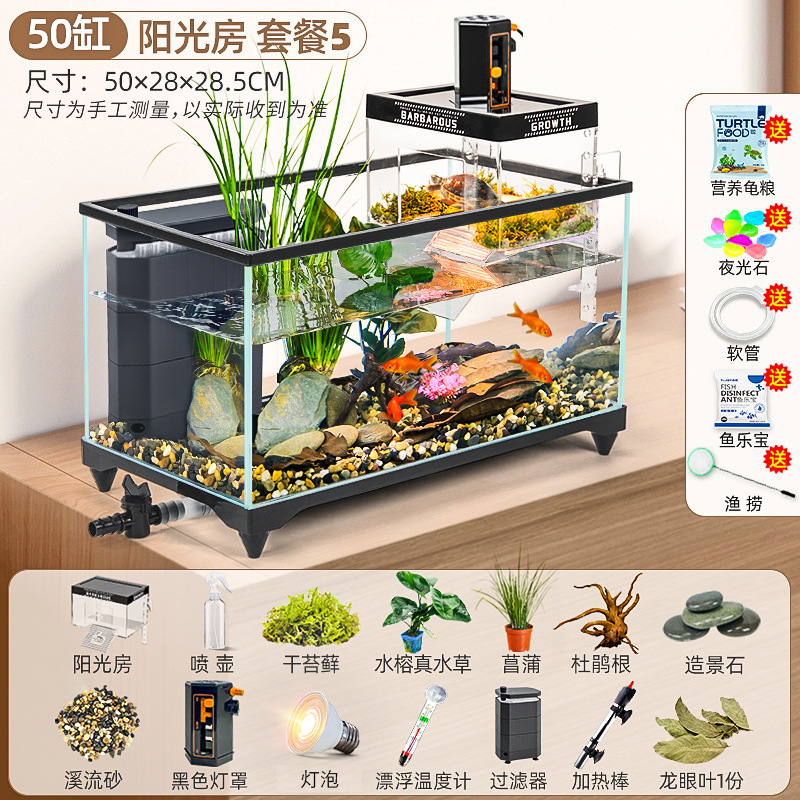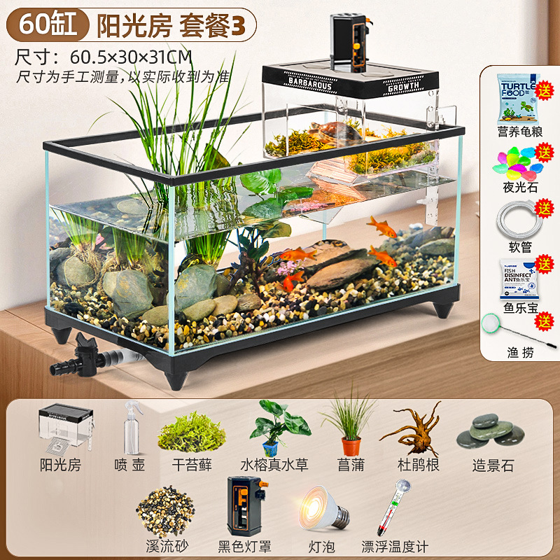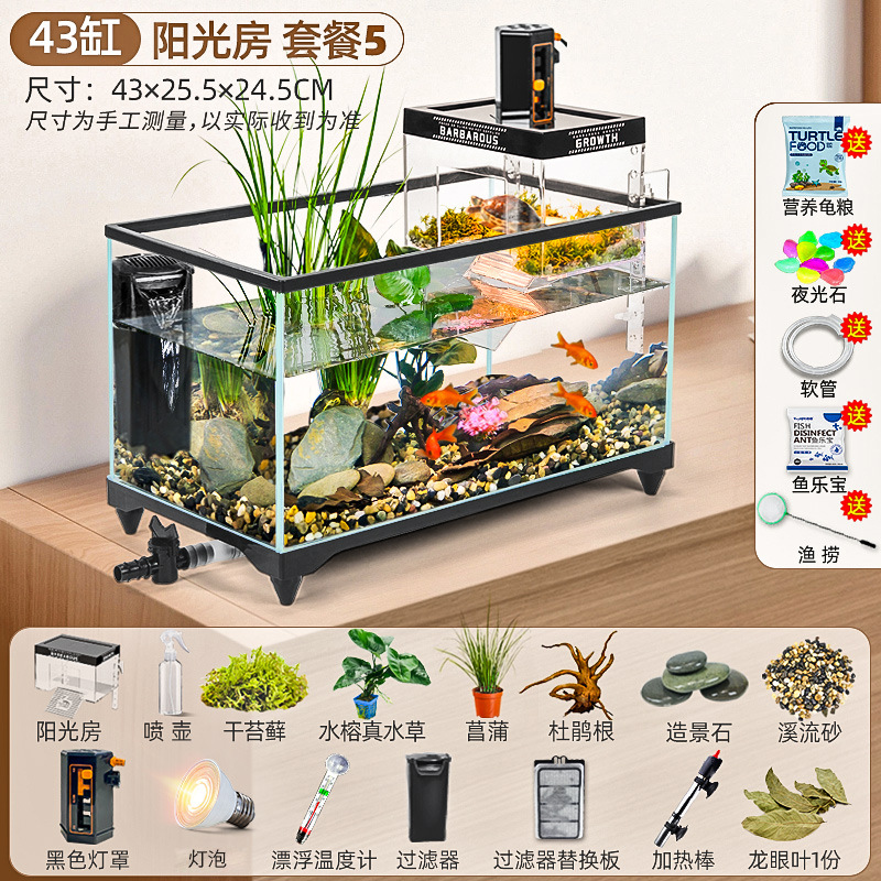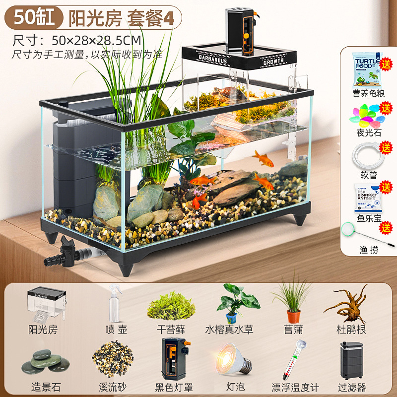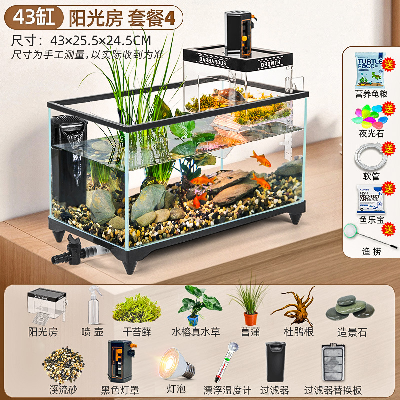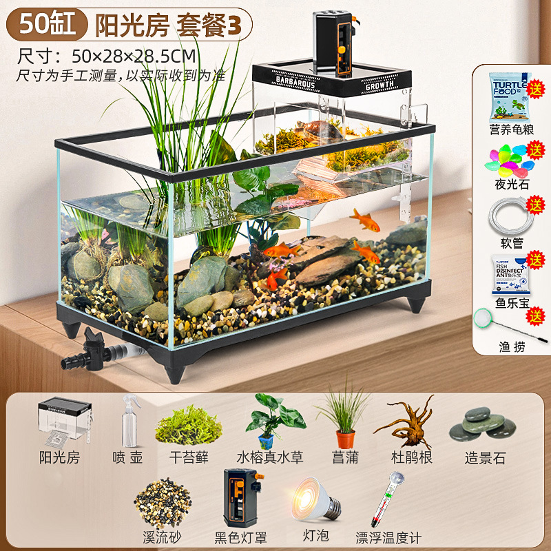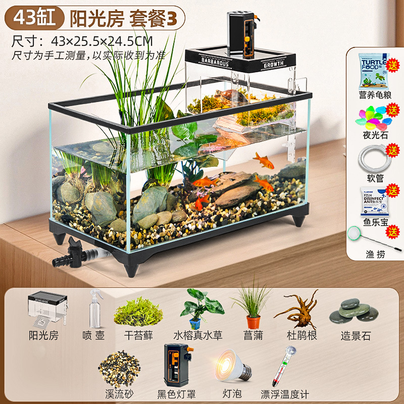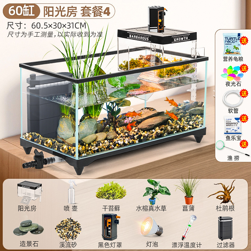 거북이 먹이 탱크 거실 가정용 생태 조경 탱크 데스크탑 작은 빌라 바구니 테이블 새 스타일 브라질 거북이 물고기 탱크스토어 가기