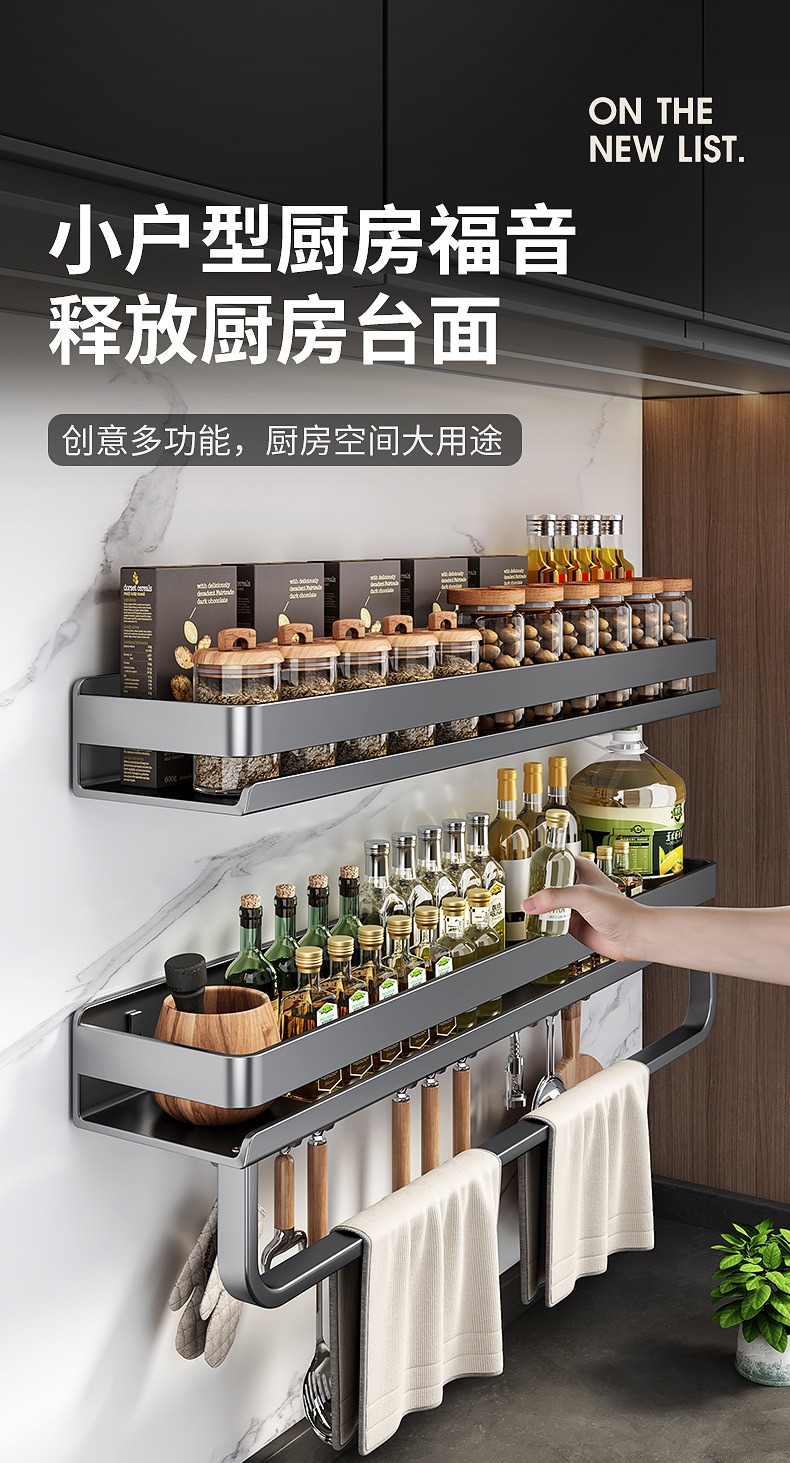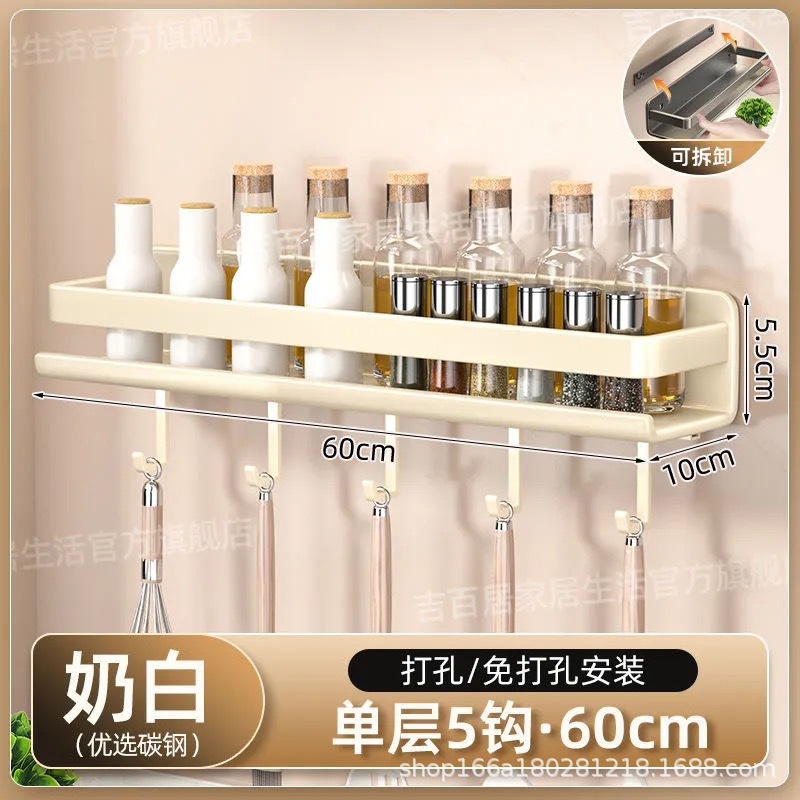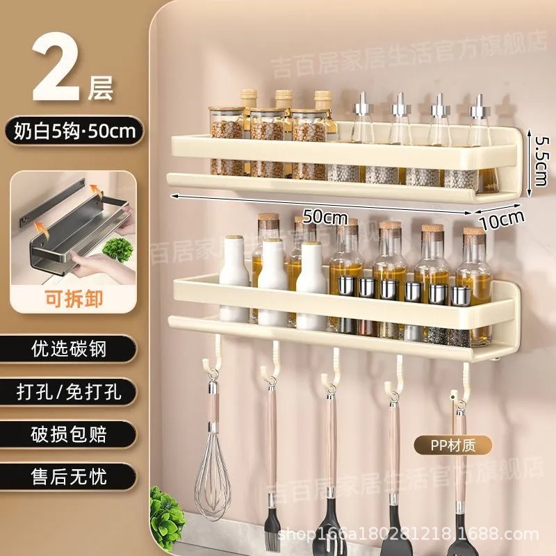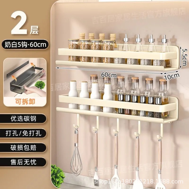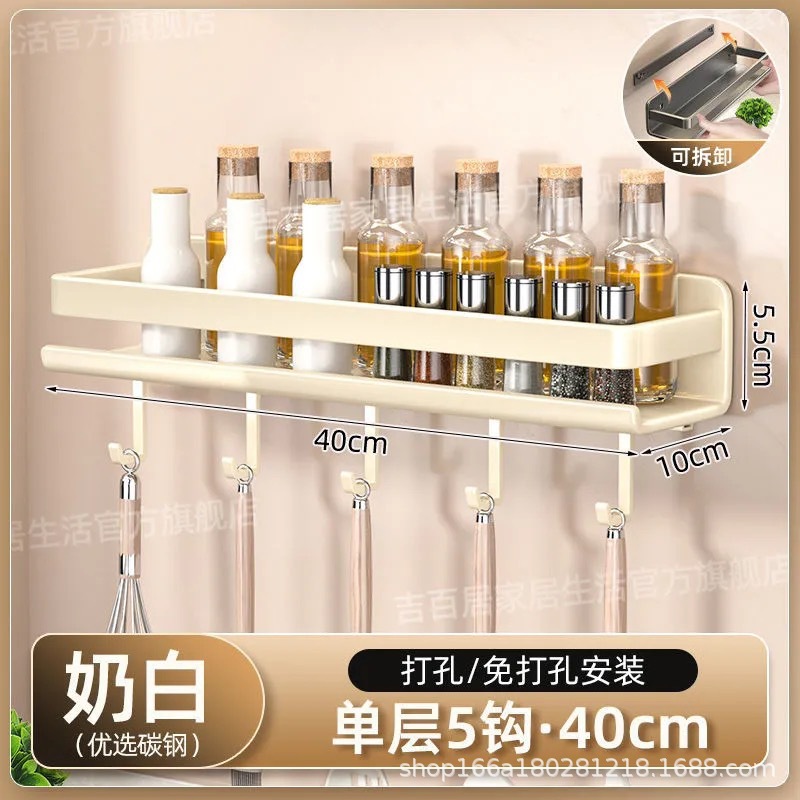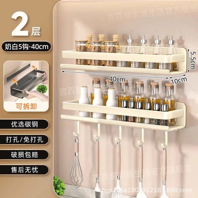 국경 간 펀치없는 주방 랙 가정용 조미료 제품 스토리지 랙 후크가있는 다기능 벽 장착 스토리지 랙