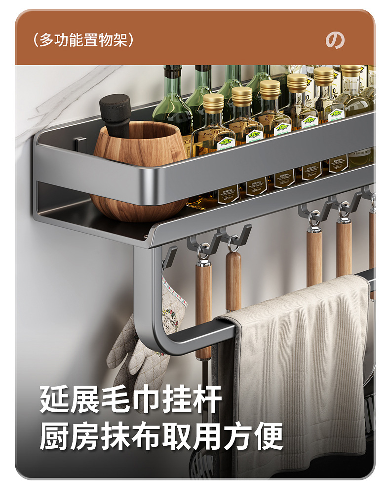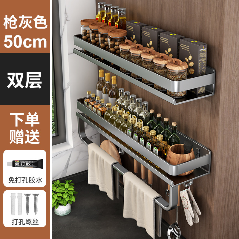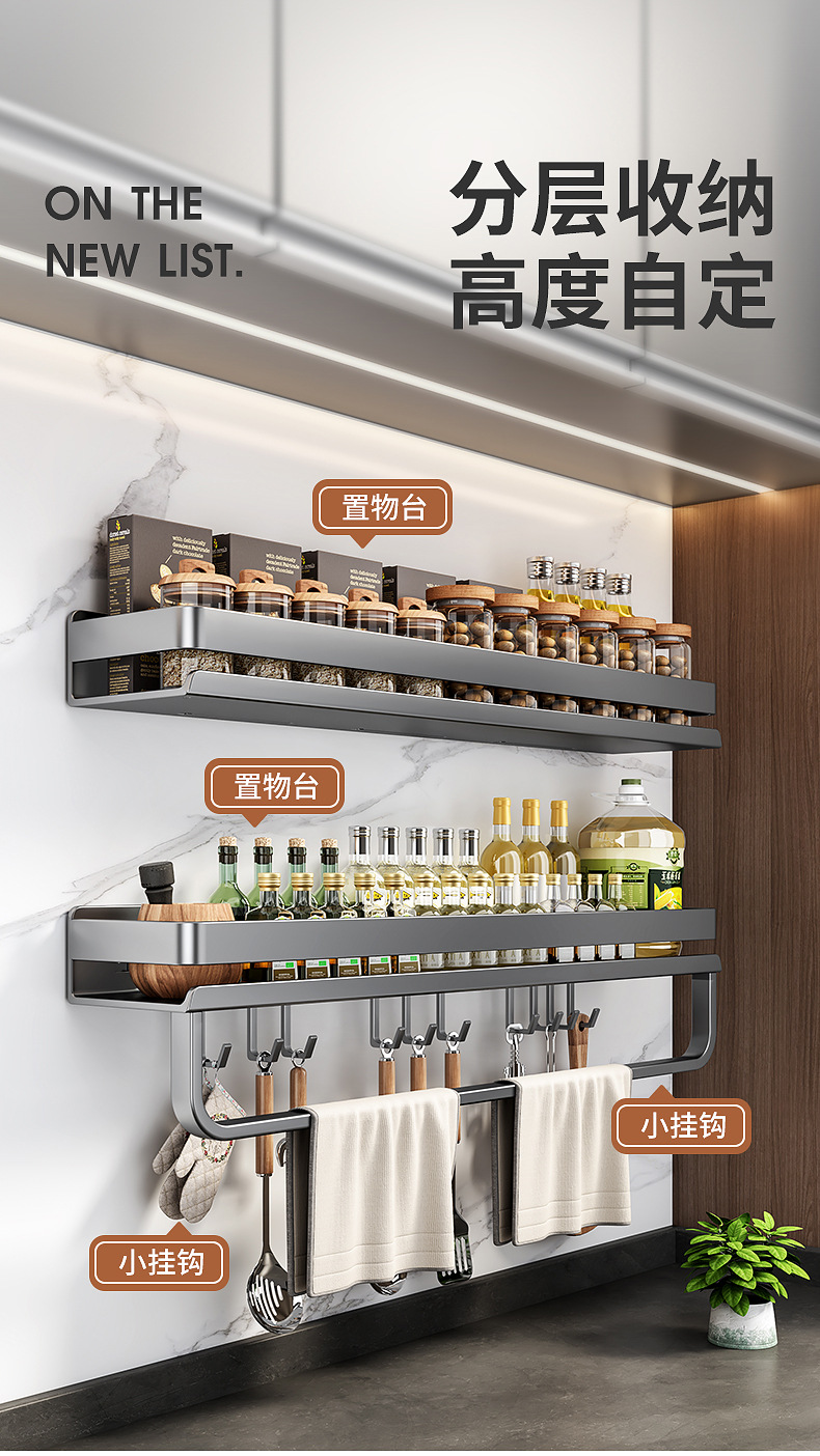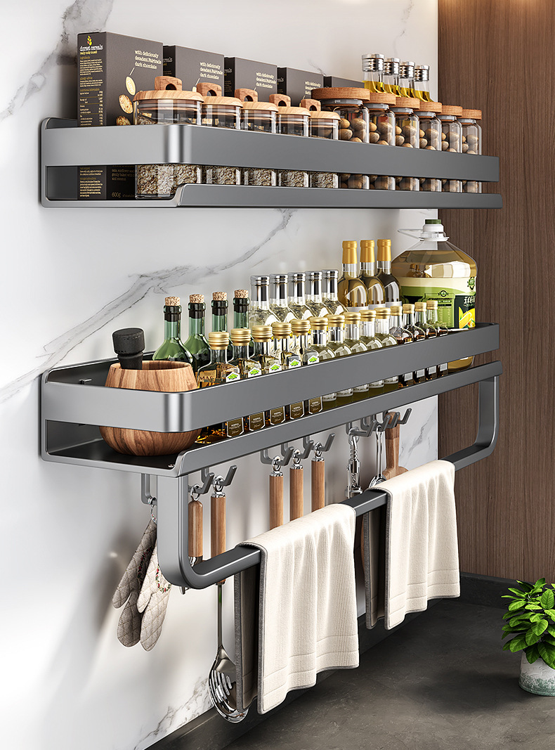 국경 간 펀치없는 주방 랙 가정용 조미료 제품 스토리지 랙 후크가있는 다기능 벽 장착 스토리지 랙