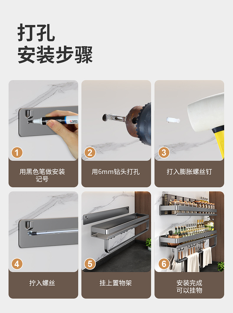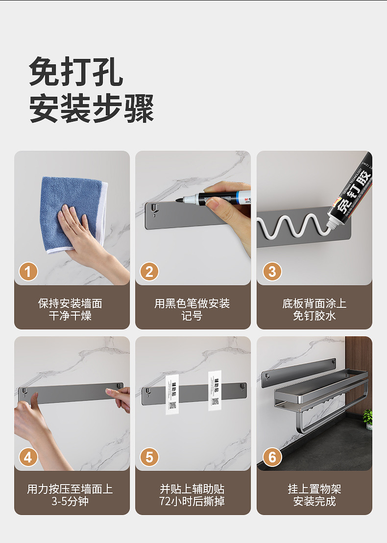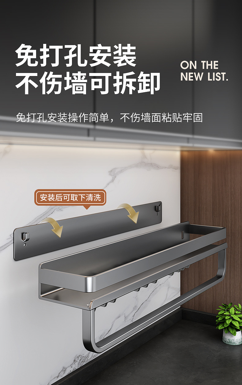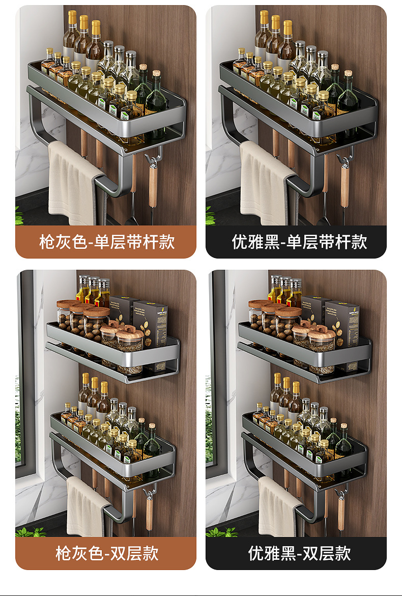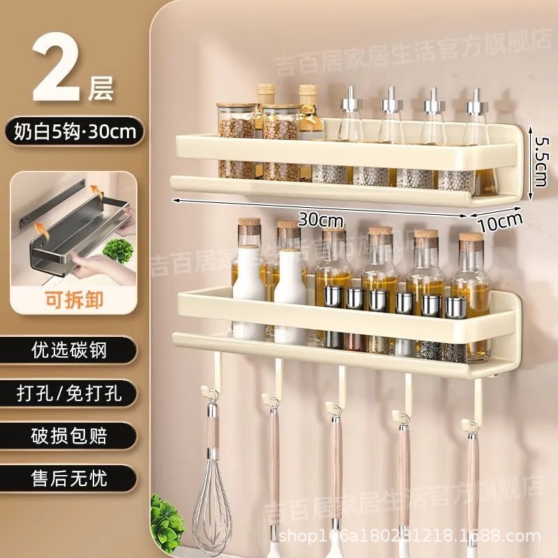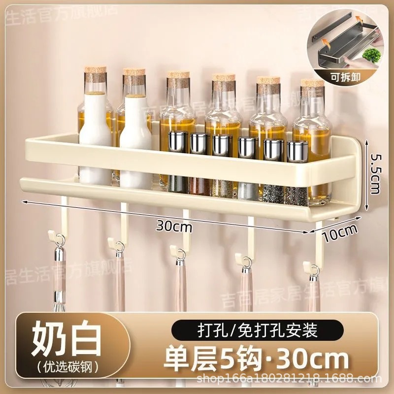 국경 간 펀치없는 주방 랙 가정용 조미료 제품 스토리지 랙 후크가있는 다기능 벽 장착 스토리지 랙스토어 가기