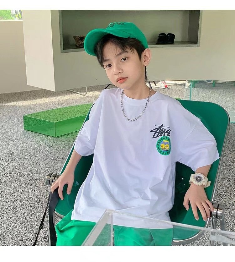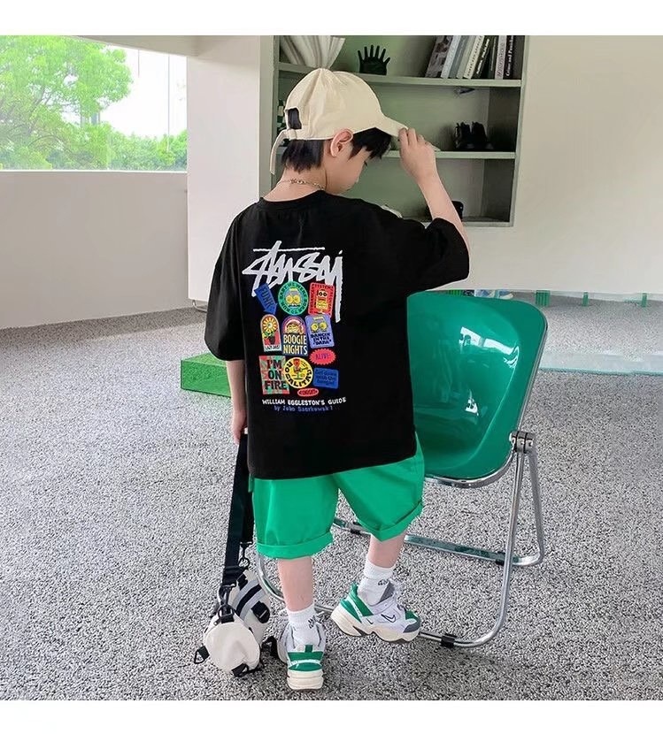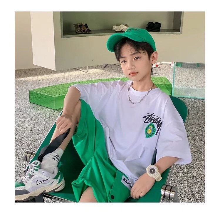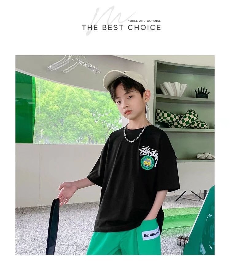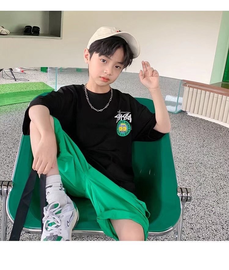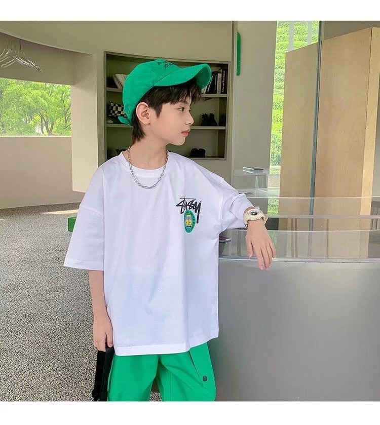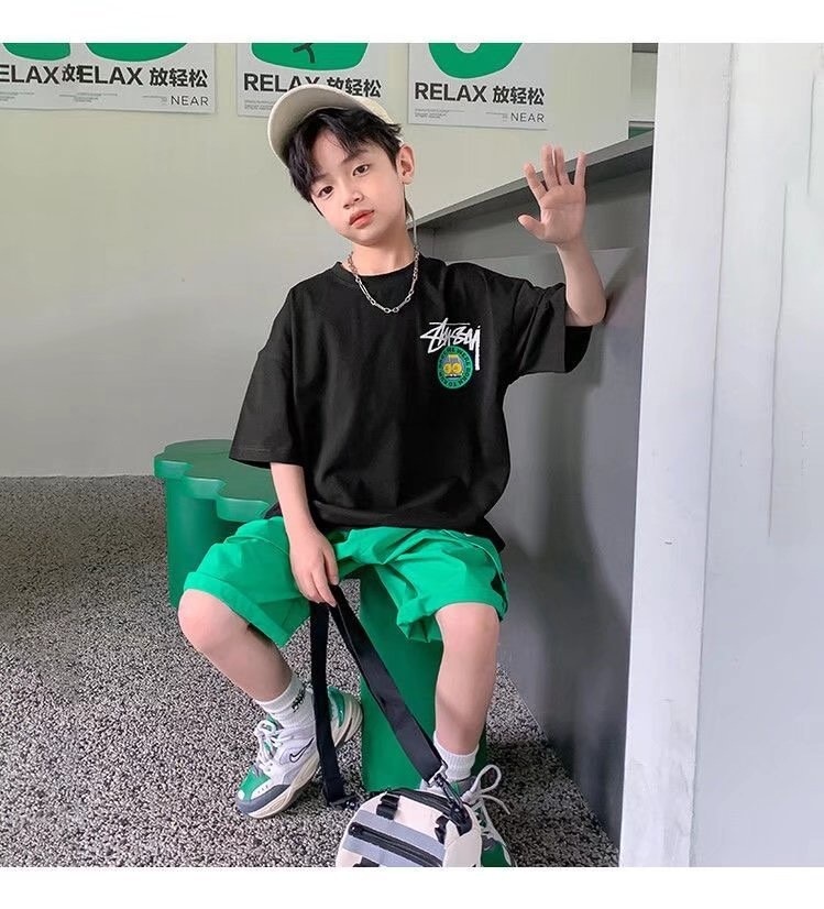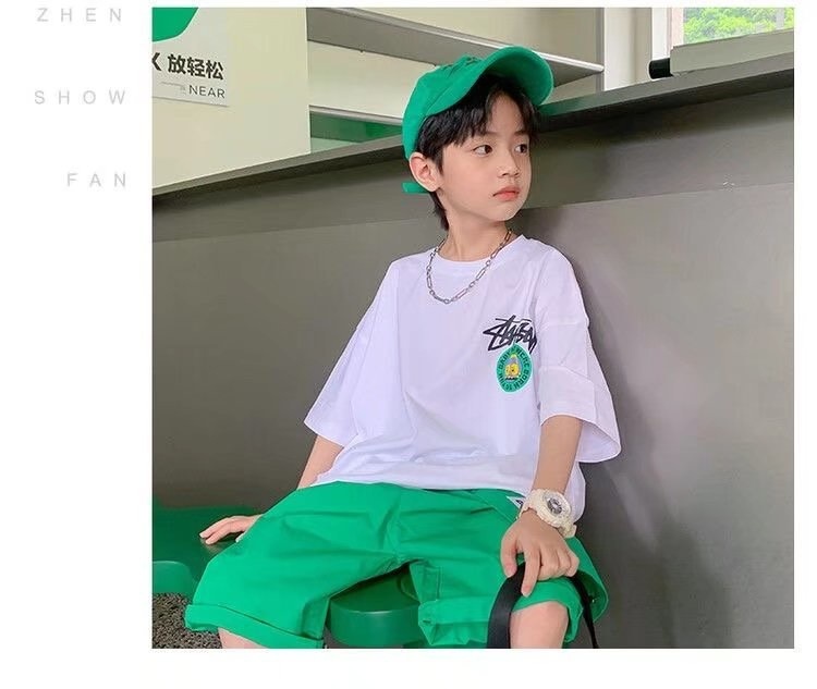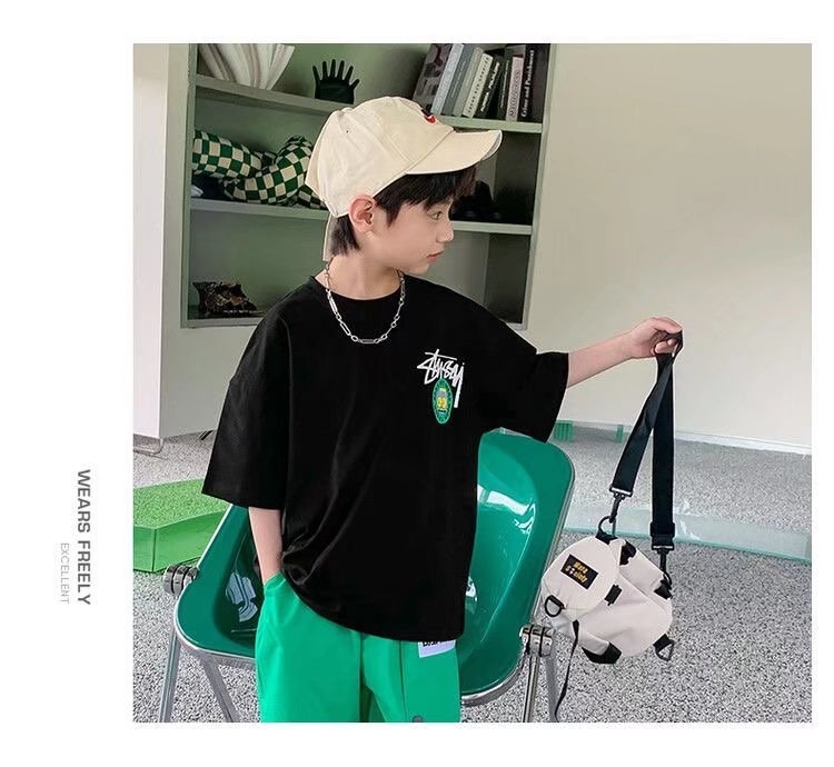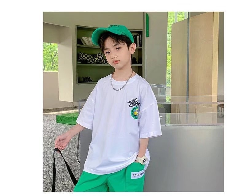 면 아동복 소년 반팔 티셔츠 2023 새로운 아기 여름 느슨한 어린이 서양식 유행 아동복 탑스토어 가기