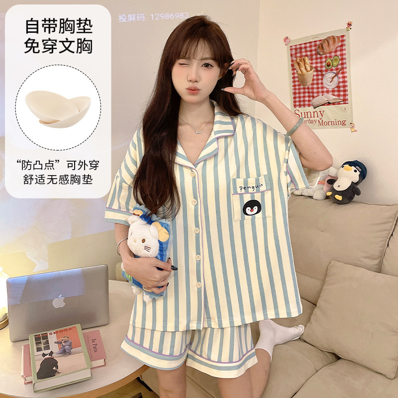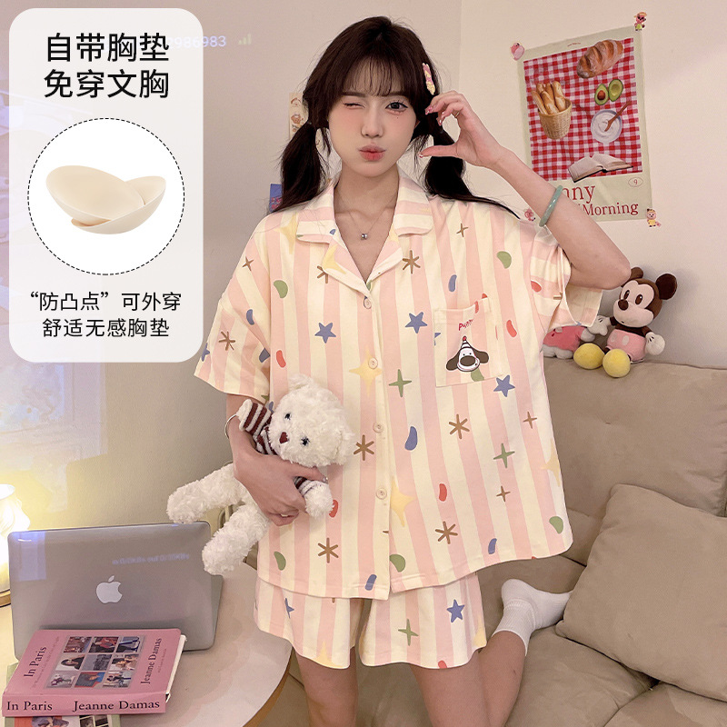 2025 년 여름 새로운 국경 폭발 [가슴 패드 포함] 반바지, 여성 세트 편안한 홈 옷 착용 가능스토어 가기