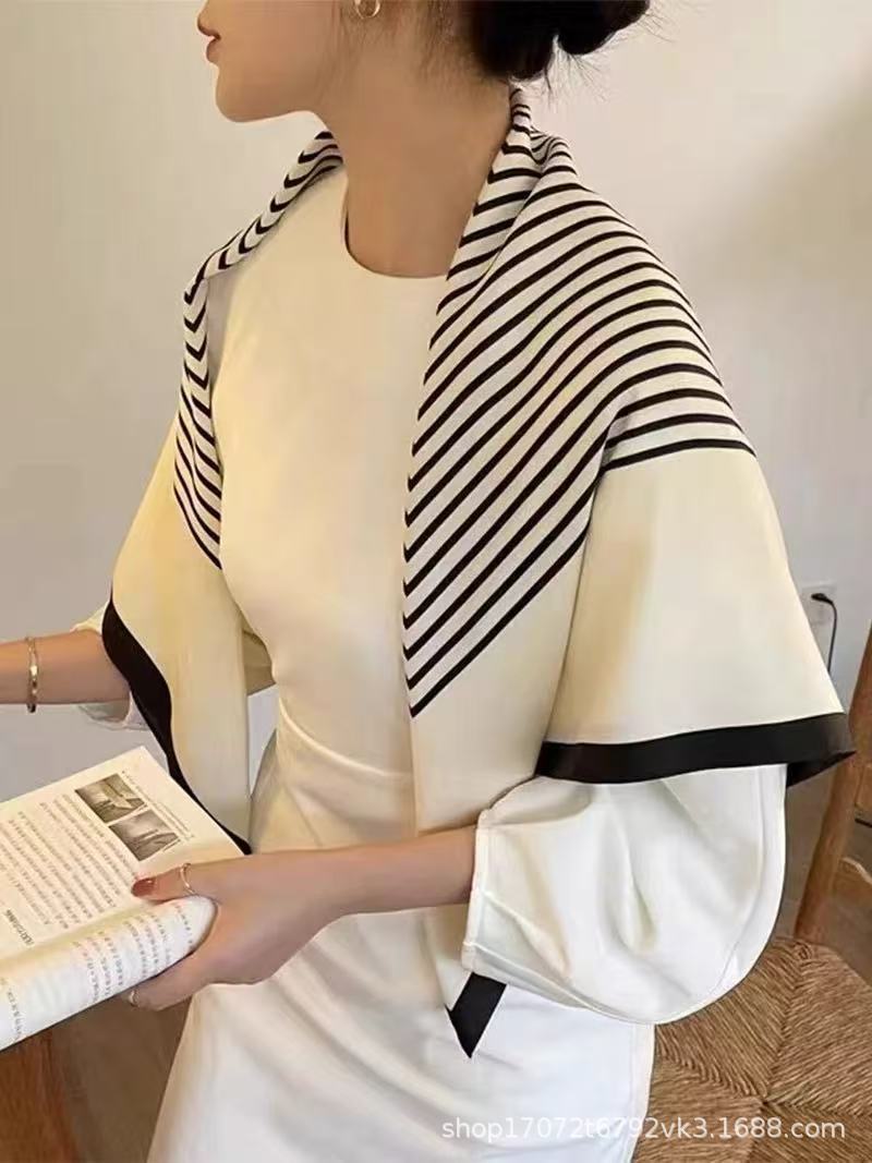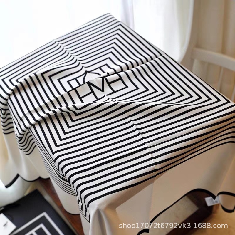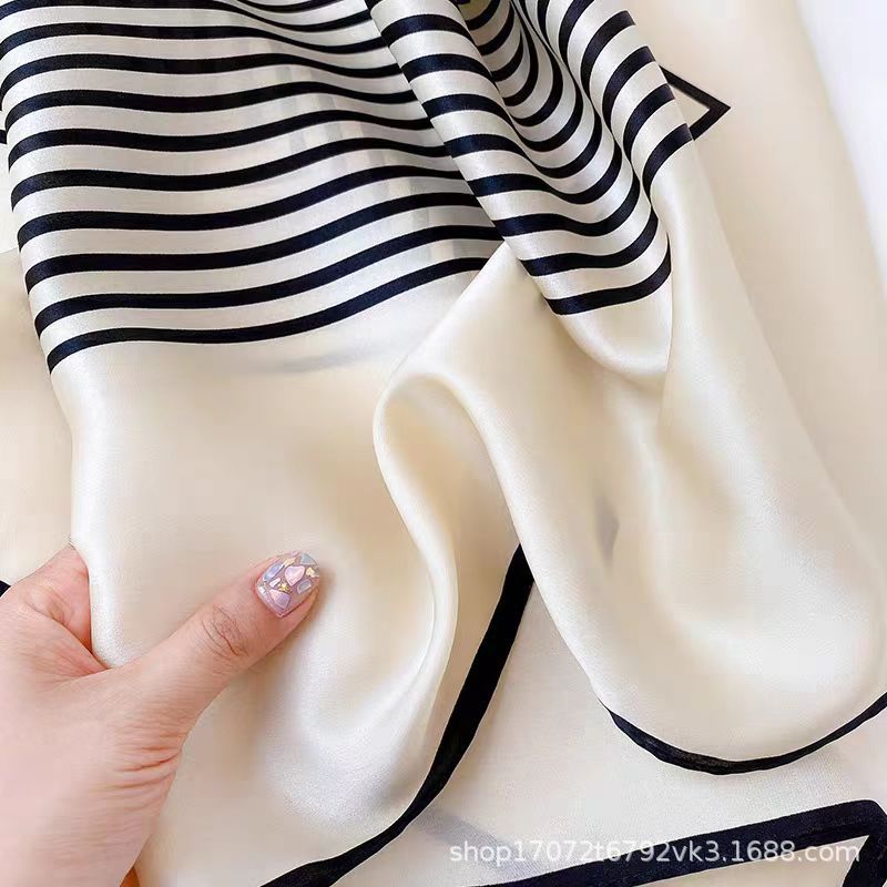 100% 뽕나무 실크 간단한 줄무늬 90 실크 새틴 대형 광장 여성 올 매치 봄 가을과 여름 실크 스카프 목도리