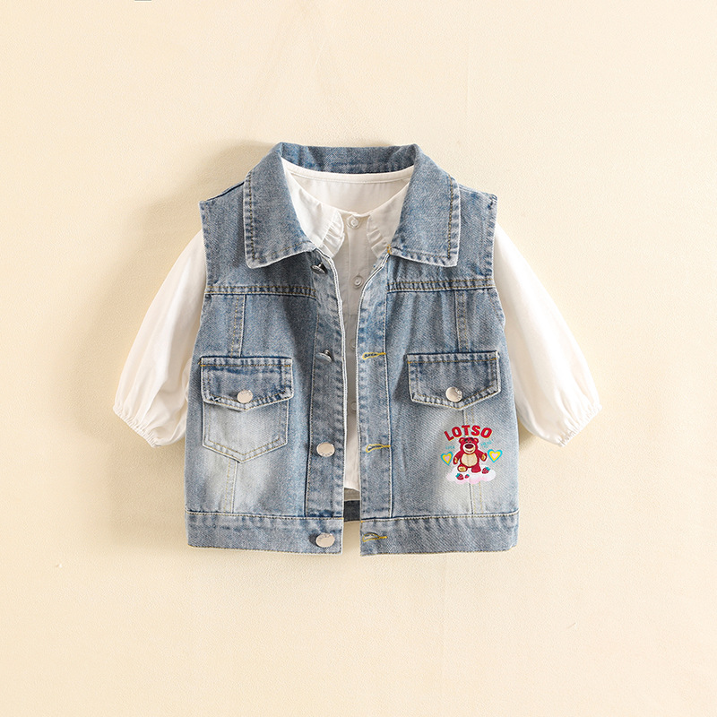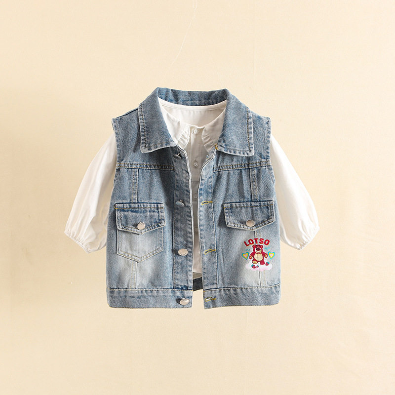 소녀 데님 조끼 봄과 가을 2025 새로운 서양식 캐주얼 어린이 봄 외부 조끼 아기 봄 코트스토어 가기