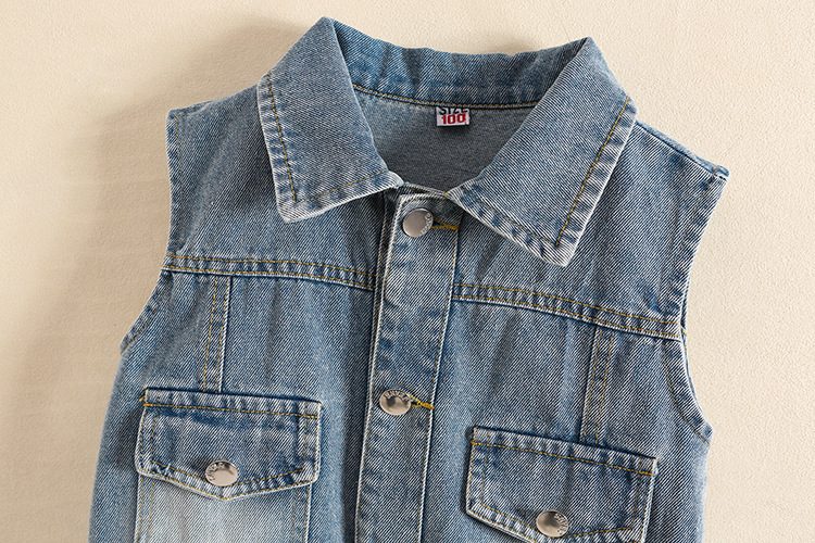 소녀 데님 조끼 봄과 가을 2025 새로운 서양식 캐주얼 어린이 봄 외부 조끼 아기 봄 코트