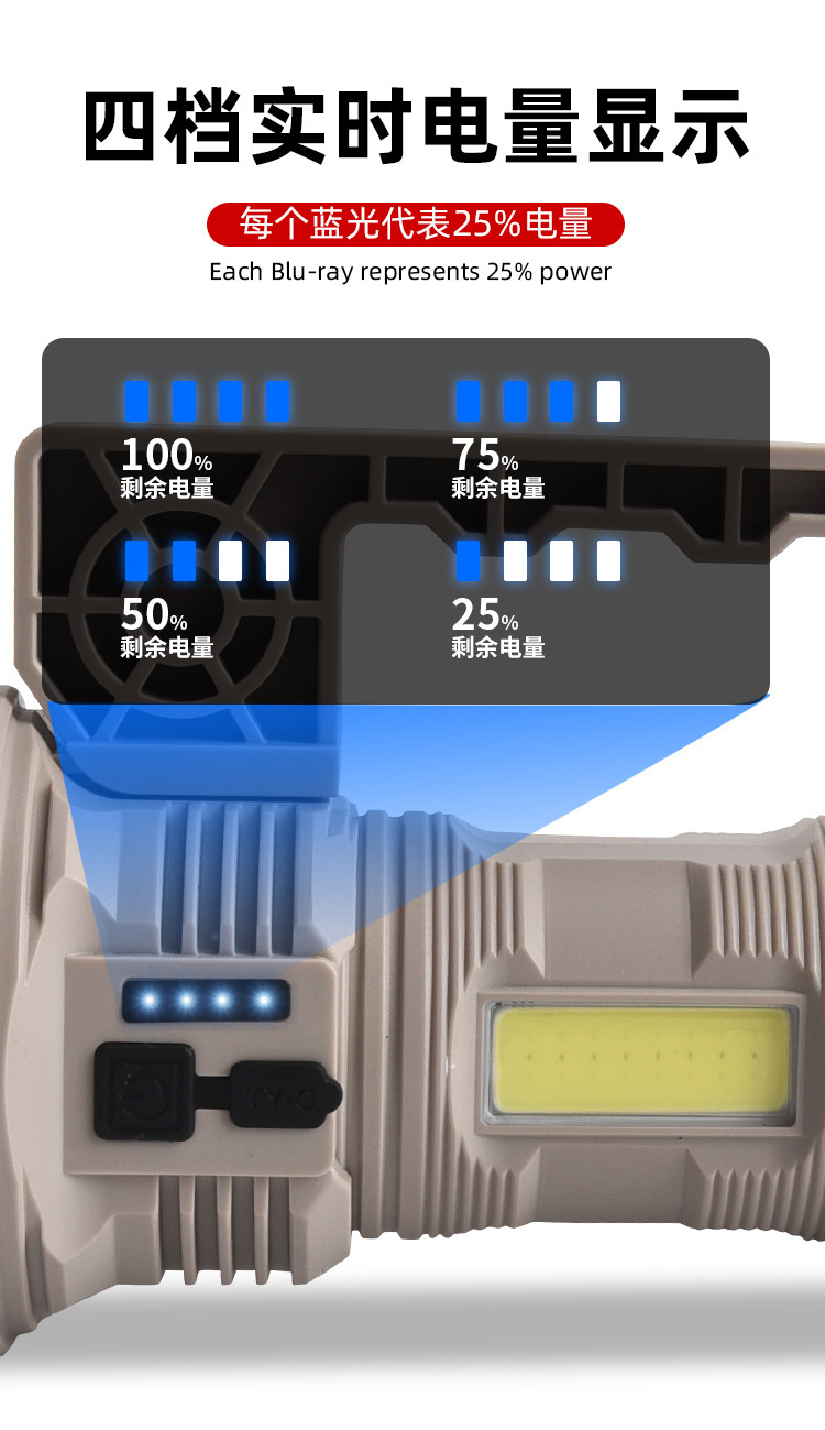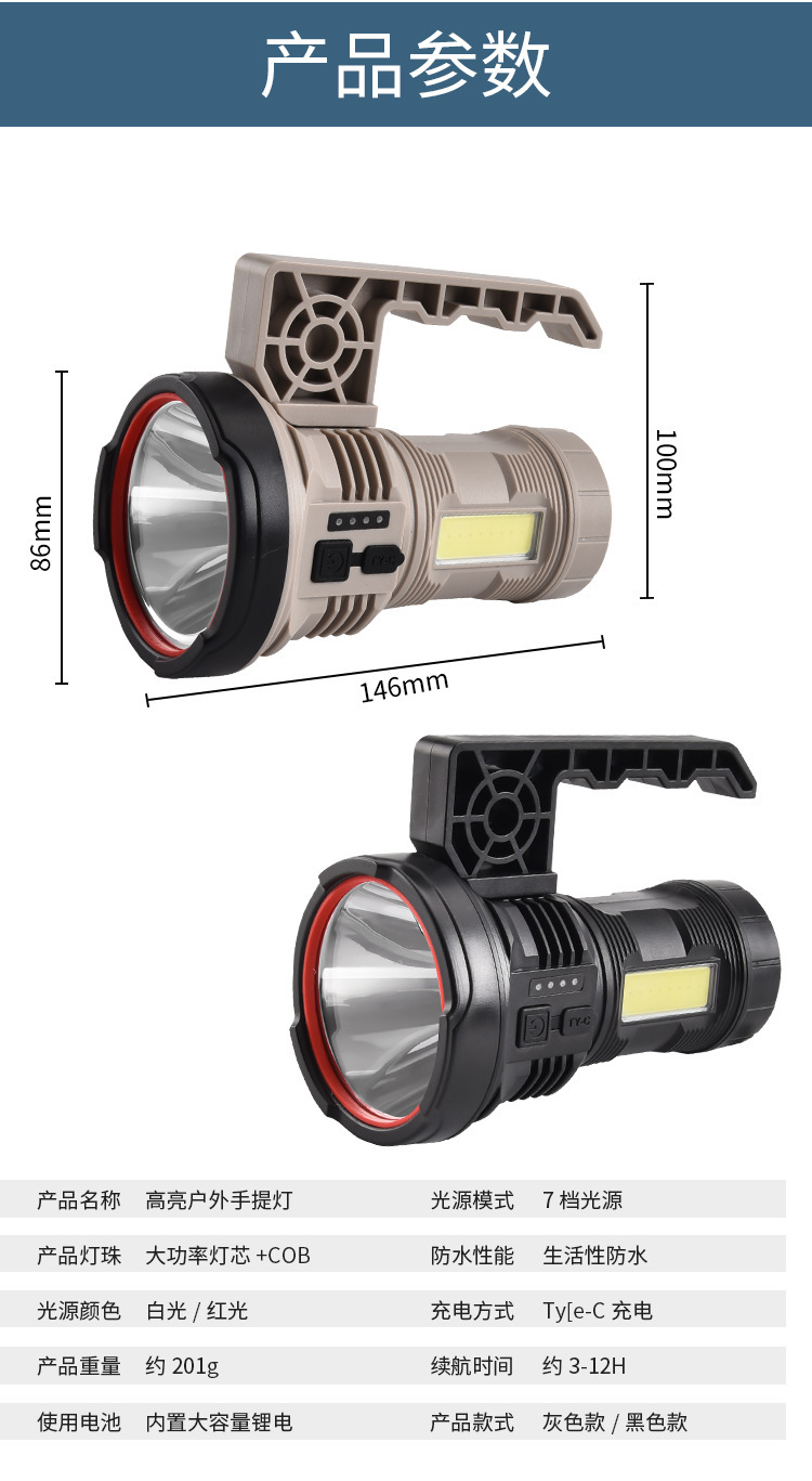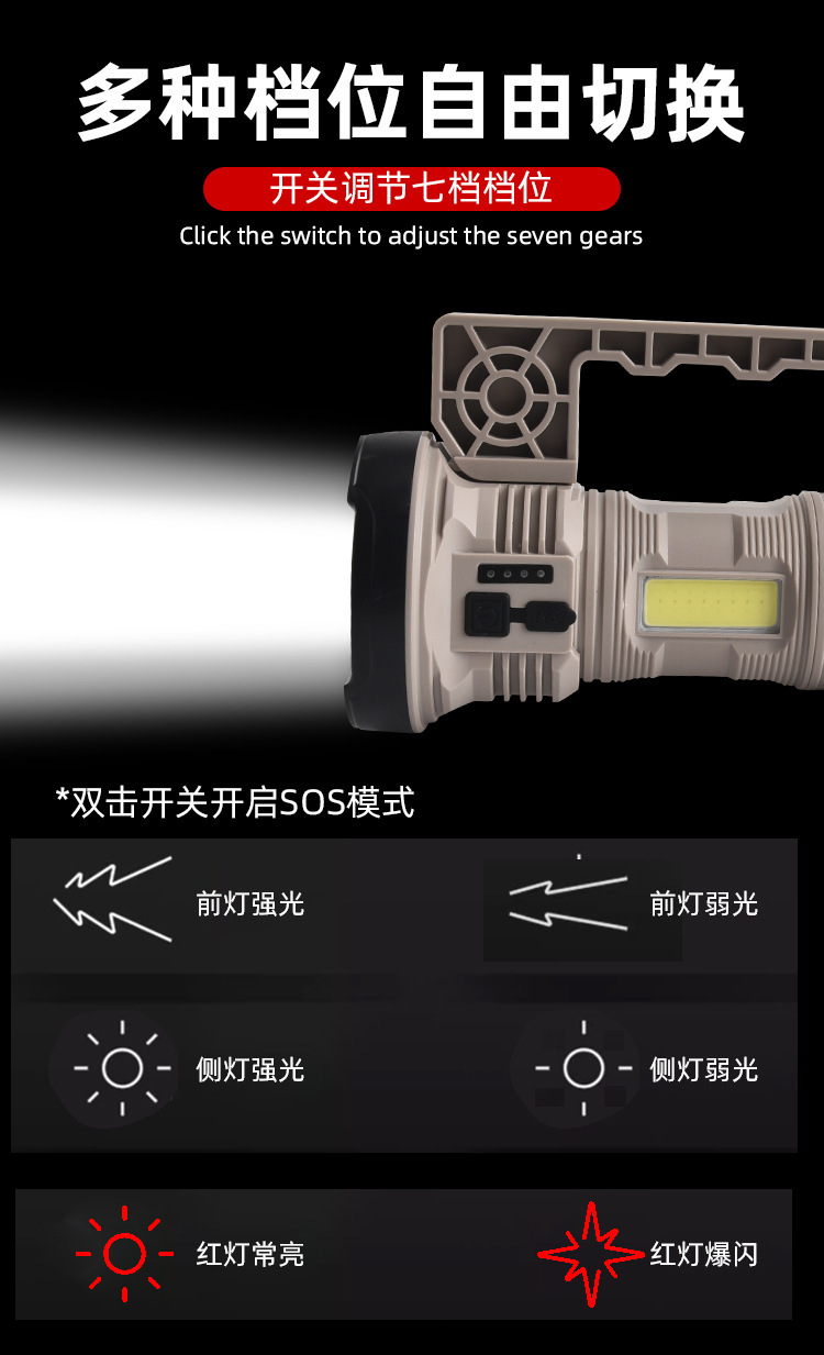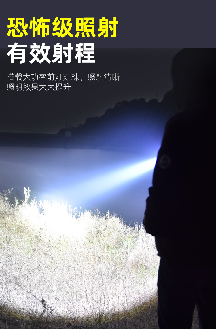국경 간 손전등 강한 빛 원격 촬영 왕 내장 야외 슈퍼 밝은 충전식 라이트 순찰 화재 비상 휴대용 서치 라이트