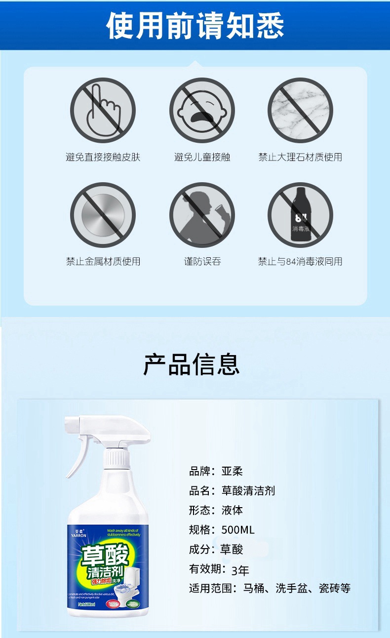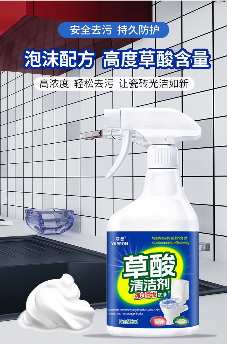 폼형 옥살산 세라믹 타일 세척제, 오염제거 및 황변제거, 고농축 화장실 변기 석회질 제거 세라믹 세척제, 가정용 세척액