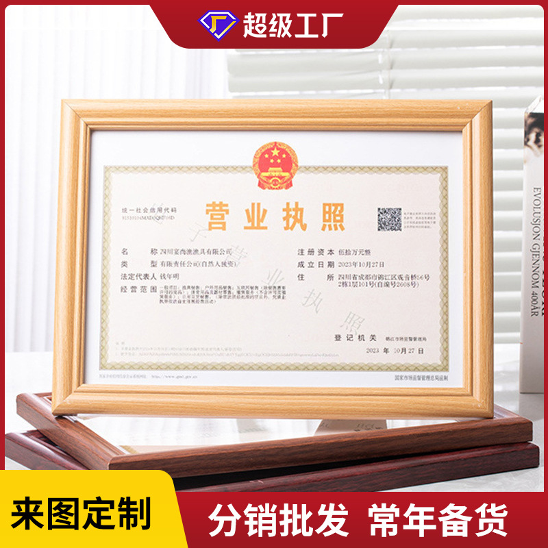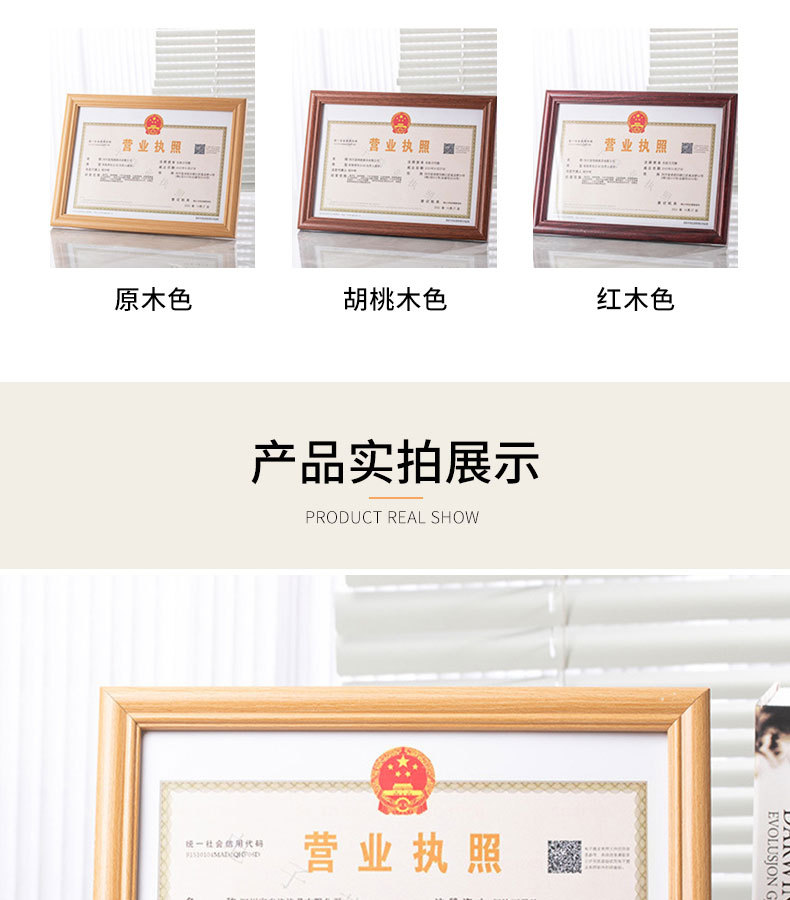 도매 사업 라이센스 사진 프레임 원본 사본 나무 a4 인증서 프레임 사진 프레임 위생 라이센스 프레임 벽걸이스토어 가기